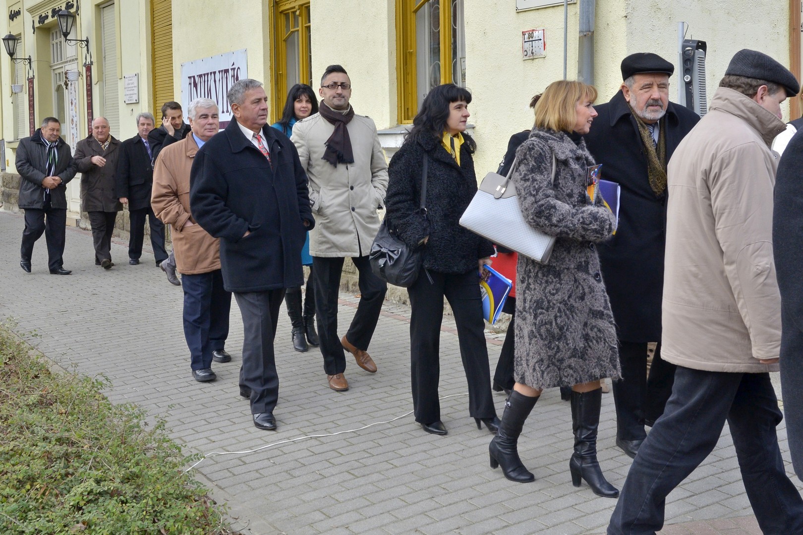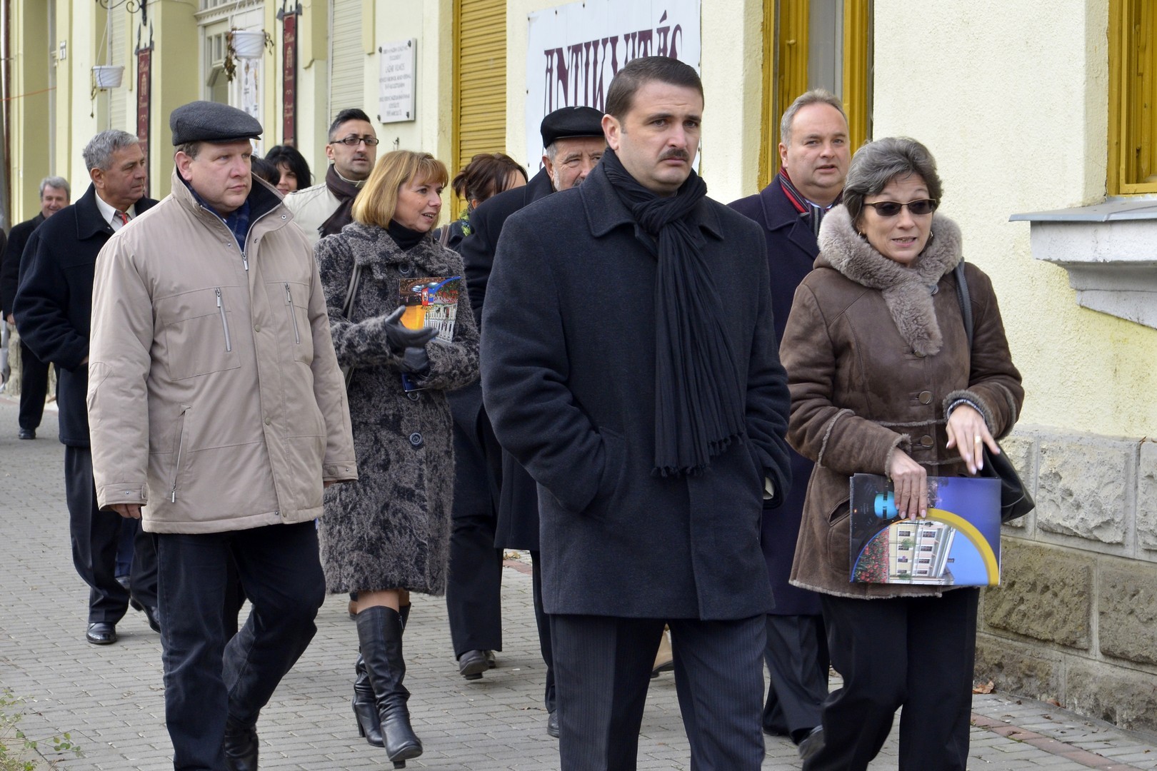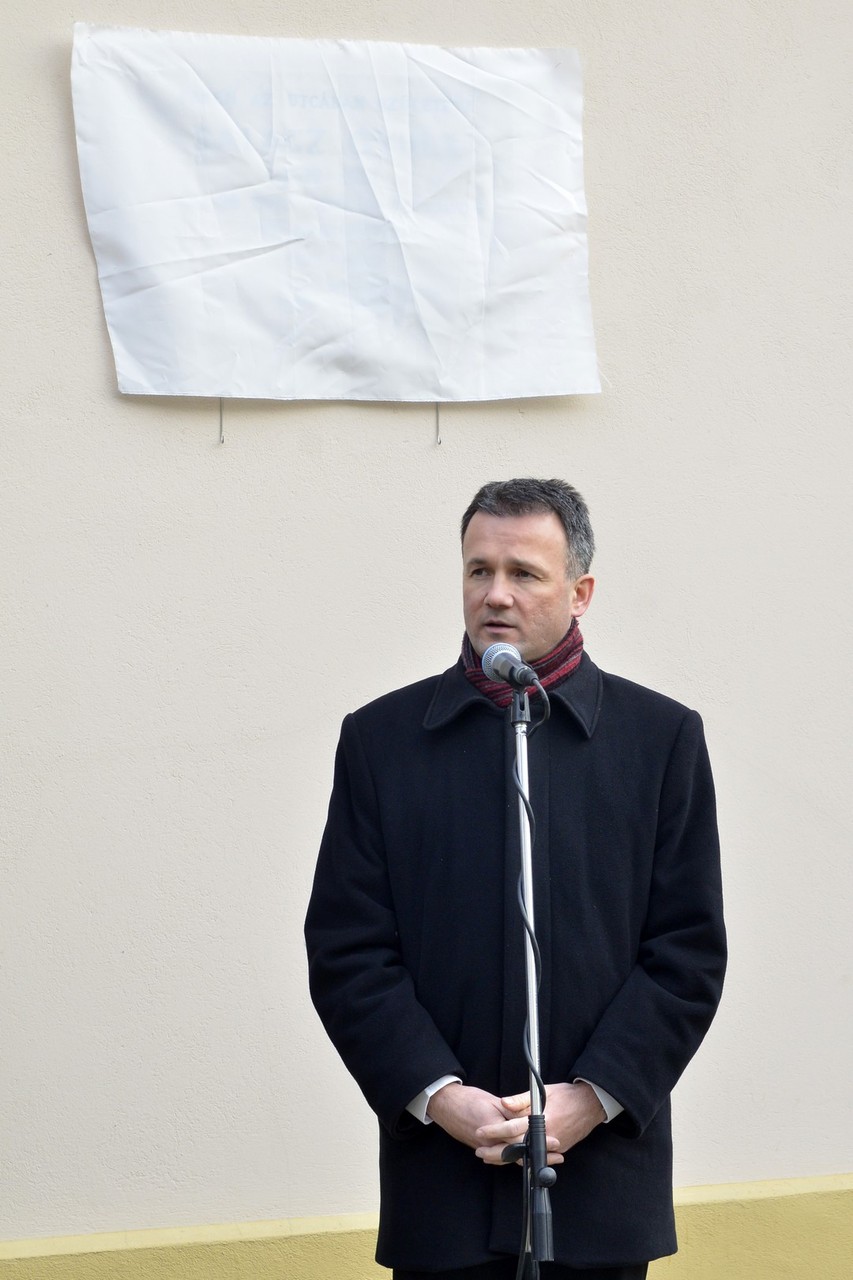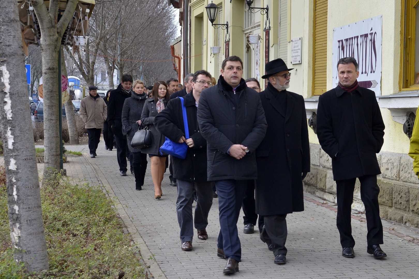 A vendégek a Gyulai Várfürdő AquaPalotájának megtekintése előtt felavatták Salacz Gyula emléktábláját a Horváth Ferenc utca sarkán.