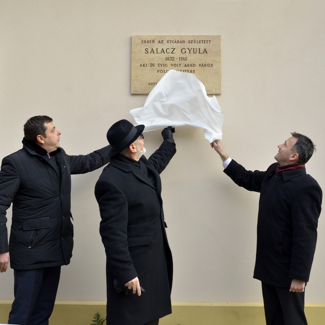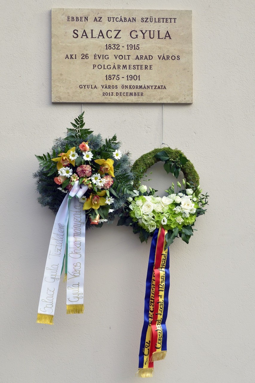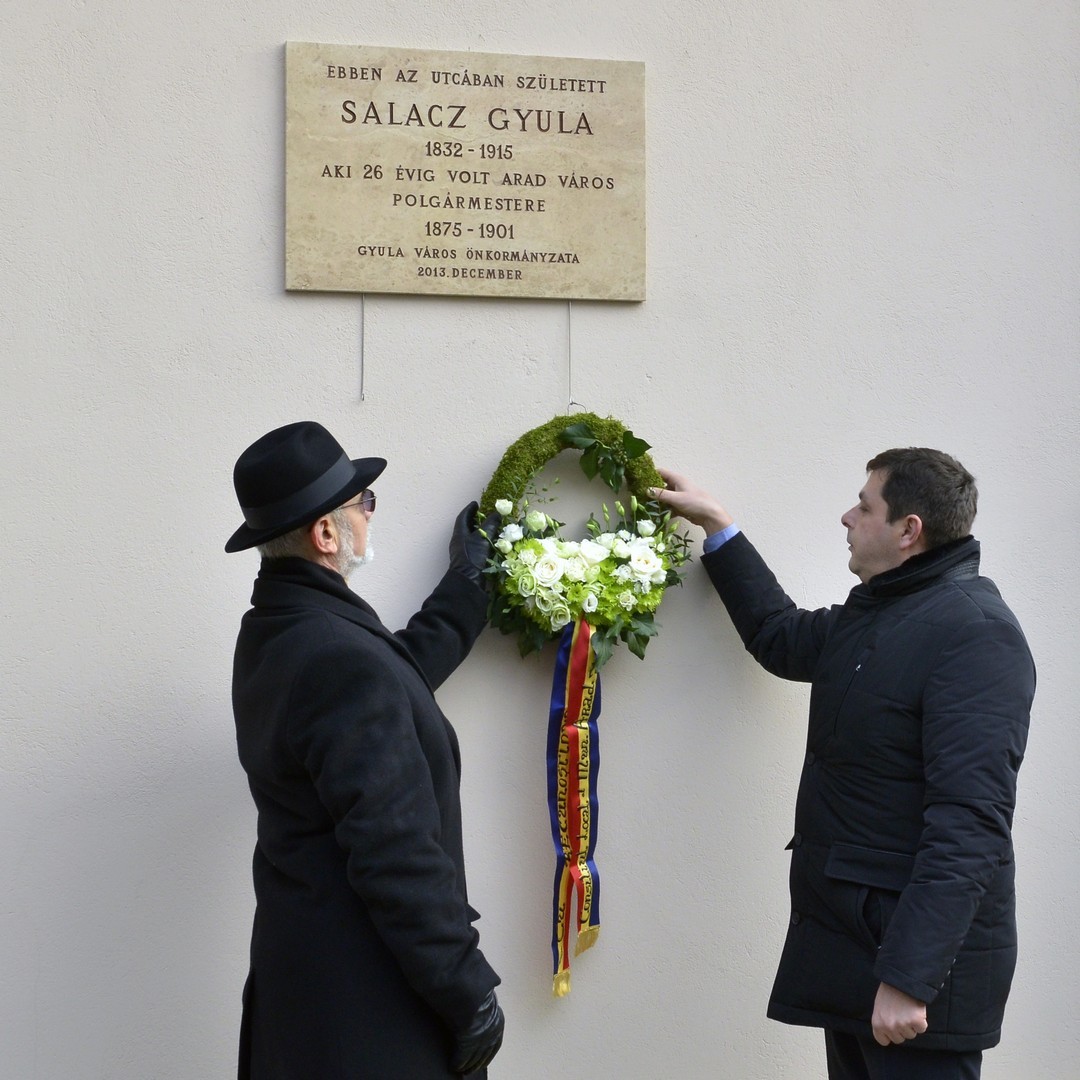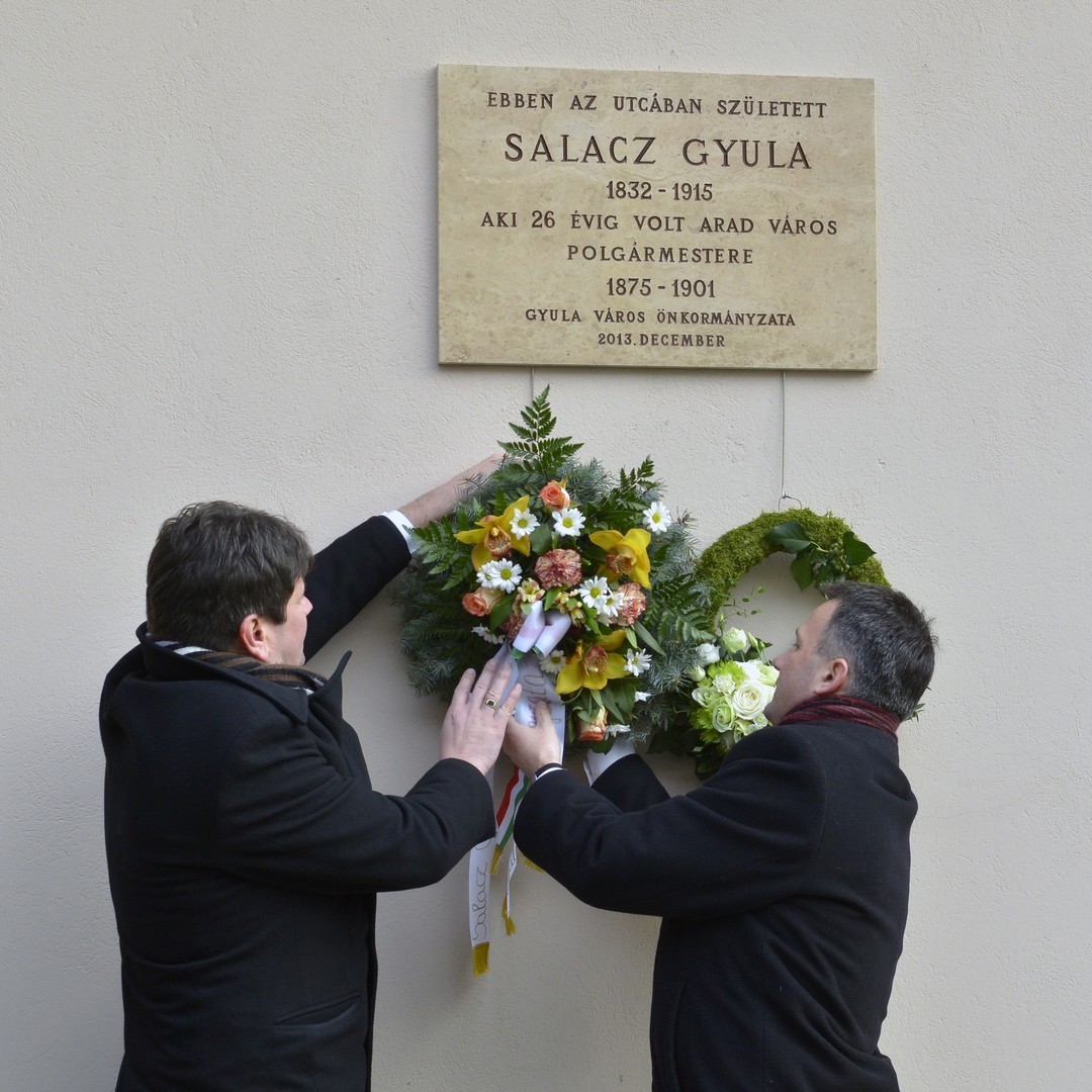 Dr. Görgényi Ernő hallgatóságát arra a szép gyulai hagyományra emlékeztette, hogy nagyjaink emlékének megőrzése mindig fontos volt a helyi polgárok és a vezetőség számára. Salacz Gyula olyan személy volt, akinek negyed évszázados, közösségért végzett munkájára feltekinthetünk és büszkék lehetünk. Bognár Levente megköszönte Gyula városának, hogy ugyanolyan fontosnak tartják a néhai városvezető emlékének megőrzését, mint az aradiak.