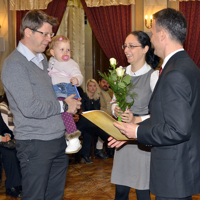 Hatvan honosítási okiratot adott át új honfitársainknak dr. Görgényi Ernő polgármester, a ma délelőtti honosítási ünnepségen.