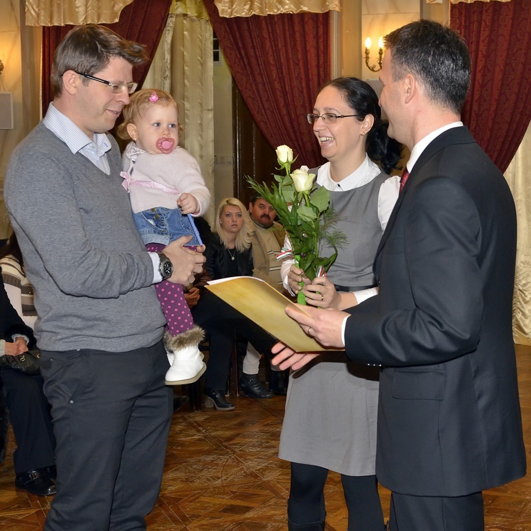 - Szívbő gratulálok az állampolgárság megszerzéséhez. Valódi ünnep ez a mai és mi, itt Gyulán minden egyes alkalomra ünnepként tekintünk. Ünnep, mert nekünk azért meg kellett küzdenünk, ami egyébként jár. A második világháború után mindent megtettek, hogy a kötelékeink elszakadjanak és ha a szülők nem meséltek róla, akkor nemzedékek nőttek fel úgy, hogy nem tudták, hogy határainkon kívül is élnek magyarok. A rendszerváltozás hozta el azt a folyamatot, melynek eredményeként itt lehetünk. Antall József, az első szabadon megválasztott miniszterelnök volt az, aki elsőként ki merte mondani, hogy ő lélekben és érzésben 15 millió magyar miniszterelnöke kíván lenni – emlékeztette új honfitársainkat a polgármester.