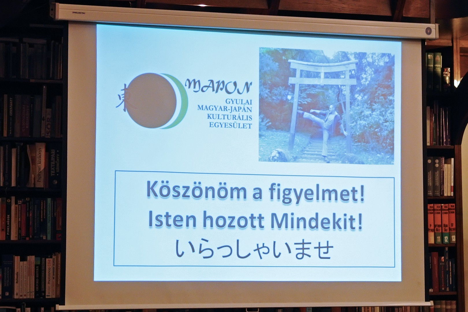 Megalakulásának helyszínén, a Mogyoróssy János Városi Könyvtár Simonyi-olvasótermében mutatkozott be az érdeklődőknek a MAPON, azaz a Gyulai Magyar–Japán Kulturális Egyesület. Az alapítótagok részvételével megtartott rendezvényen dr. Vihar Judit, a Magyar–Japán Baráti Társaság elnöke is tiszteletét tette. Az ELTE-n és a Károli Gáspár Református Egyetemen japán irodalmat oktató szakember a japán gasztronómiával ismertette meg a hallgatóságot.