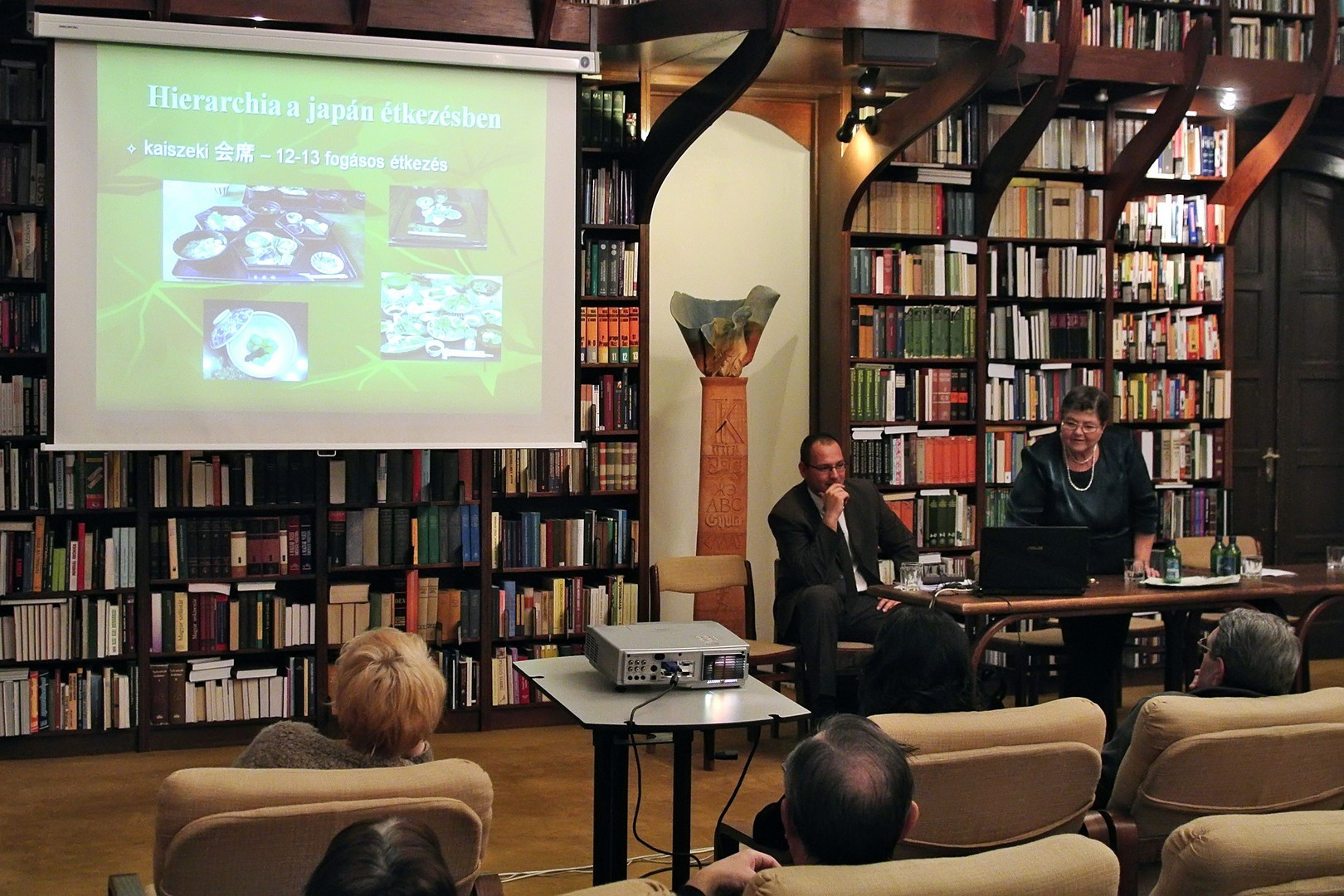 Az elnök zárásként a hierarchiára épülő japán gasztronómiából nyújtott ízelítőt. Mint kiderült, a legalacsonyabb rangú japán éttermeket a piros lampionokról ismerhetjük meg, a legelőkelőbbeket pedig arról, hogy kicsik. A rövid, ám annál érdekesebb előadásból nemcsak azt tudhattuk meg, hogy hogyan kell elkészíteni a szusit, hanem azt is, hogy mit mondanak Japánban, ha koccintanak, és hogy mit jelent az, ha egy japán szürcsöl.