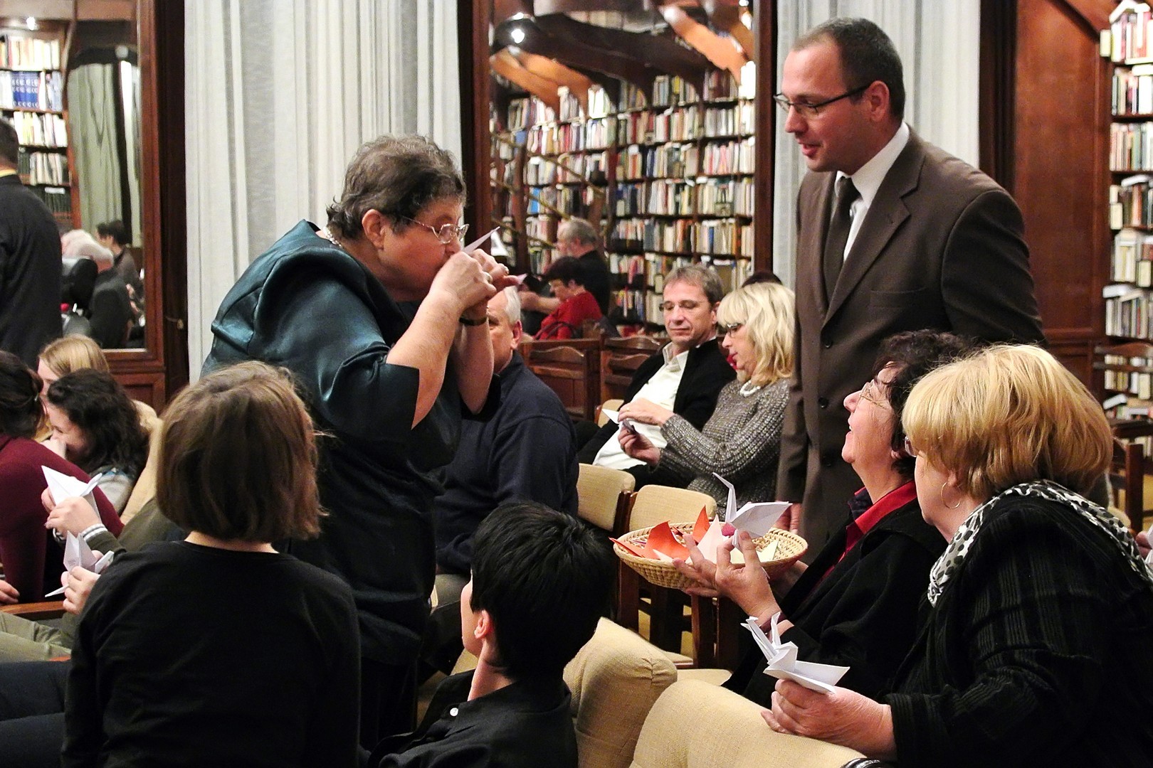 A hosszúra nyúlt rendezvényt egyebek mellett a szintén alapítótag Korponai Elza Csilla csellójátéka színesítette. A jelenleg is tagokat toborzó egyesület meglepetéssel is készült: az est végén a hallgatóság minden egyes tagját papírdaruval ajándékozta meg.