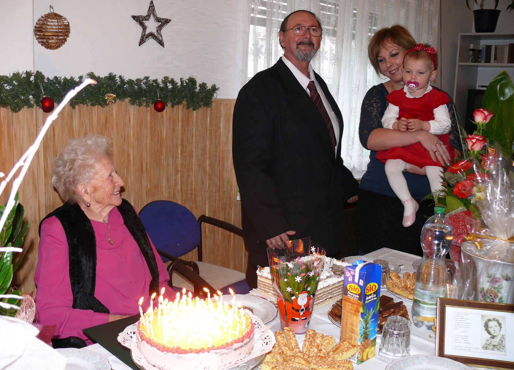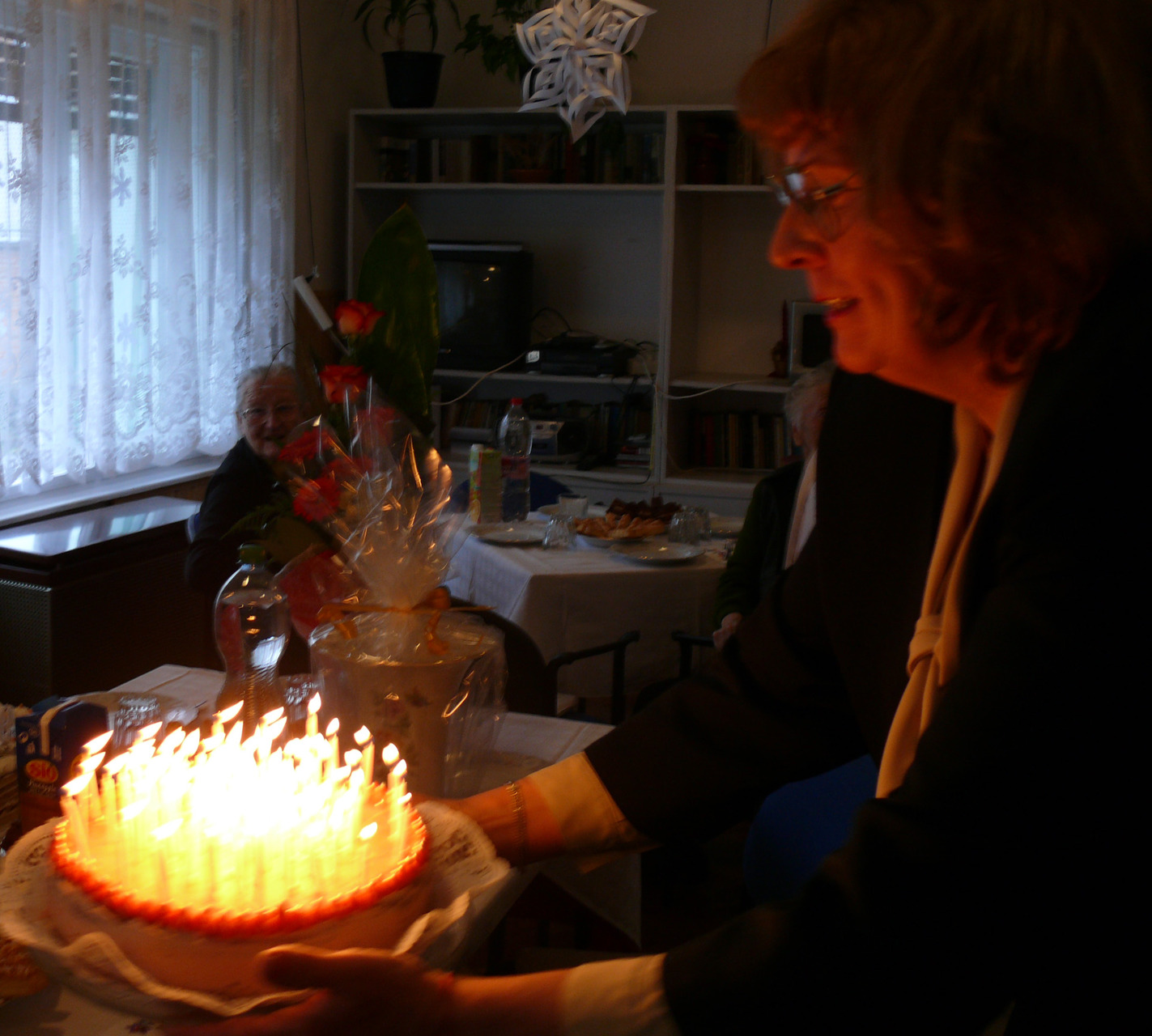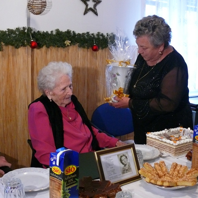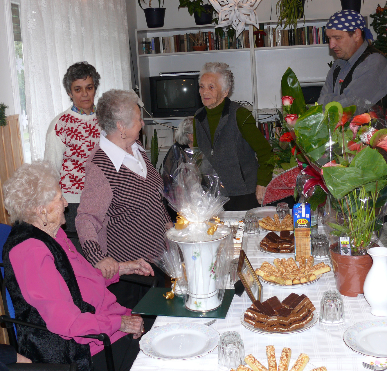 Családja és a Kálvin utcai Idősek Klubja látogatói körében ünnepelte 90. születésnapját Szabó Andrásné Erzsike néni, akit a történelem viharai ugyanúgy nem kímélték, mint kortársait, de kedélyén és kedves arcán, nyílt, őszinte tekintetén nem hagyott nyomot a sok tragédia.