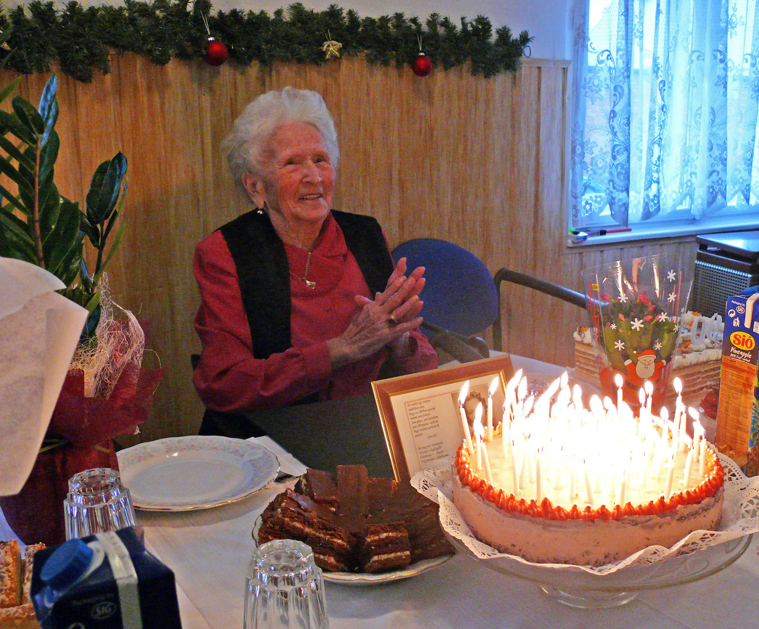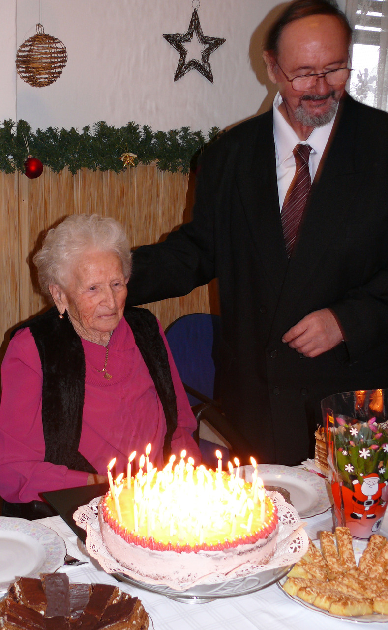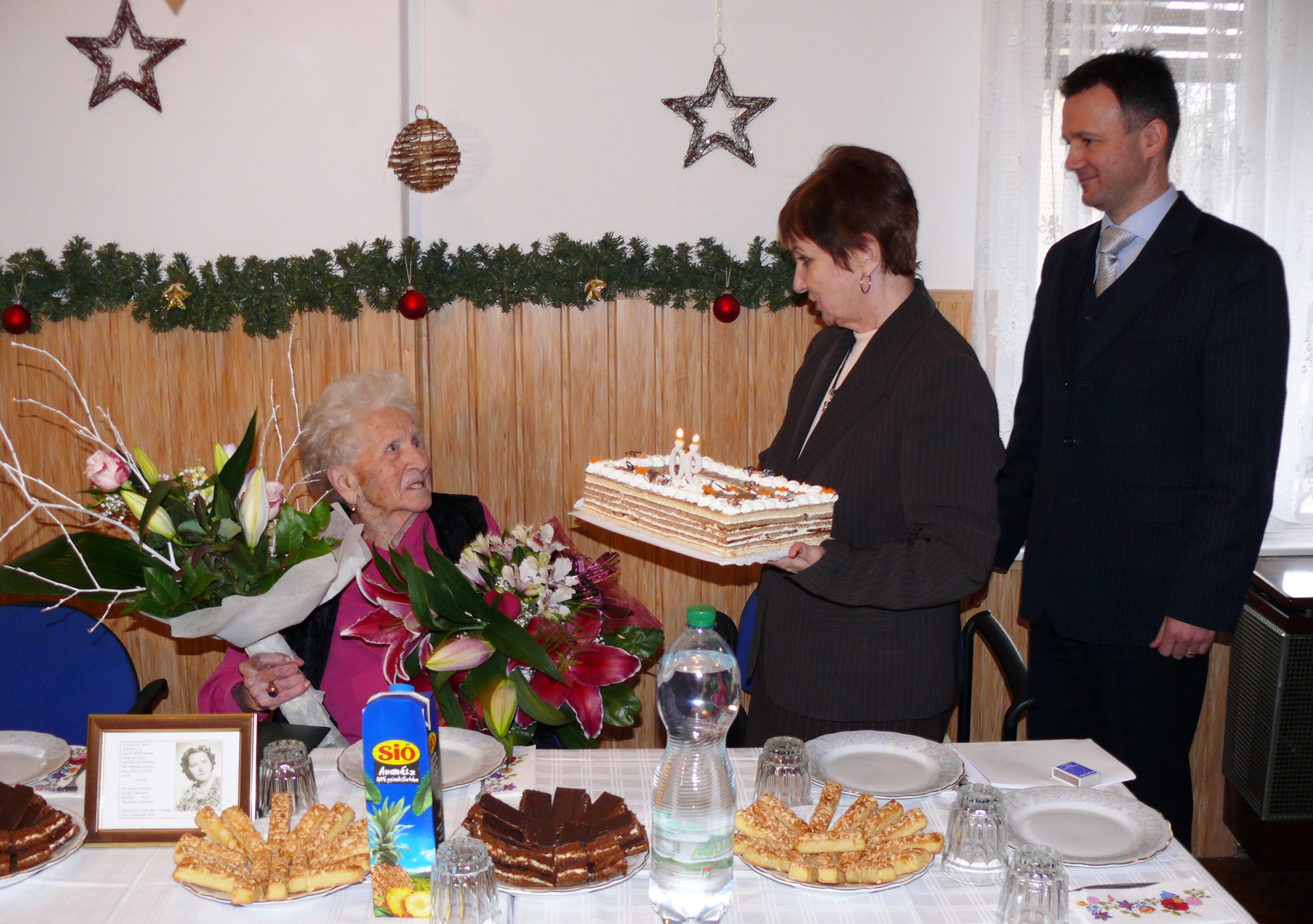 Családja és a Kálvin utcai Idősek Klubja látogatói körében ünnepelte 90. születésnapját Szabó Andrásné Erzsike néni, akit a történelem viharai ugyanúgy nem kímélték, mint kortársait, de kedélyén és kedves arcán, nyílt, őszinte tekintetén nem hagyott nyomot a sok tragédia.