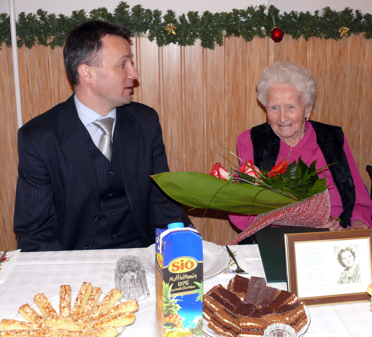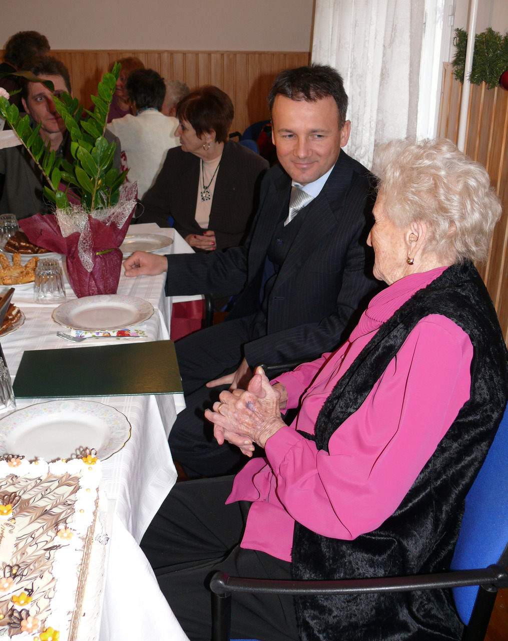 Az ünnepeltet Becsyné dr. Szabó Márta címzetes főjegyző és dr. Görgényi Ernő polgármester virággal és egy tetszetős Eszterházy-tortával köszöntötte, valamint a miniszterelnök által aláírt oklevél átadásával is kifejezték nagyrabecsülésüket.