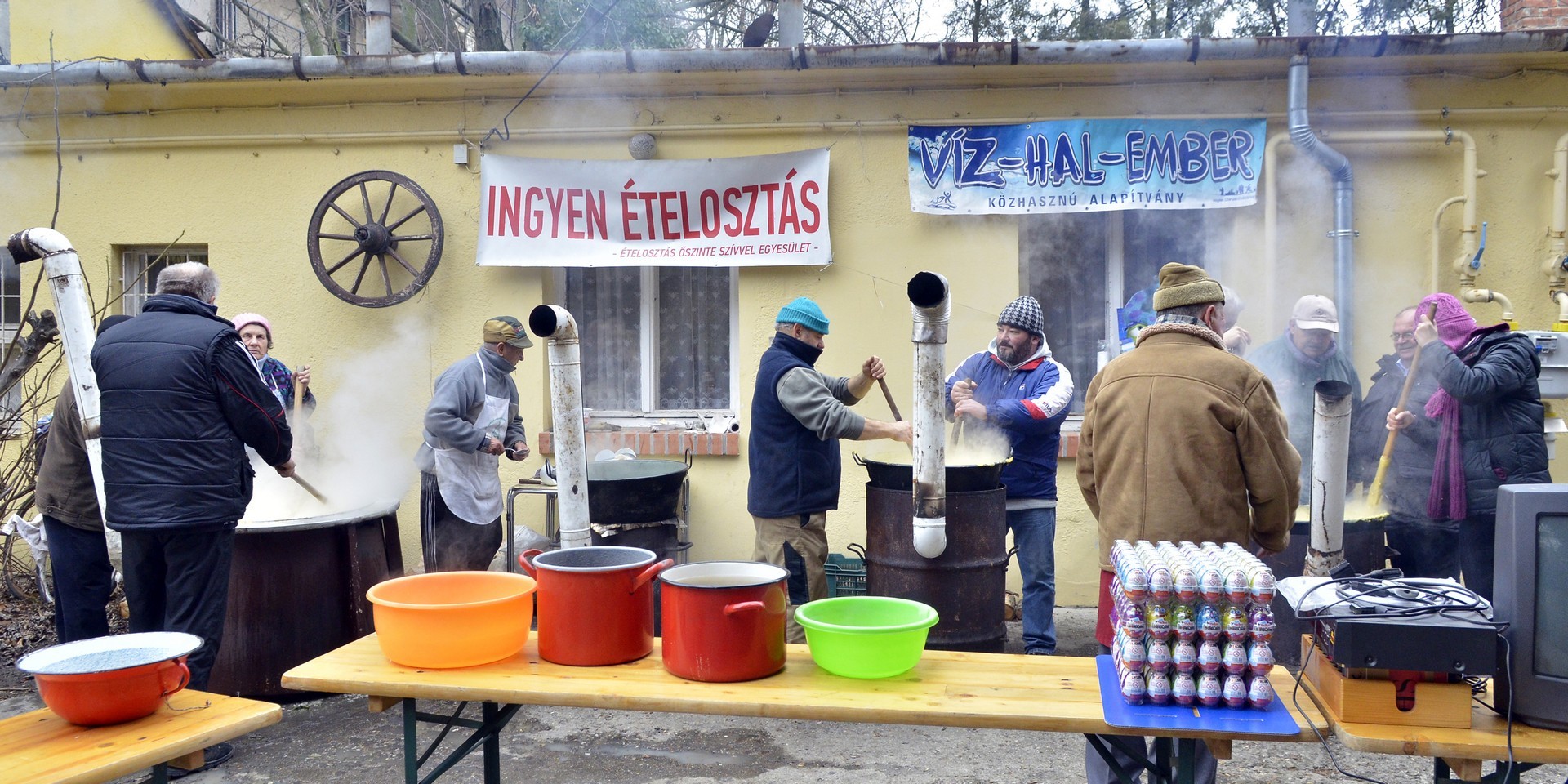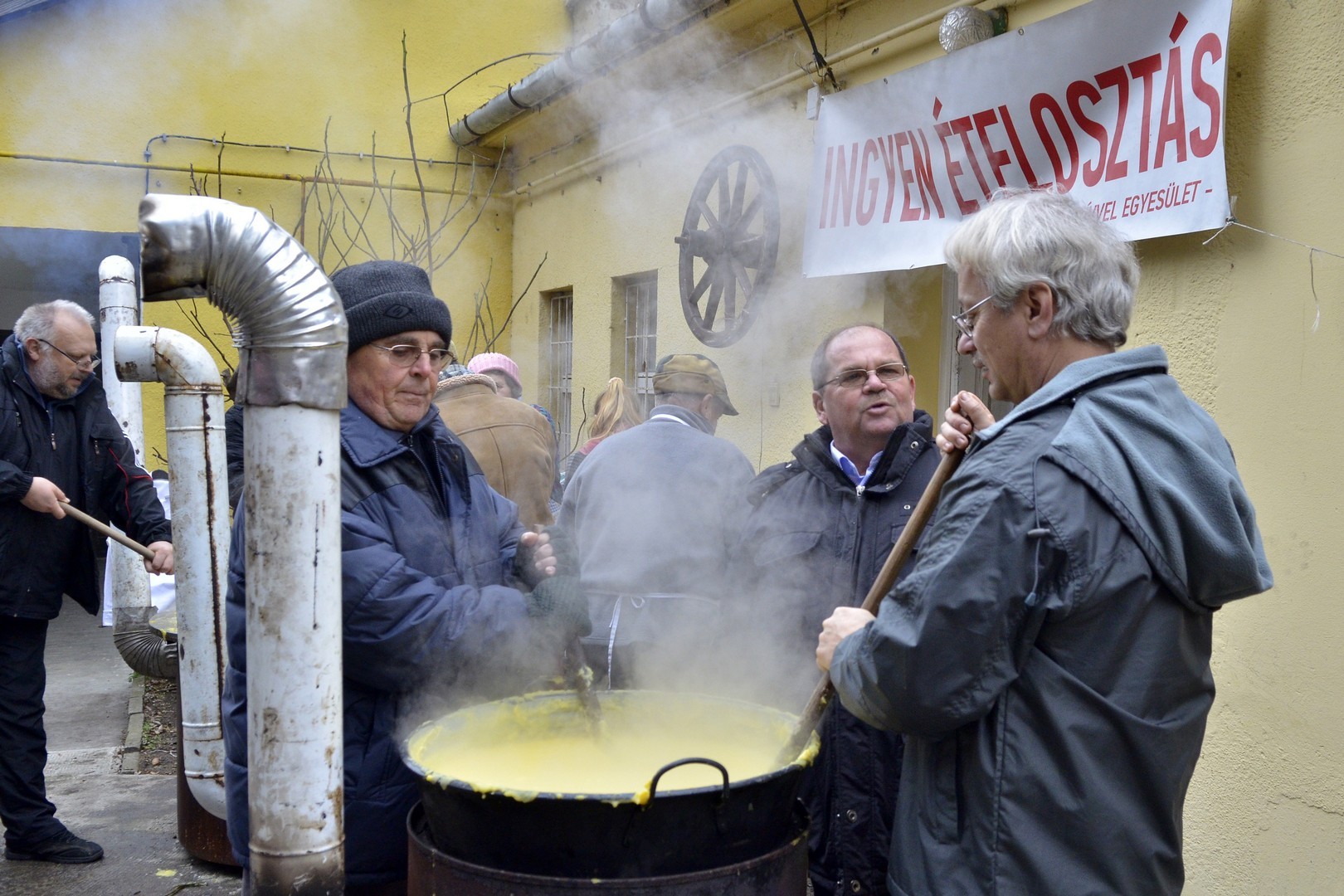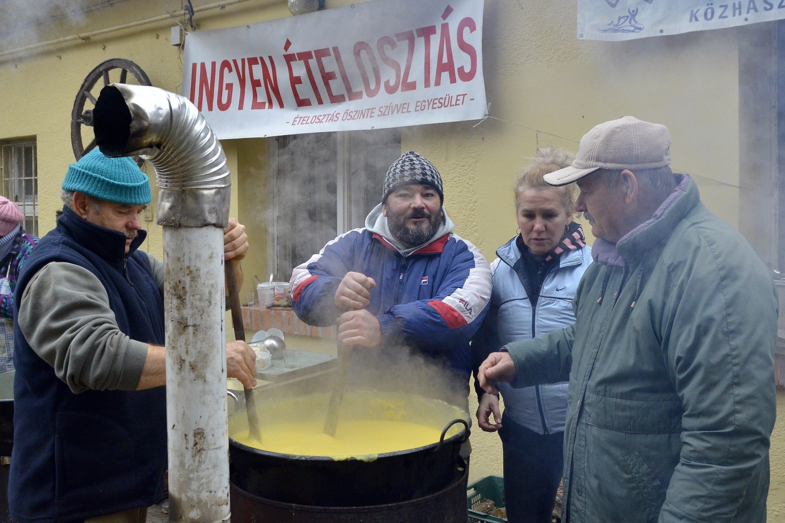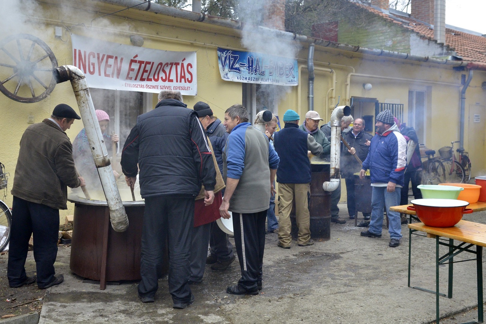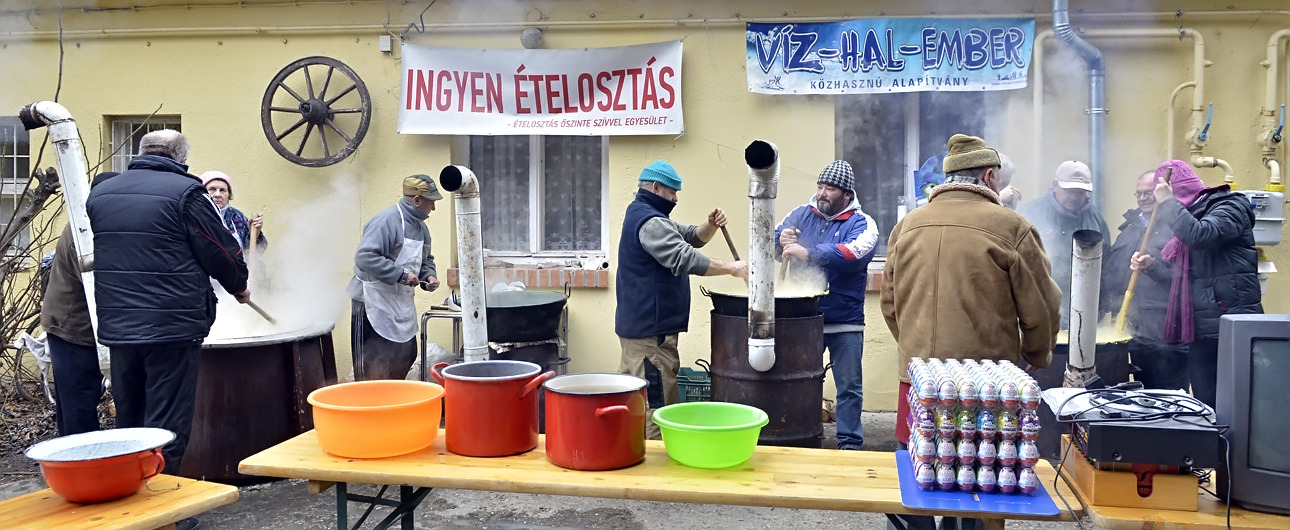 - Százötven kilogramm halat dolgoztunk fel és fél egyre 750 adagnyi halászlevet készítettünk el. Emellett magyaros, kolbásszal és lecsókolbásszal dúsított puliszkát főztünk. Egyre többen látogatnak el az ételosztásainkra. Mára az egykori középosztály is mindennapos megélhetési gondokkal küzd, egyre több a szegény ember, s csak egy szűk réteg gazdag. Ma halat készítettünk az embereknek, többek között ponty, kárász, keszeg, busa került a lébe. Többen említették, hogy gyermekkorukat idézi a felkínált puliszka – elevenítette fel a nap eseményeit a Gyulai Hírlapnak Balogh Lajos.