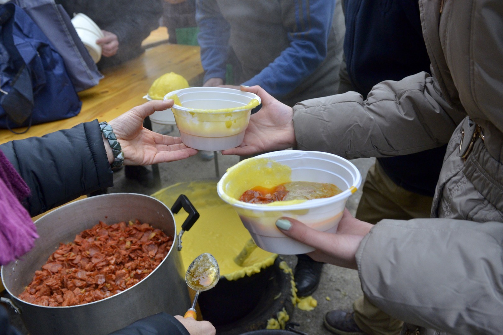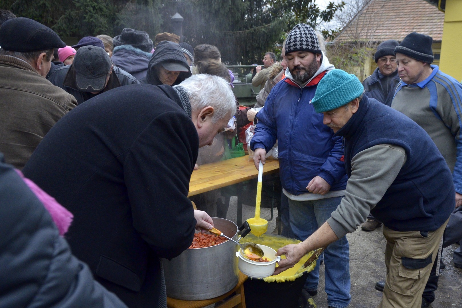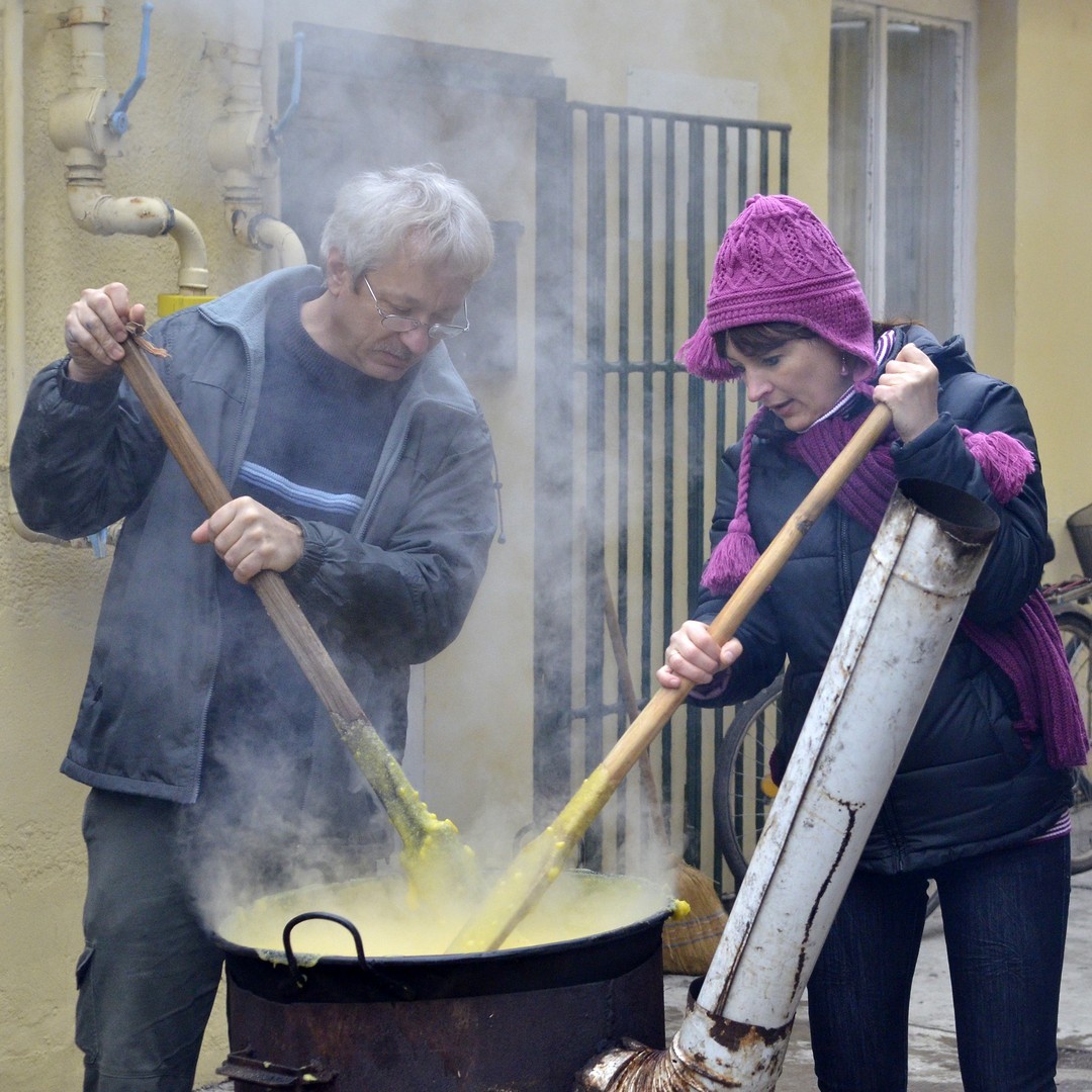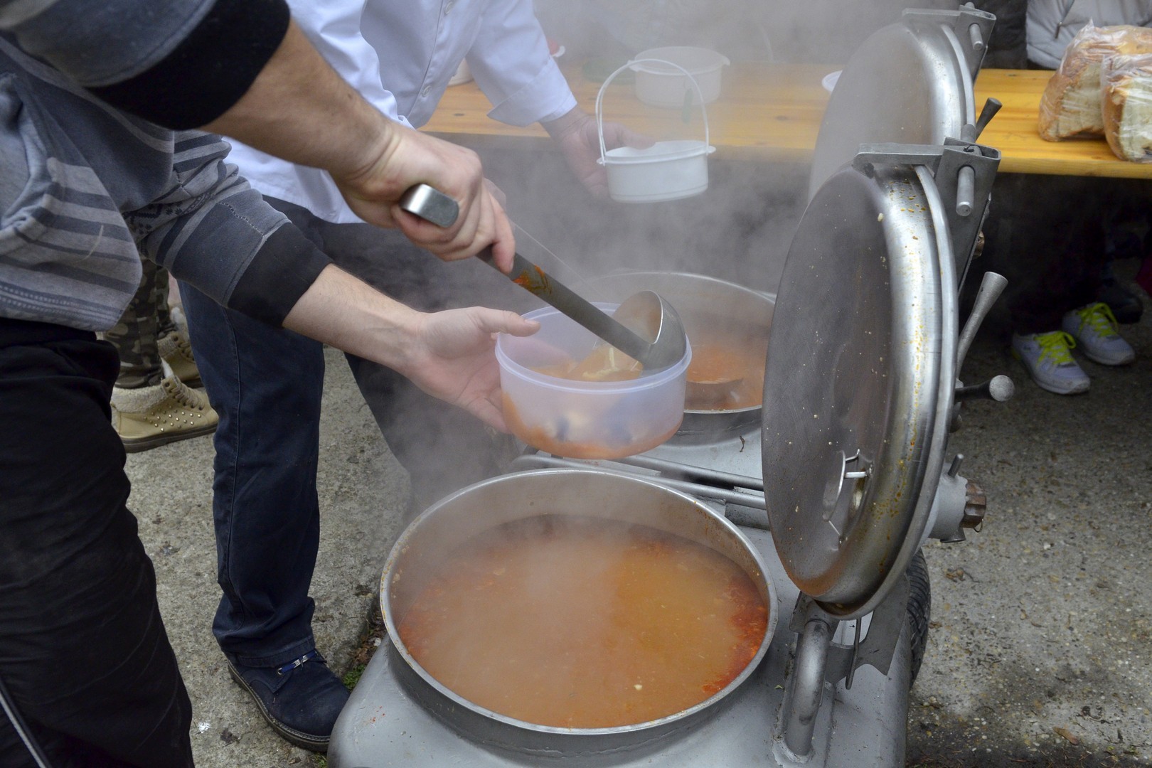- Százötven kilogramm halat dolgoztunk fel és fél egyre 750 adagnyi halászlevet készítettünk el. Emellett magyaros, kolbásszal és lecsókolbásszal dúsított puliszkát főztünk. Egyre többen látogatnak el az ételosztásainkra. Mára az egykori középosztály is mindennapos megélhetési gondokkal küzd, egyre több a szegény ember, s csak egy szűk réteg gazdag. Ma halat készítettünk az embereknek, többek között ponty, kárász, keszeg, busa került a lébe. Többen említették, hogy gyermekkorukat idézi a felkínált puliszka – elevenítette fel a nap eseményeit a Gyulai Hírlapnak Balogh Lajos.