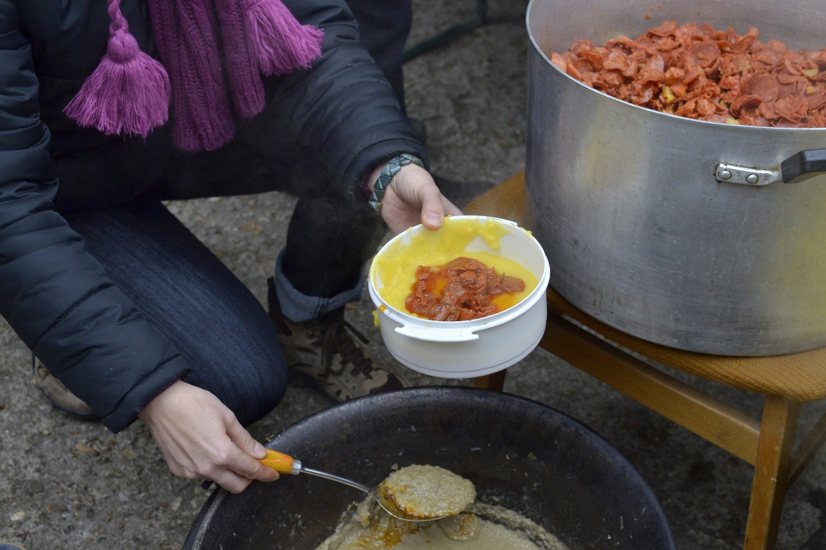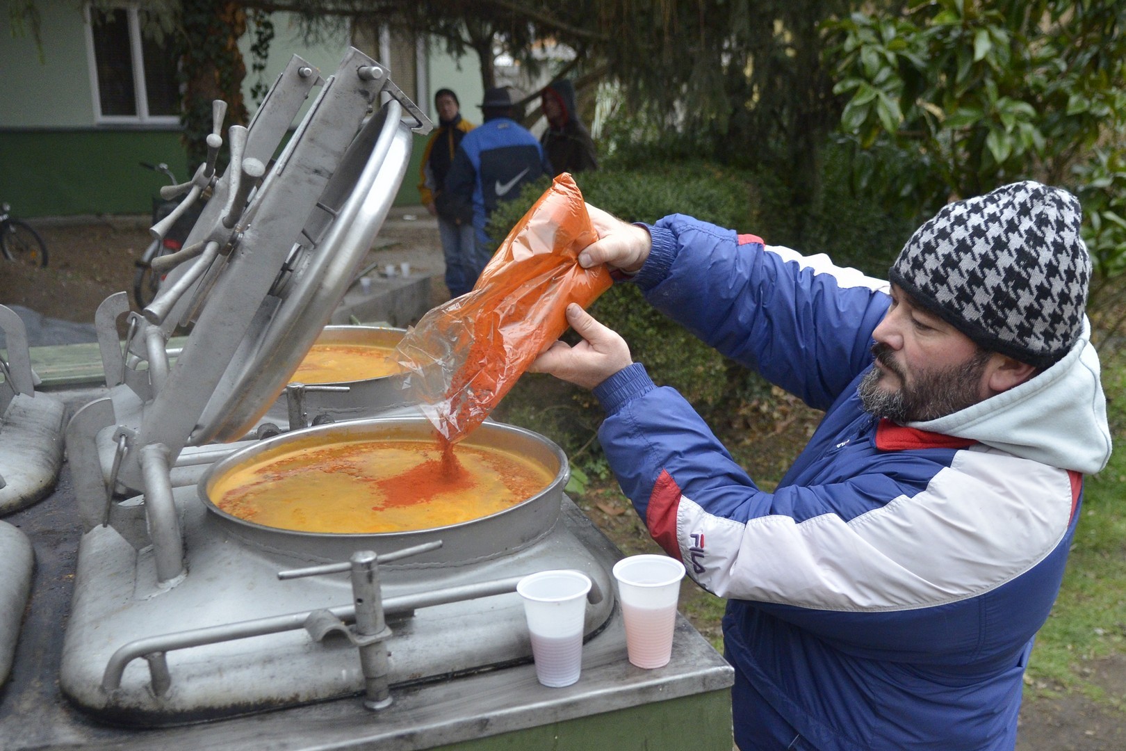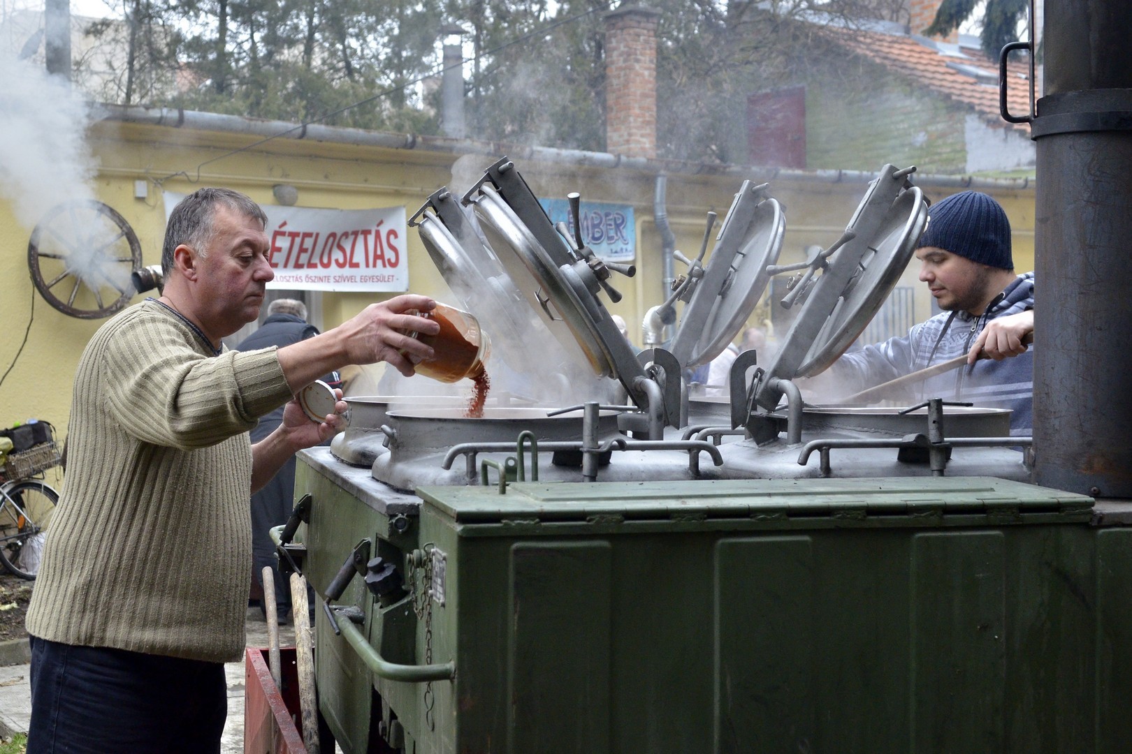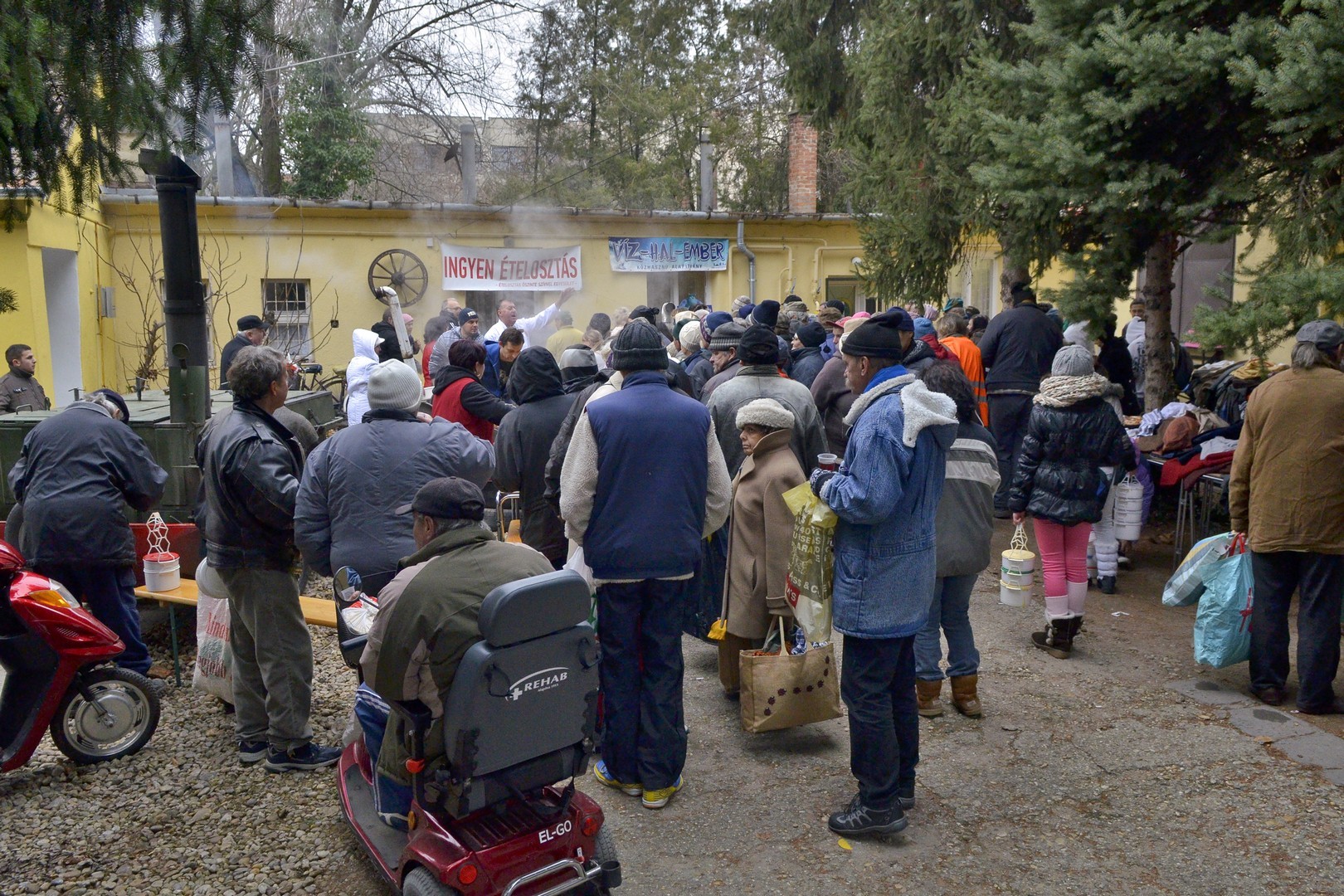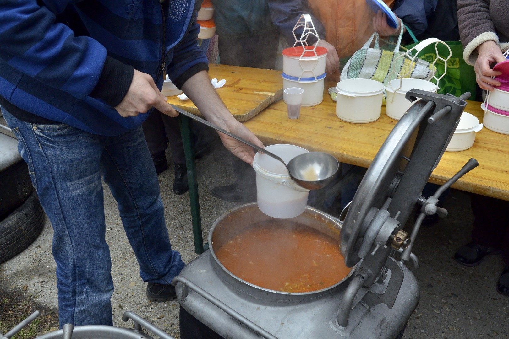 - Százötven kilogramm halat dolgoztunk fel és fél egyre 750 adagnyi halászlevet készítettünk el. Emellett magyaros, kolbásszal és lecsókolbásszal dúsított puliszkát főztünk. Egyre többen látogatnak el az ételosztásainkra. Mára az egykori középosztály is mindennapos megélhetési gondokkal küzd, egyre több a szegény ember, s csak egy szűk réteg gazdag. Ma halat készítettünk az embereknek, többek között ponty, kárász, keszeg, busa került a lébe. Többen említették, hogy gyermekkorukat idézi a felkínált puliszka – elevenítette fel a nap eseményeit a Gyulai Hírlapnak Balogh Lajos.