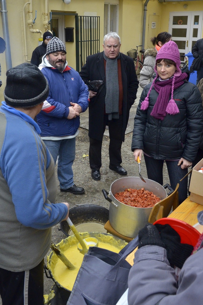 Hétszázötven adag halászlevessel és ugyanennyi magyaros puliszkával lakhattak jól mindazon rászoruló gyulai emberek, akik Balogh Lajos önkormányzati képviselő karitatív ételosztására betértek a gyulai Kisgazda Székház udvarára. Többen inkább ételhordóban vitték haza a karácsonyi eledelt amellett, hogy a helyszínen is biztosított volt minden feltétel az ingyenes ebédhez. A képviselőt harminc önkéntes és számtalan szponzor segítette a munkában.