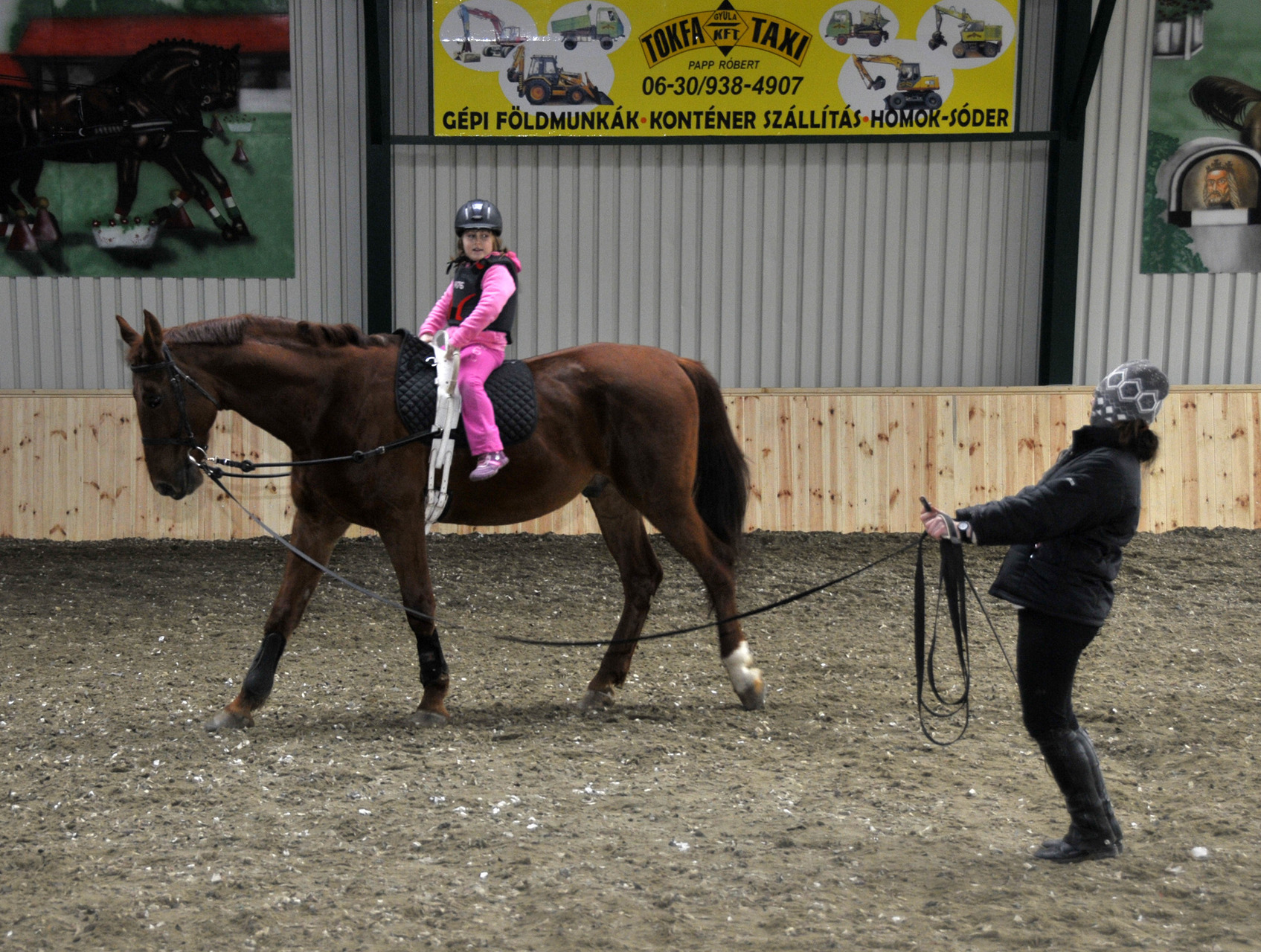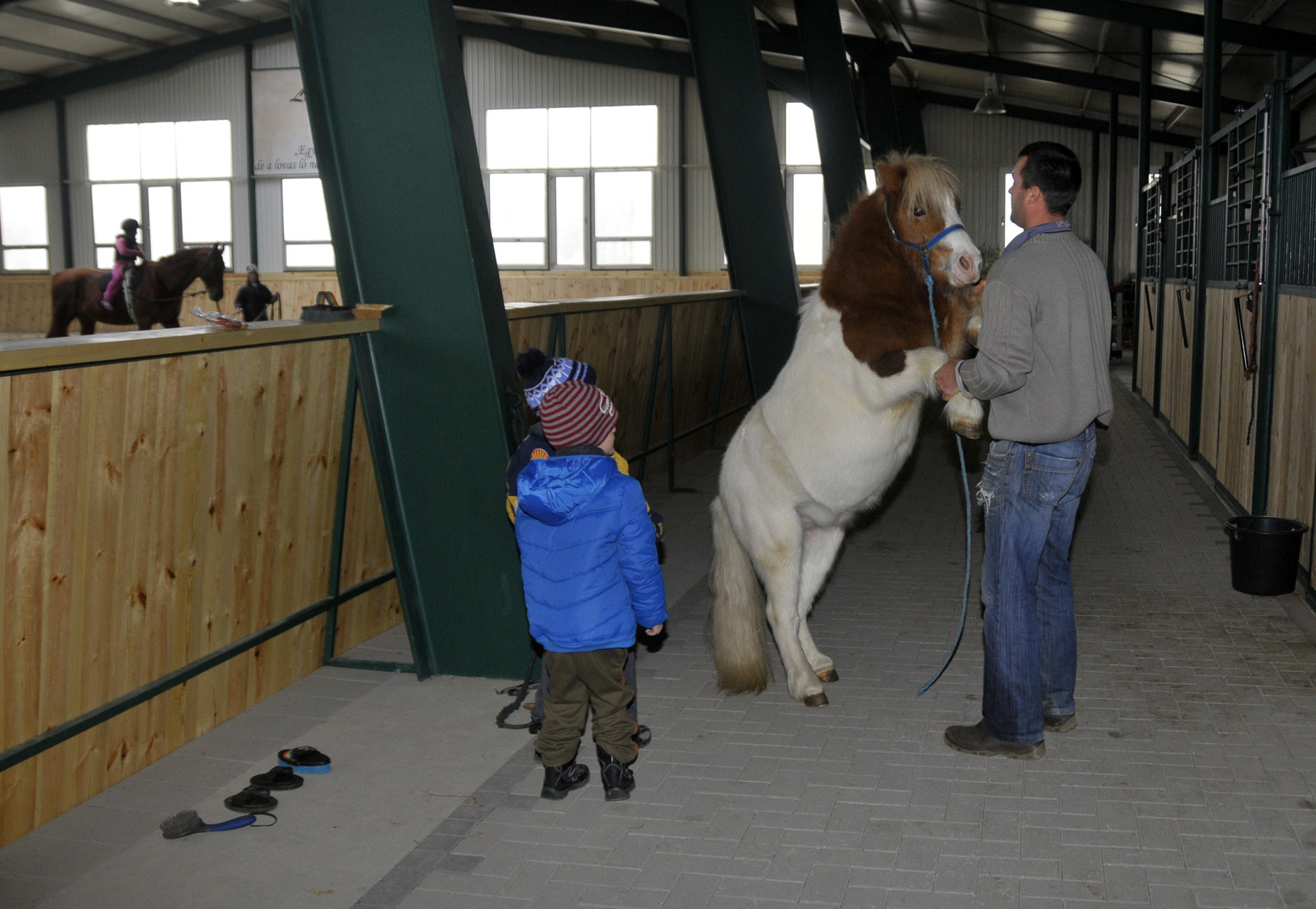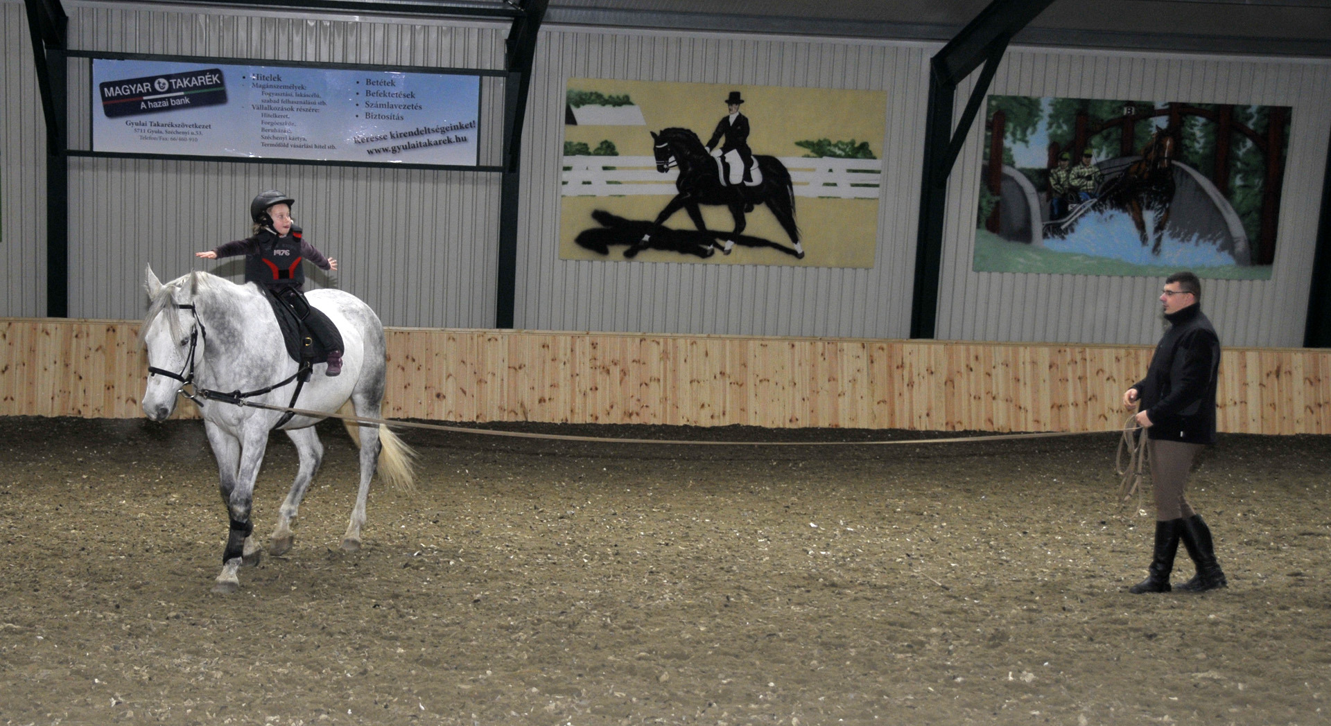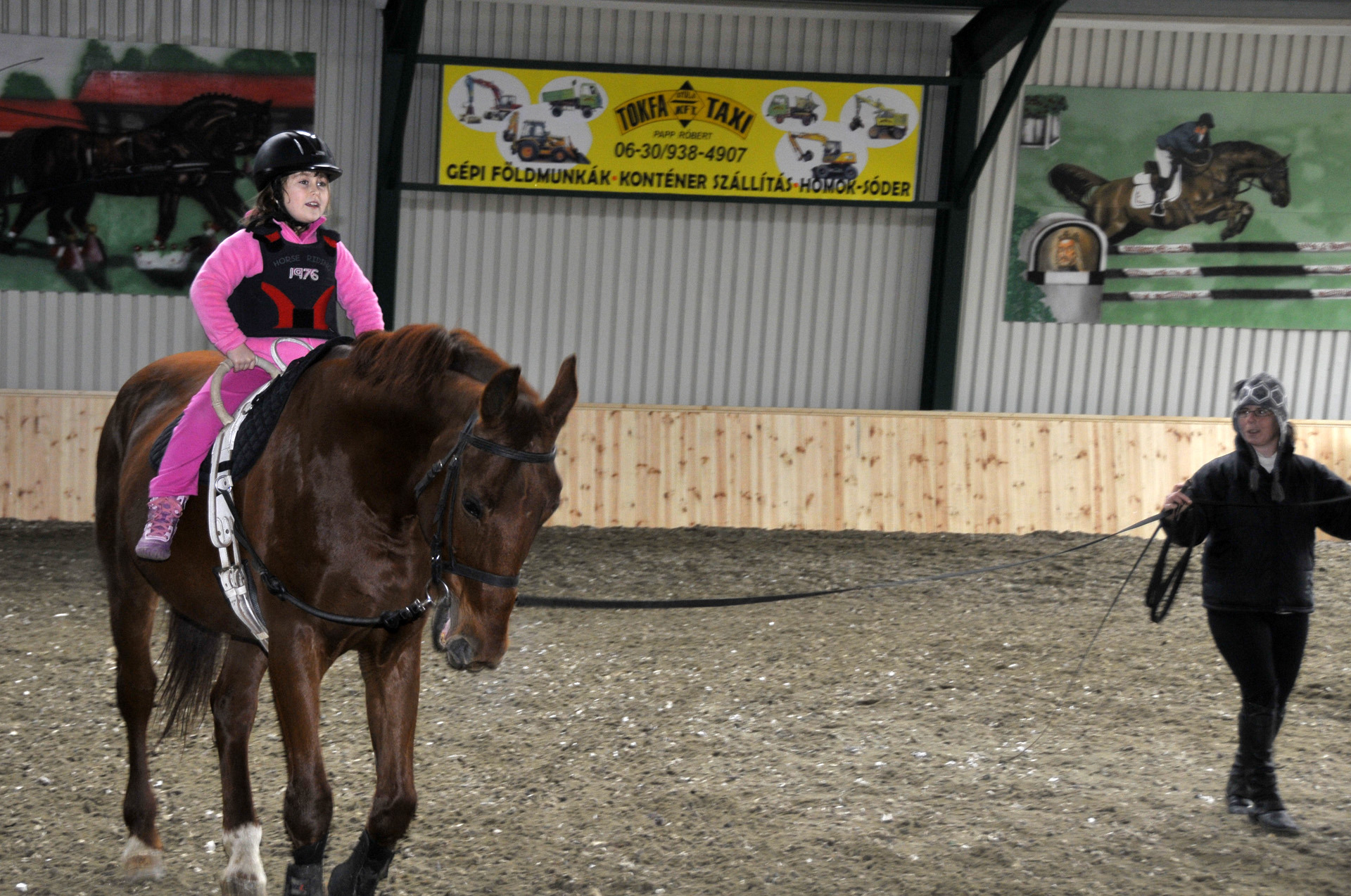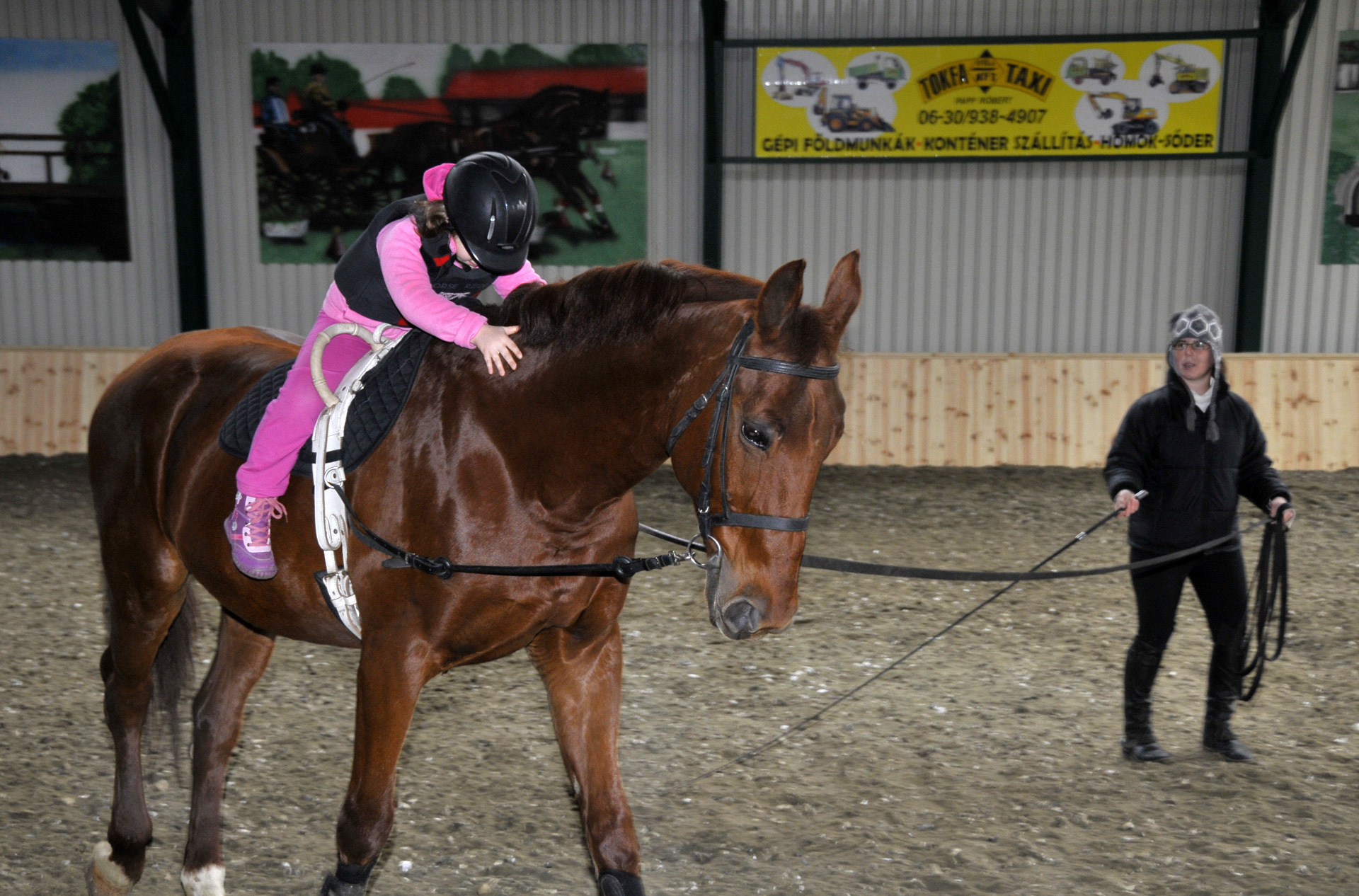– Öt- és nyolcéves kor között a gyerekek mozgása összerendezett, megértik a feladatokat. Mozgáskultúrájuk és egyensúlyérzékük ebben a korban fejleszthető leginkább – magyarázta a tulajdonos, hogy miért érdemes már óvodáskorban elkezdeni az oktatást. A biztonsági mellénnyel és kobakkal felszerelt csemeték egyebek mellett nyújtógyakorlatokat végeztek a futószáron vezetett lovon, a csutakolást és a ló megkötözését pedig egy pónin gyakorolhatták.