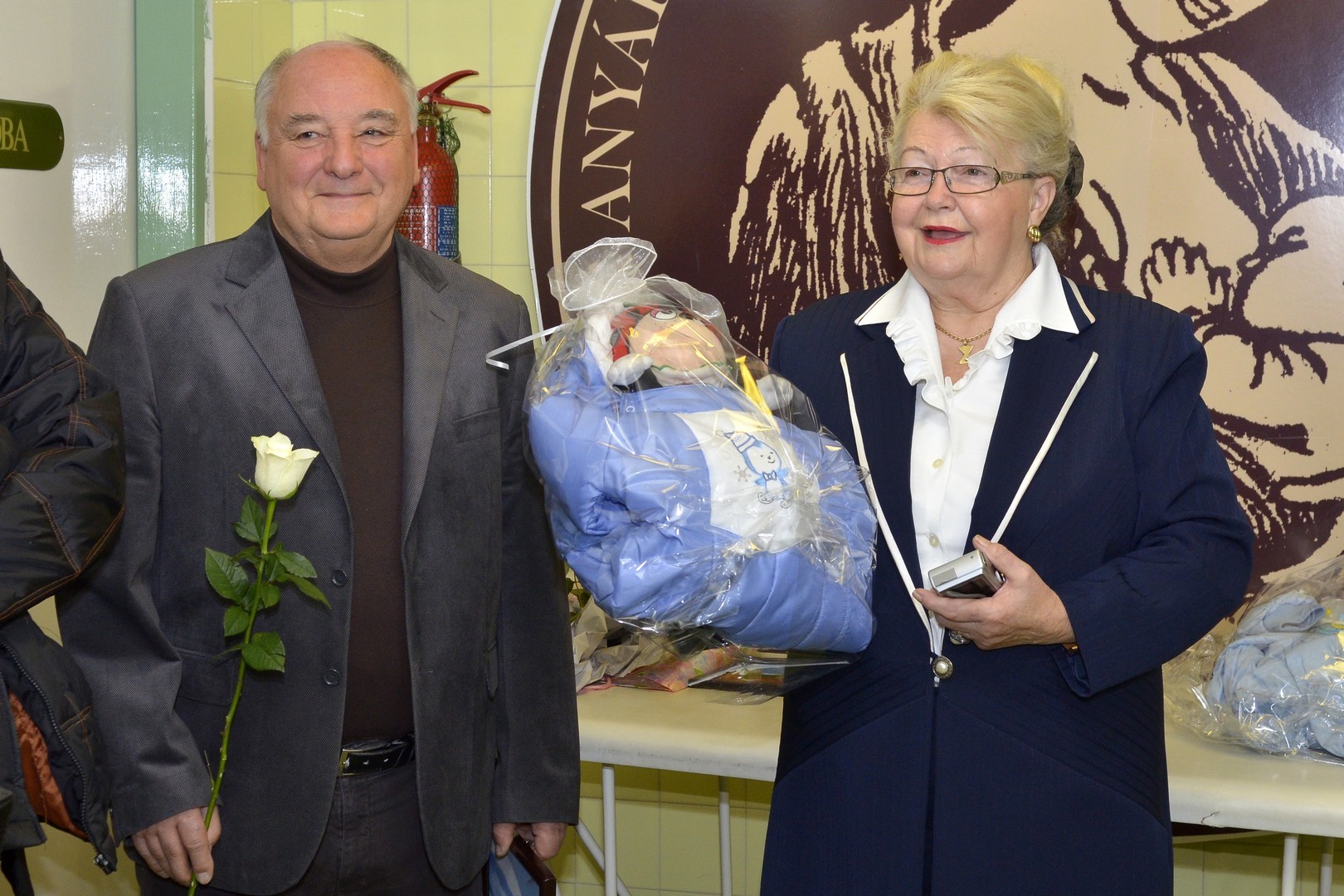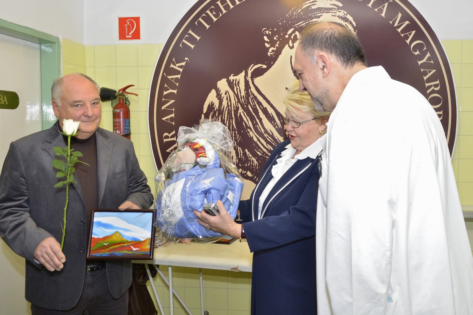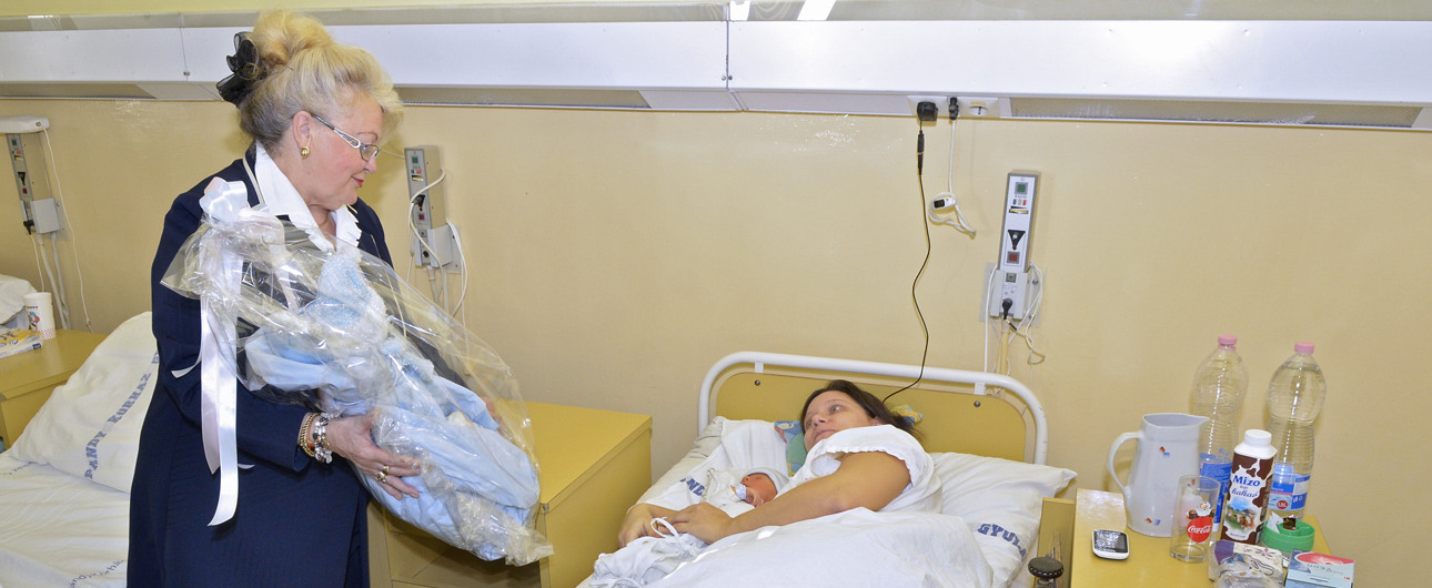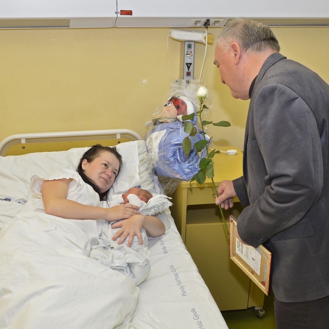 A jövevényeket Mikus Éva mecénás és a Gyulai Városbarátok Köre képviseletében Szalai György önkormányzati képviselő, valamint dr. Párducz László, a kórház szülészeti-nőgyógyászati osztályának vezető főorvosa köszöntötte. Mikus Éva az újszülötteket csecsemőoverállal és játékokkal ajándékozta meg, Szalai György fehér rózsával és Póka György festőművész alkotásával köszöntötte az anyukákat.