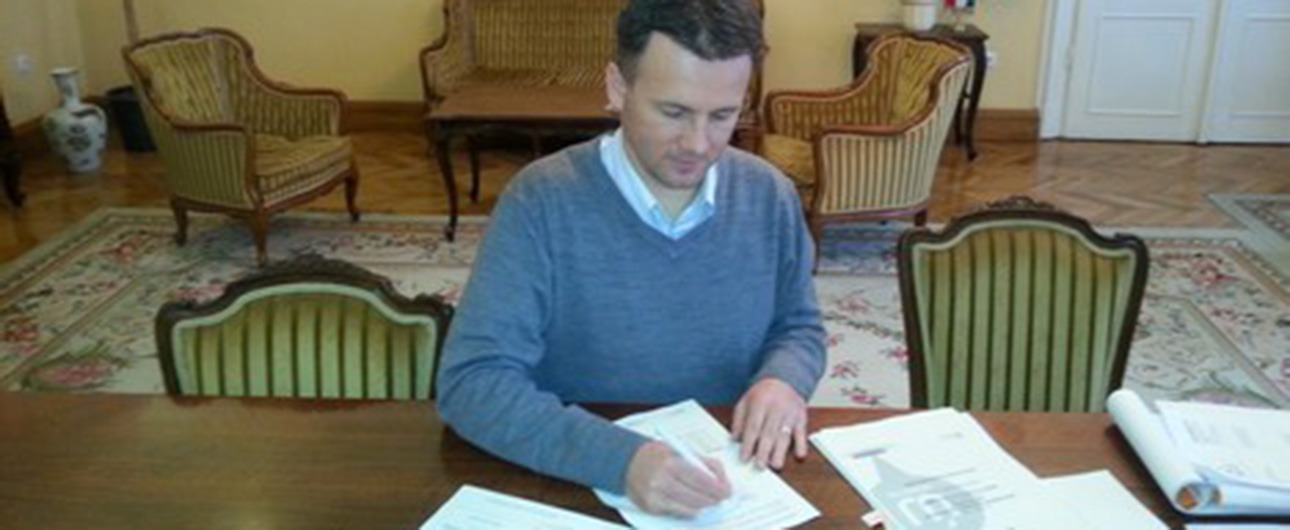 Dr. Görgényi Ernő aláírja a támogatási szerződést. Forrás: gorgenyierno.hu