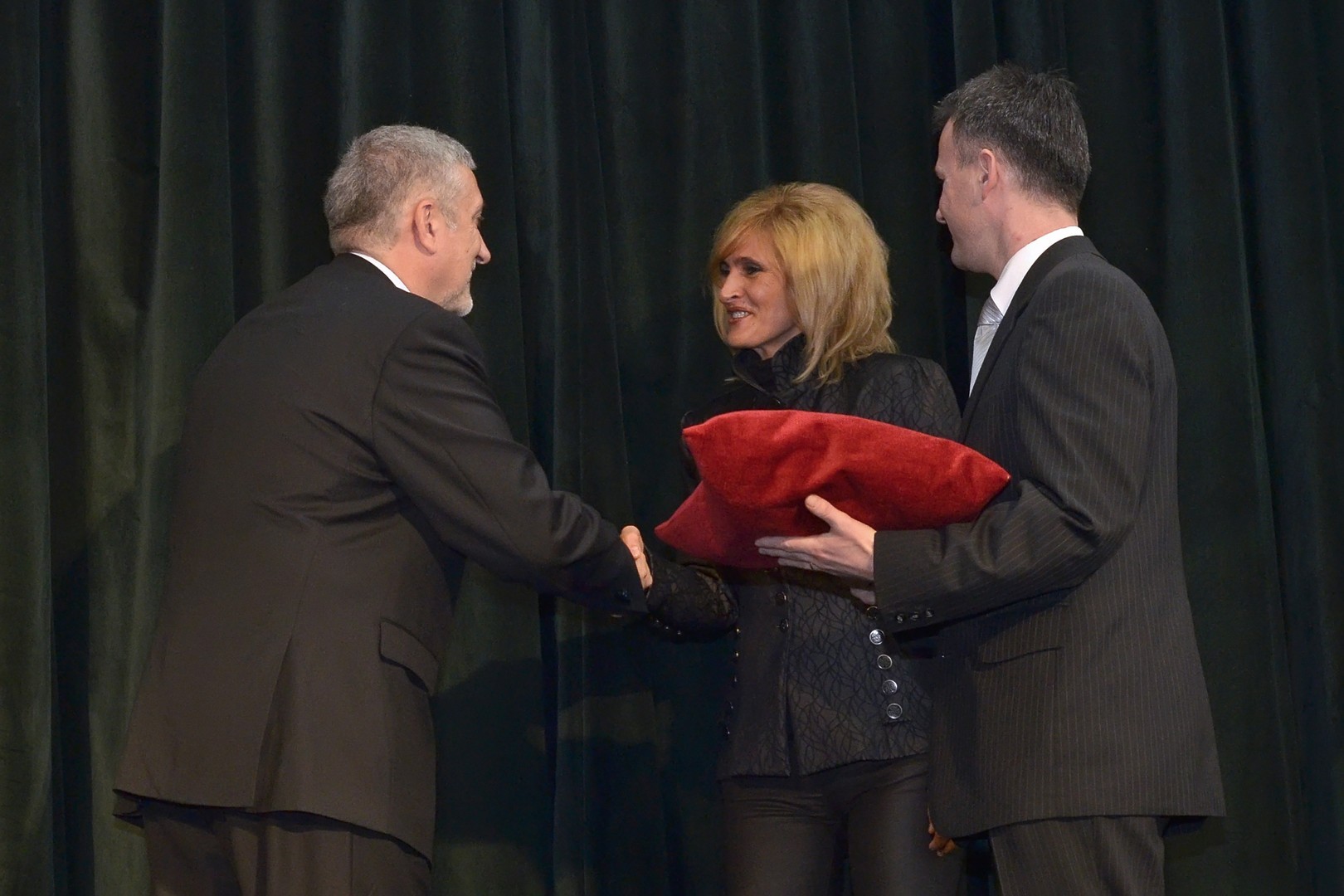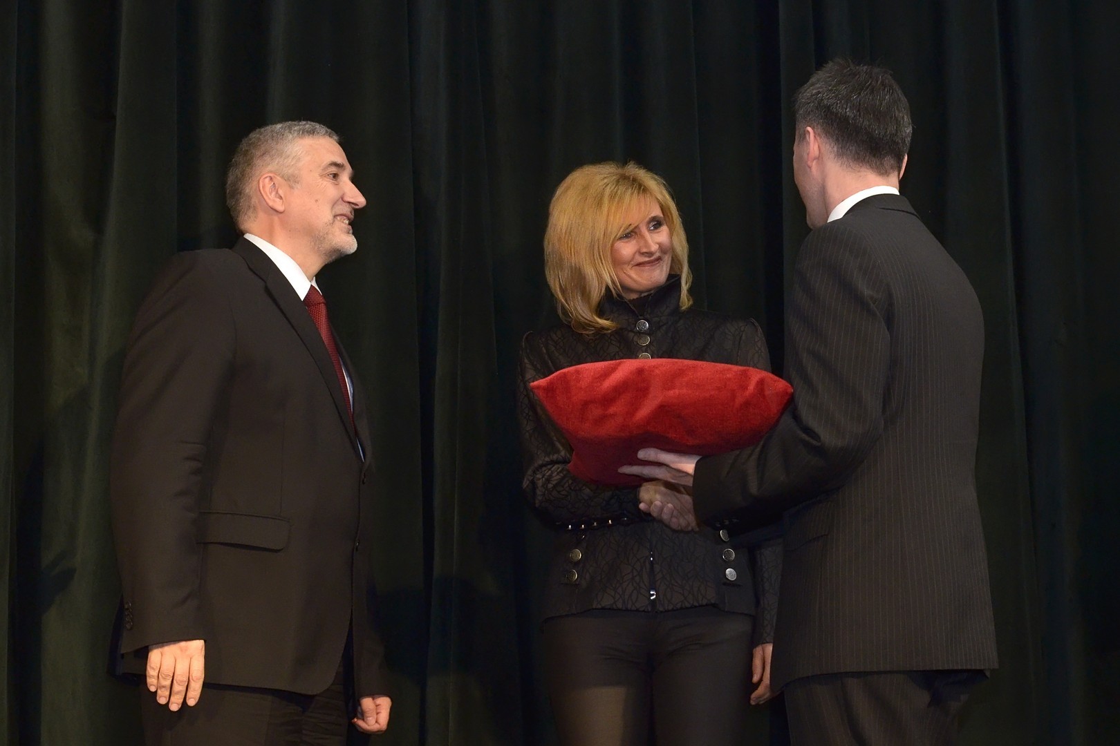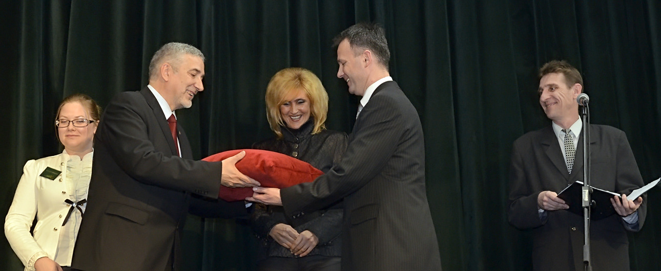 Halász János államtitkár jeképesen átadja a Vigadó kulcsát a polgármesternek és Katona Katalinnak, a Gyulai Kulturális és Rendezvényszervező Nonprofit Kft. ügyvezetőjének. Fotó: Gyulai Hírlap - Rusznyák Csaba