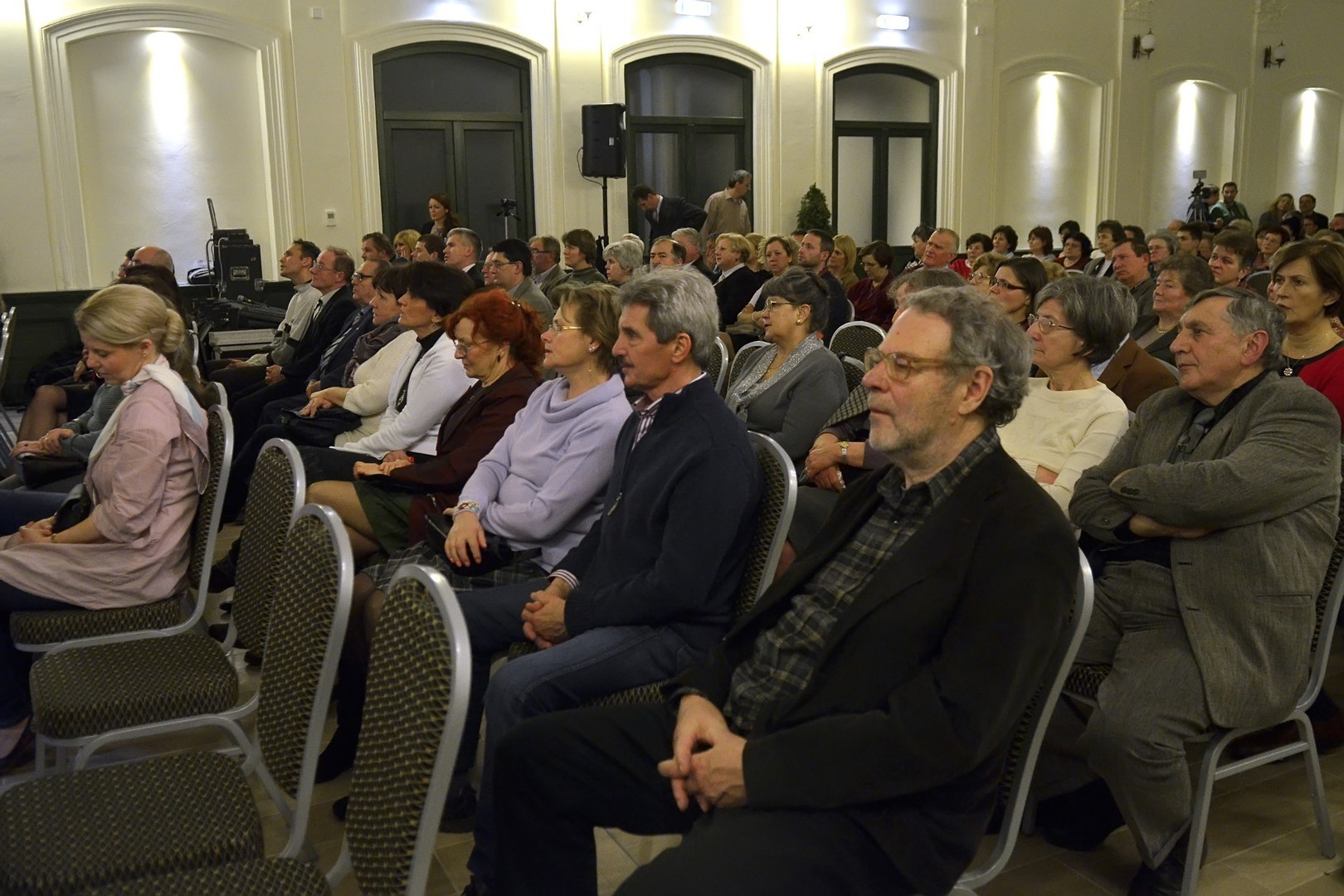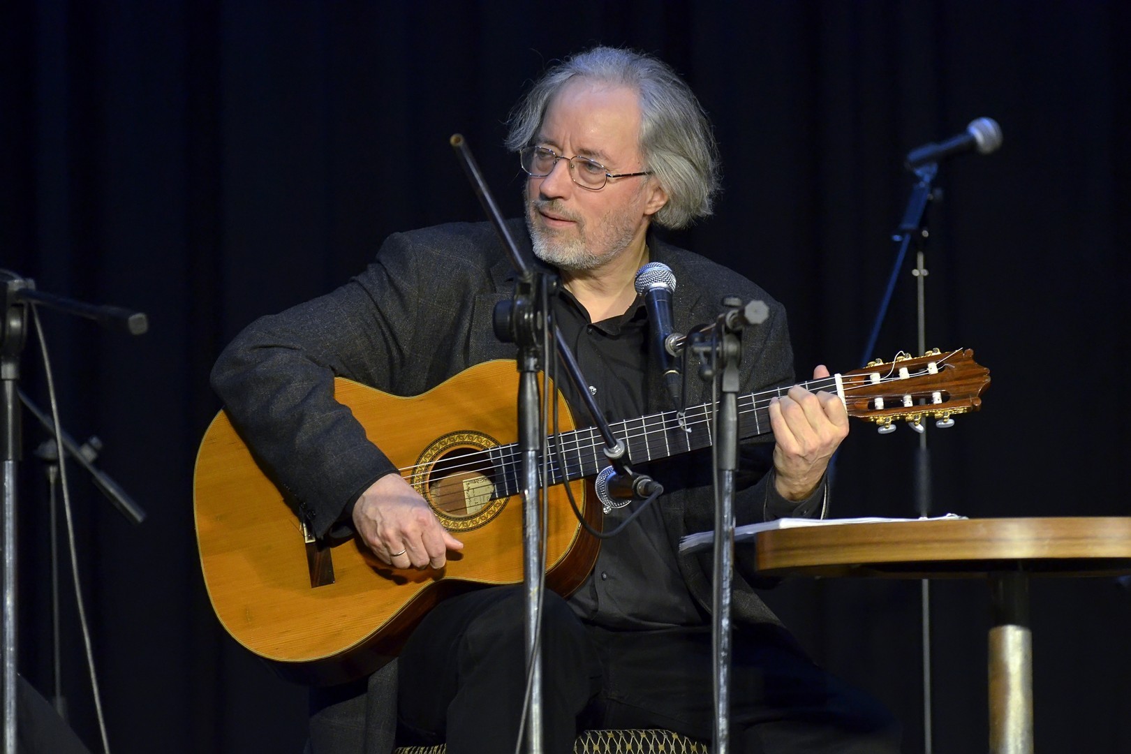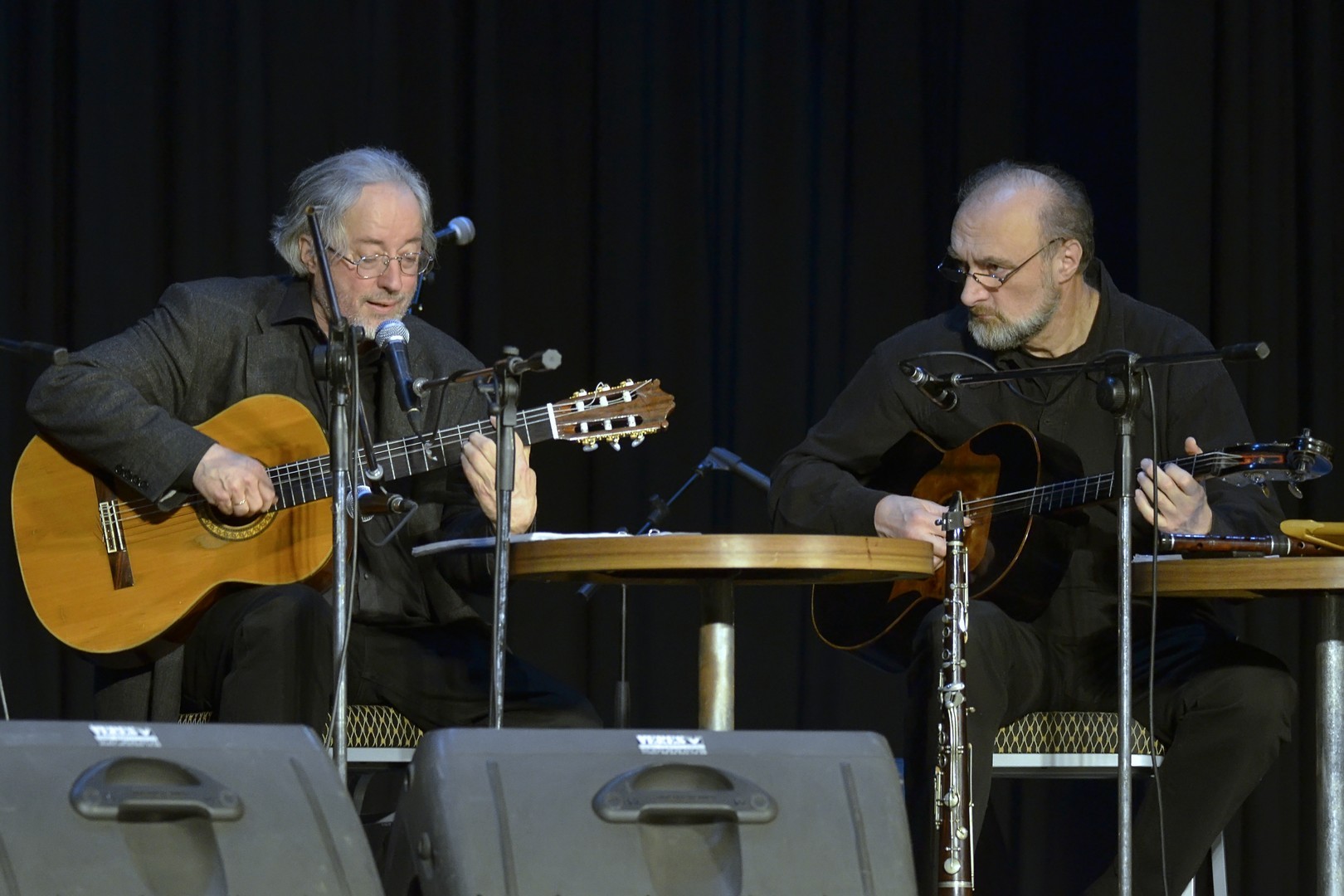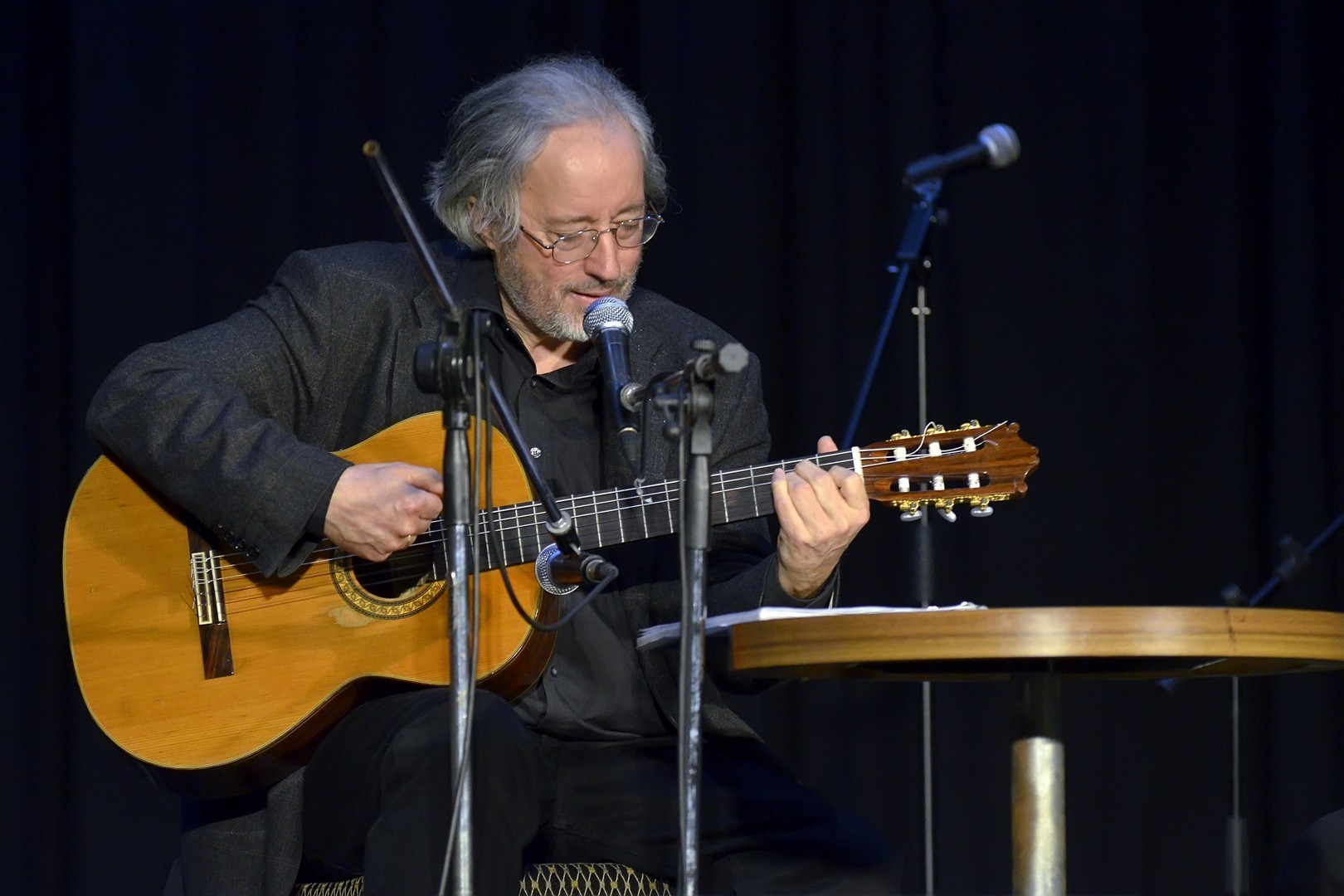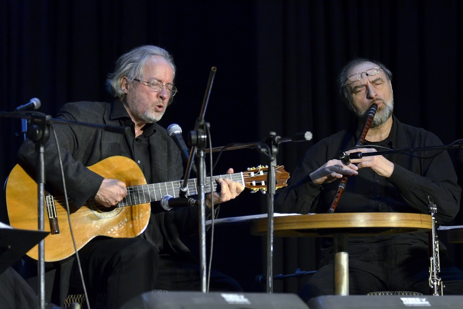 Gryllus Dániel a 100 éve született Weöres Sándor Bolero című költeményével indította műsorát. Az elmúlásról szóló sorokat éneke és légies citerajátéka tett még érzékletesebbé, majd Arany János egyik legnépszerűbb, Családi kör című versének tizennégy versszaka mint epikus, középkori históriás ének csengett a Vigadó falai között. Gryllus Dániel a hatvanas évek végén a Műegyetem szimfonikus zenekarában játszott először Halmos Bélával, aztán párhuzamosan folyt életútjuk 1990-ig, amikor a Pál apostol levelei című dalsorozatban újra együtt kezdtek muzsikálni. A több száz előadást megért, nagy sikerű műből most a Timóteusnak írt második levél és Pál imája hangzott el, amelyet az alkotók az apostoli levelek soraiból raktak össze, és amelynek refrénjét a 116. zsoltár adta. A fohász végére a Kossuth-díjas zenész és a közönség hangja együtt zengett a Vigadóban.