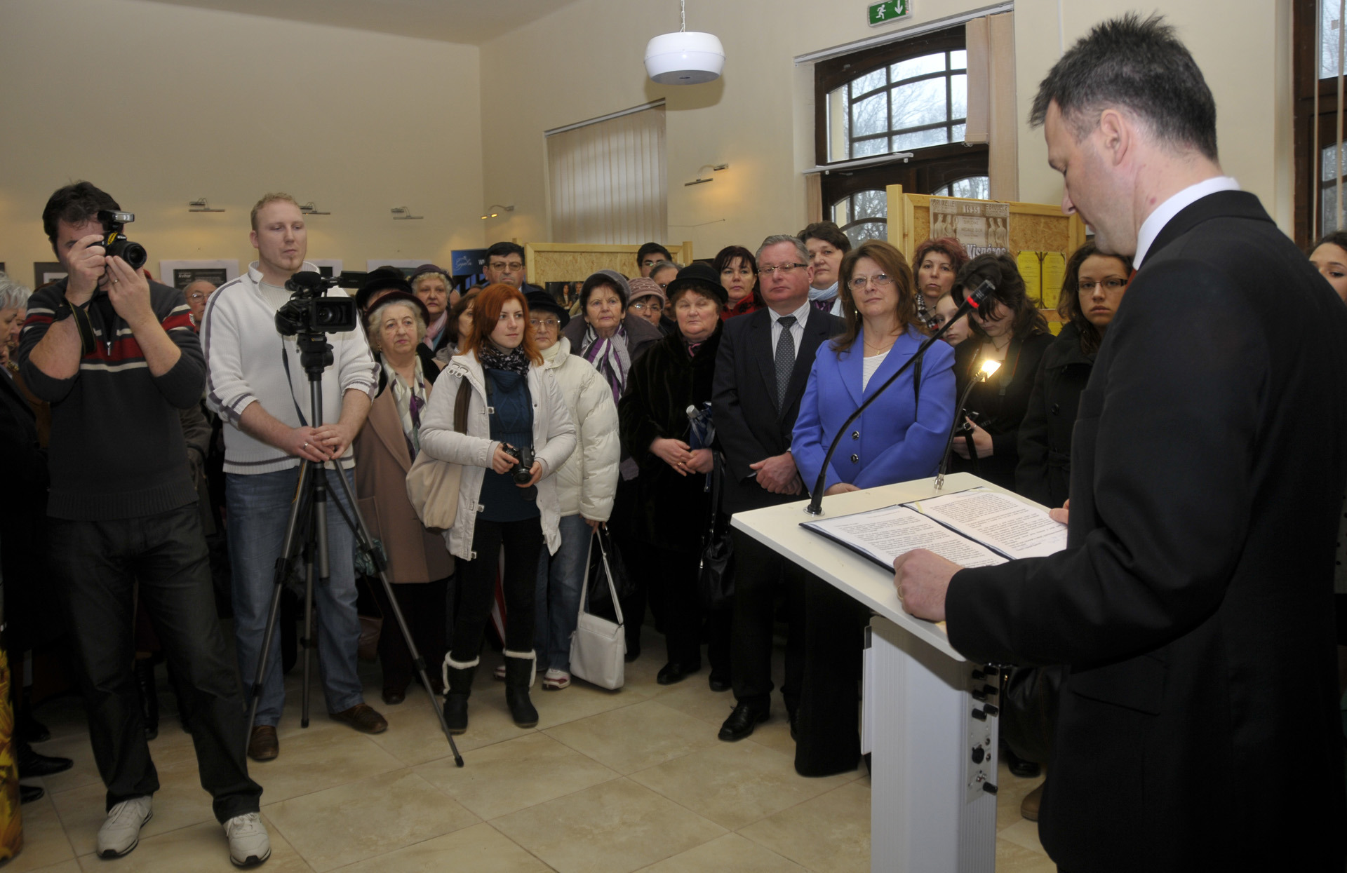 Dr. Görgényi Ernő köszöntőjében kifejtette, a helyszín és az alkalom – Nagyszalonta és a magyar kultúra napja – egyaránt méltó körülményeket teremt a két város együttműködési megállapodásának aláírásához.