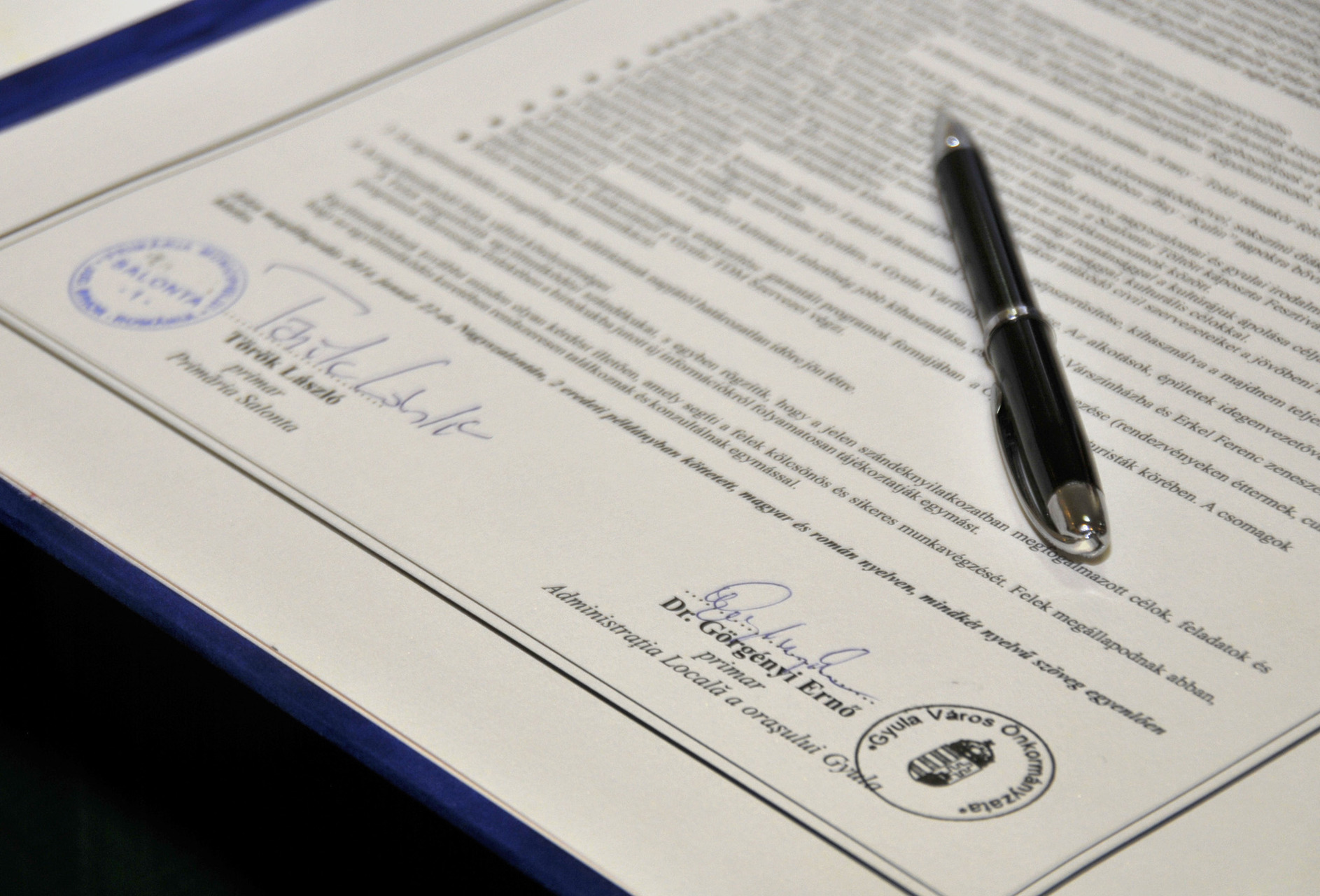 A városvezetők köszöntője után Nagy Xénia előadásában Arany János A walesi bárdok című költeménye hangzott el, majd a polgármesterek aláírták a két város közötti kulturális és turisztikai együttműködési megállapodást. A kölcsönös partnerségi kapcsolat magában foglalja a két város híres szülöttének, valamint műveik széleskörű ismertetését és népszerűsítését, valamint az érdekviszonyok összehangolását a két település turisztikai versenyképességének fejlesztése céljából. Az egyezmény aláírása után a nagyszalontai polgármester minden jelenlévő gyulainak ajándékozott egy kis földet Arany János szülőföldjéből, hogy legyenek nagyszalontai „földtulajdonosok”.