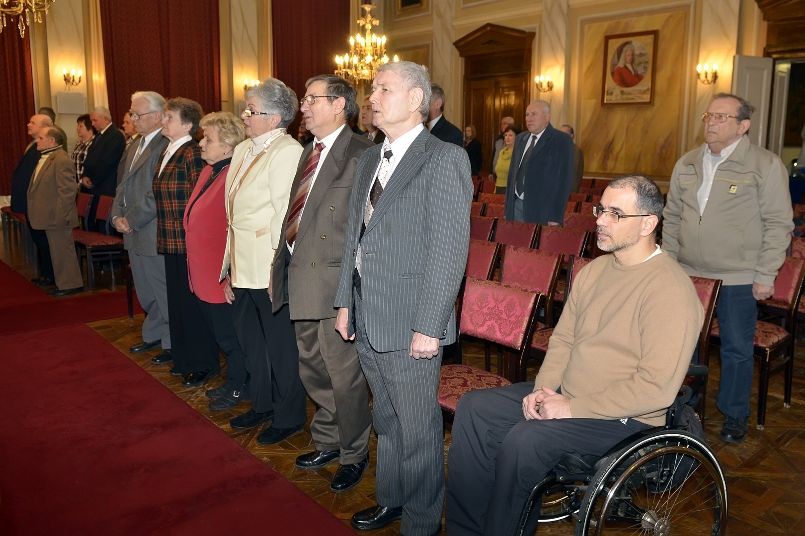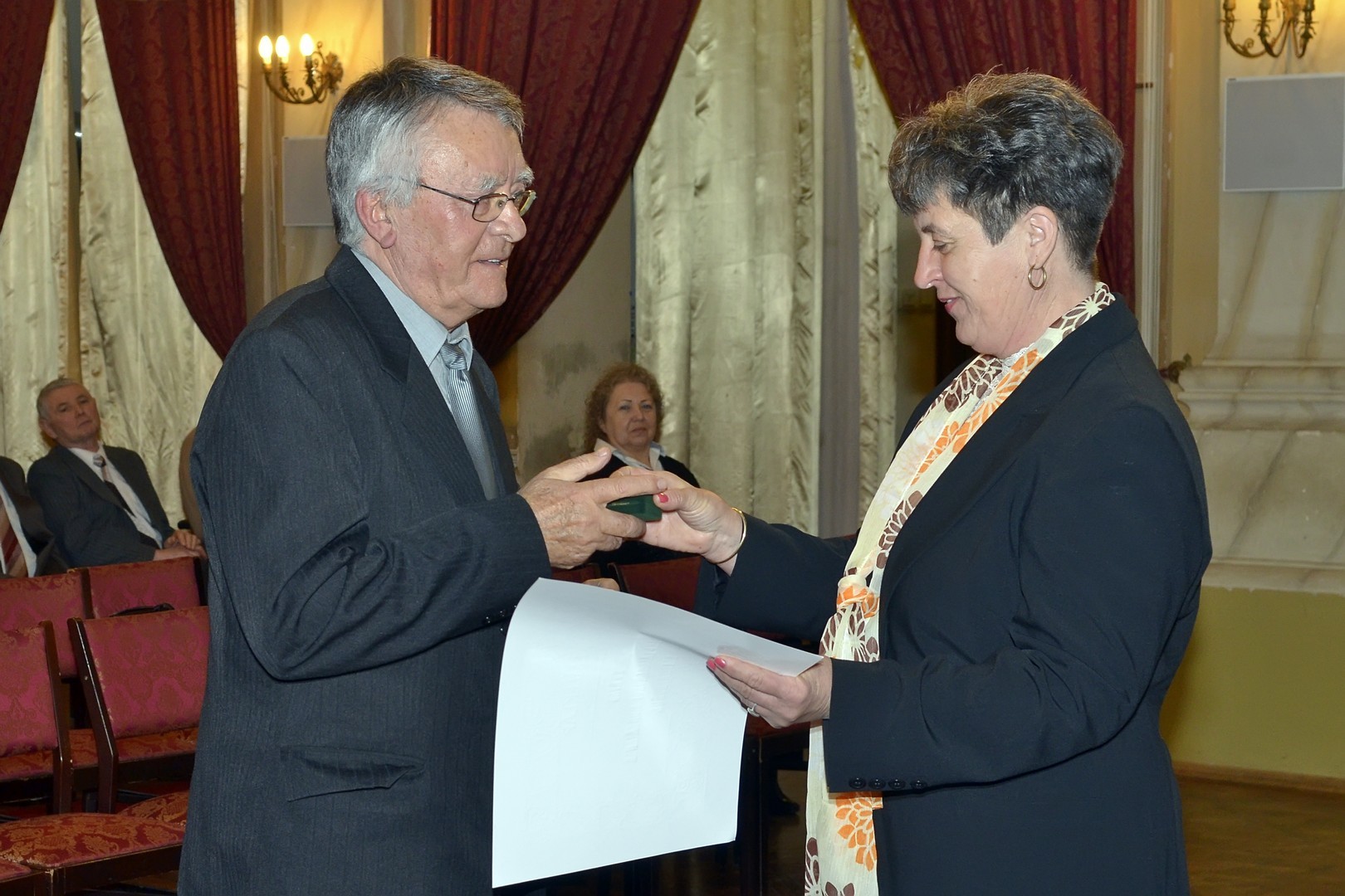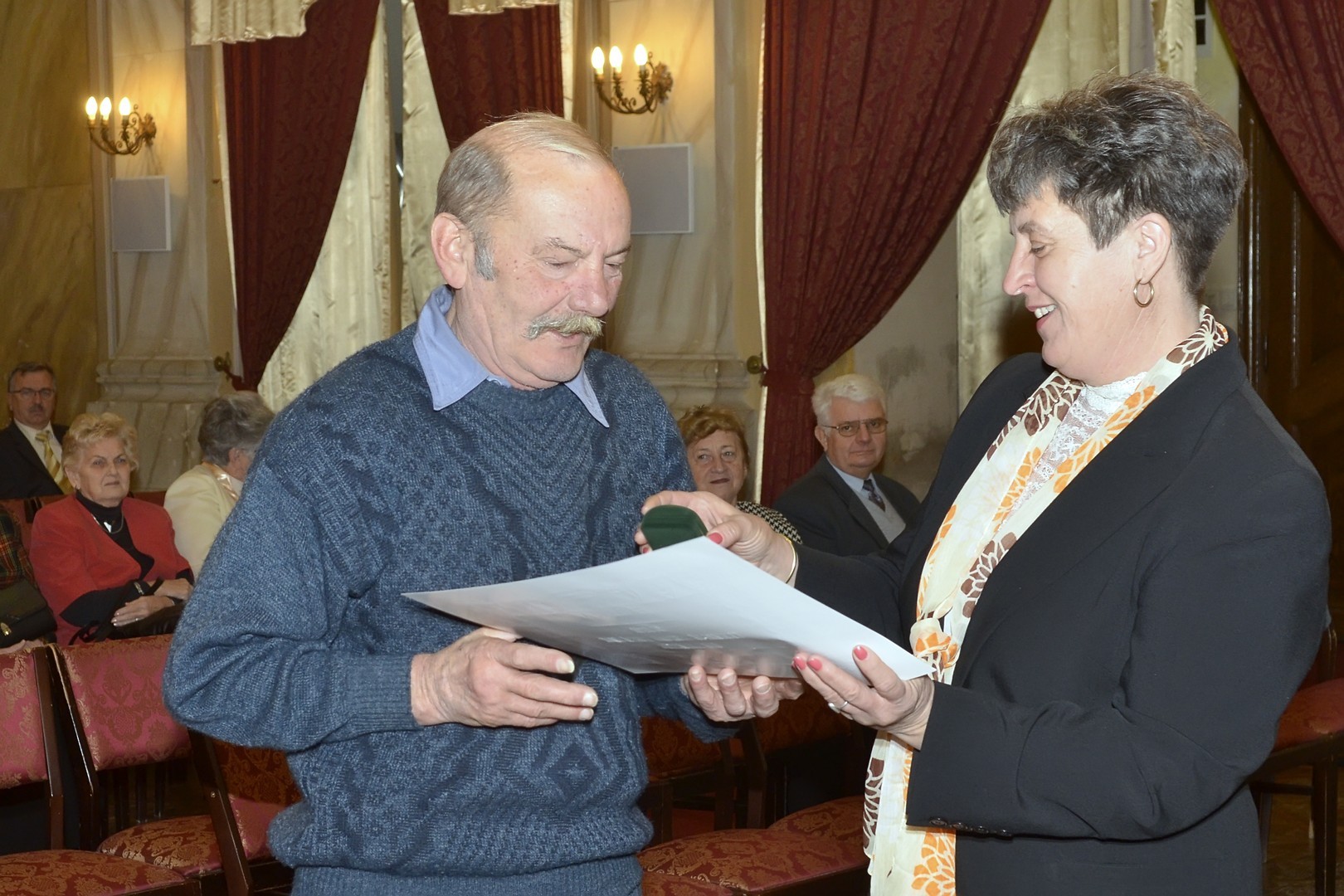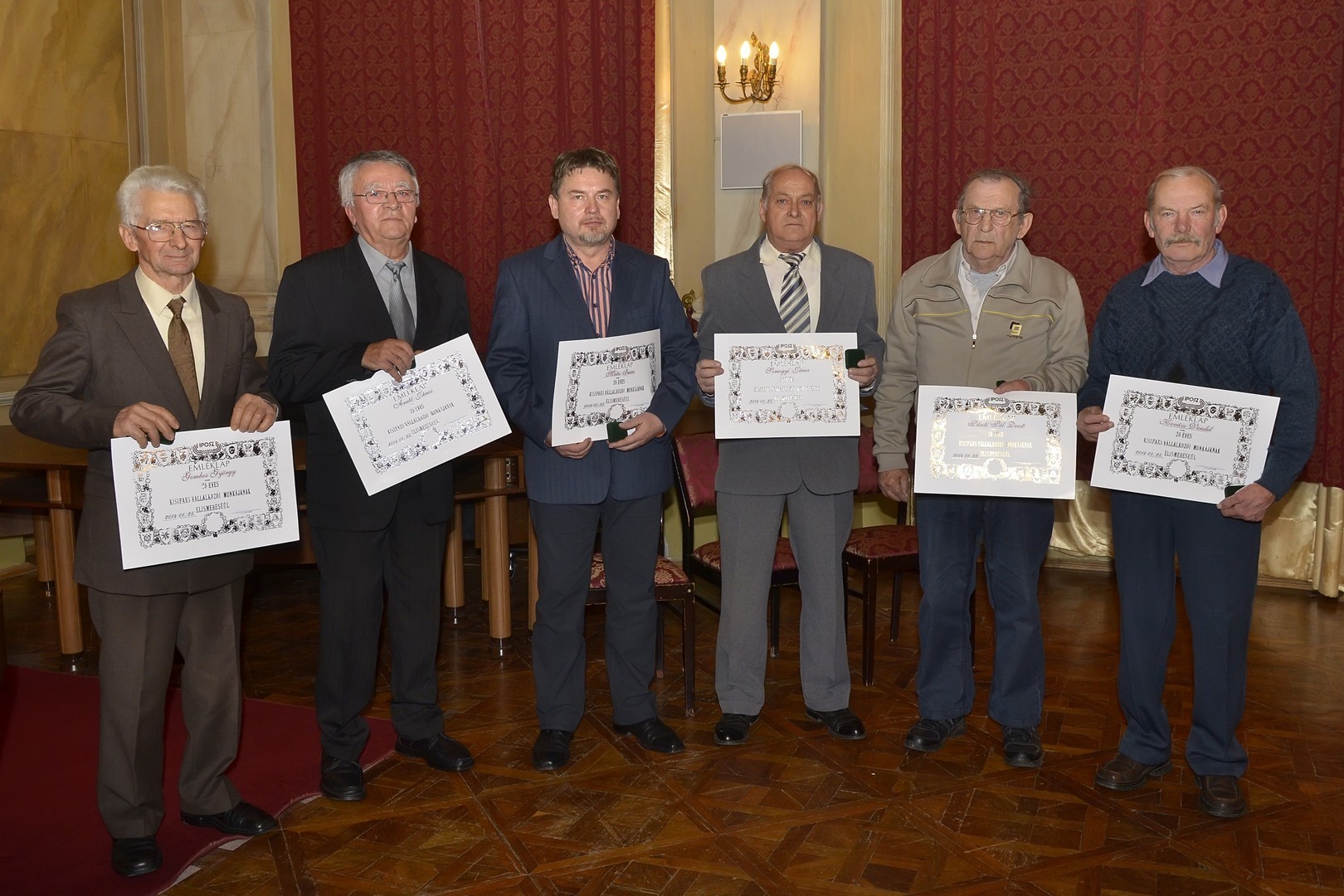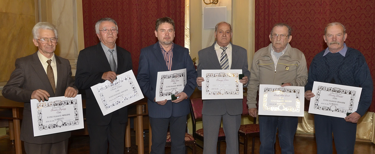 Arató János zoknikészítő, Mata Imre kereskedő, épületburkoló, ingatlanvagyon-értékesítő, Gombos György autószerelő, lakatos, Somogyi János autószerelő, Bíró Lajos koszorúkészítő, Pászti Pál Dezső fémcsiszoló, köszörűs-szerszámköszörűs, Kovács Vendel víz-gáz és központi fűtés szerelő, valamint Háromházi Gyula személyszállító-taxis munkásságát és 25 éves ipartestületi tagságát Ezüst gyűrű-díjjal ismerte el a Gyula és Környéke Általános Ipartestület. Az elismeréseket a Gyulai Ipartestület fennállásának 100. évfordulója alkalmából megrendezett ünnepségen vehették át a mesterek ma délután a városháza dísztermében.