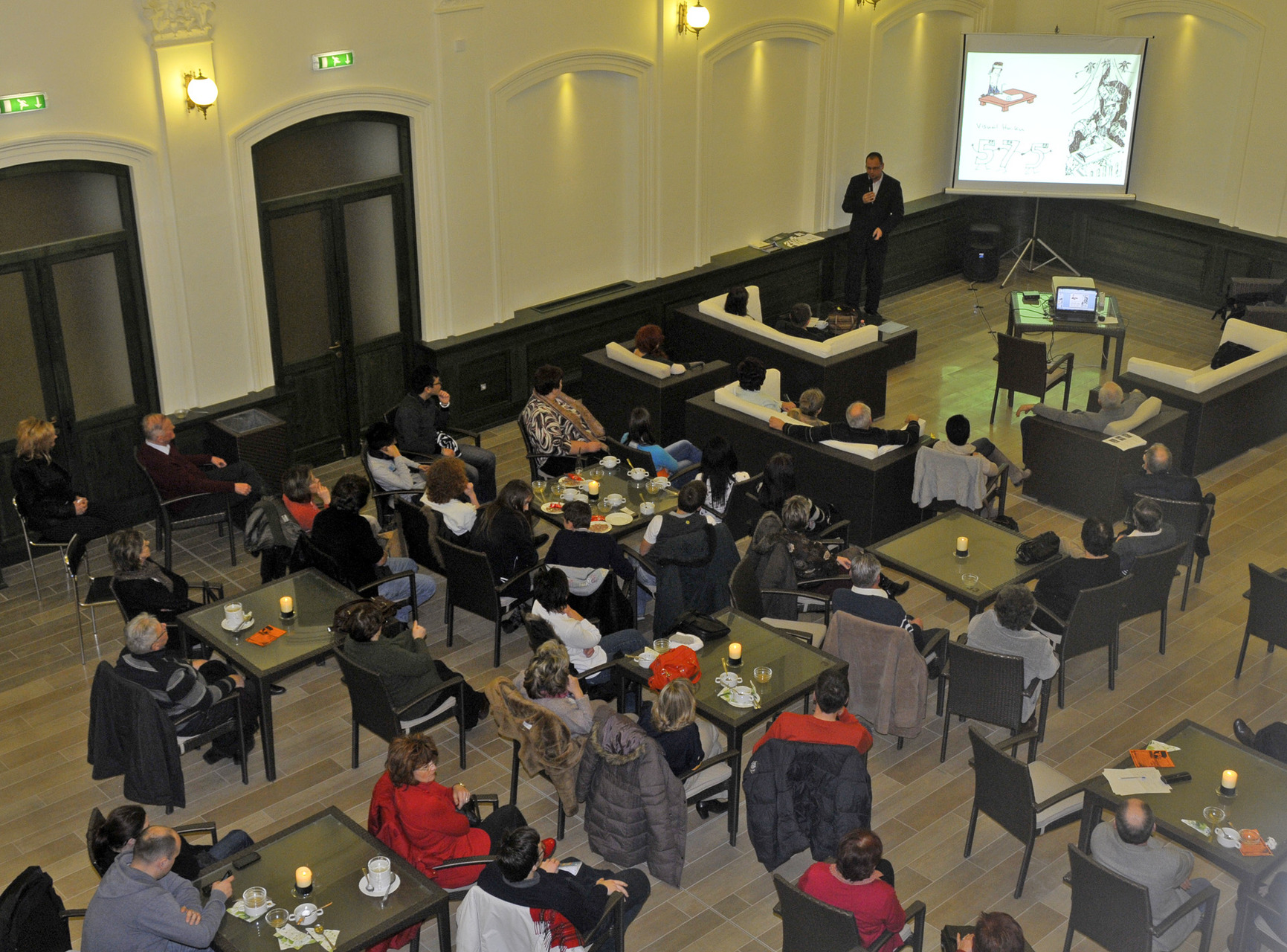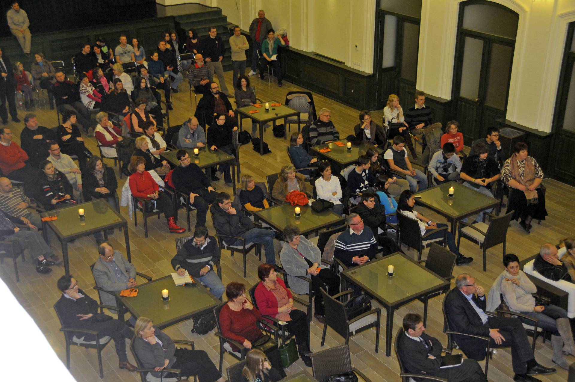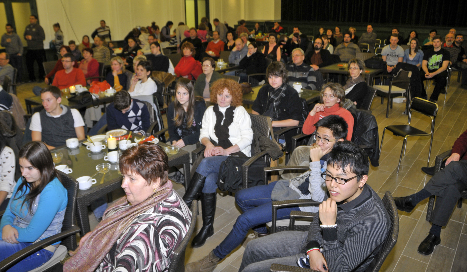 Az idei szezon első havazásában indultak útnak azok, akik a felkelő nap országát bemutató estre igyekeztek a Vigadóba. A közelmúltban megújult épületben japán tájak fotói, füstölőillat és a bambuszból készült, tradicionális fúvós hangszer, a shakuhachi hangja várta a betérőket. Konnichiwa – üdvözölte a vendégeket Varga Zoltán konferanszában, dr. Bartóki László, a Japánkert Barátok Köre Egyesület elnöke pedig japán ételek kóstolására invitálta a nagy számban megjelent közönséget.