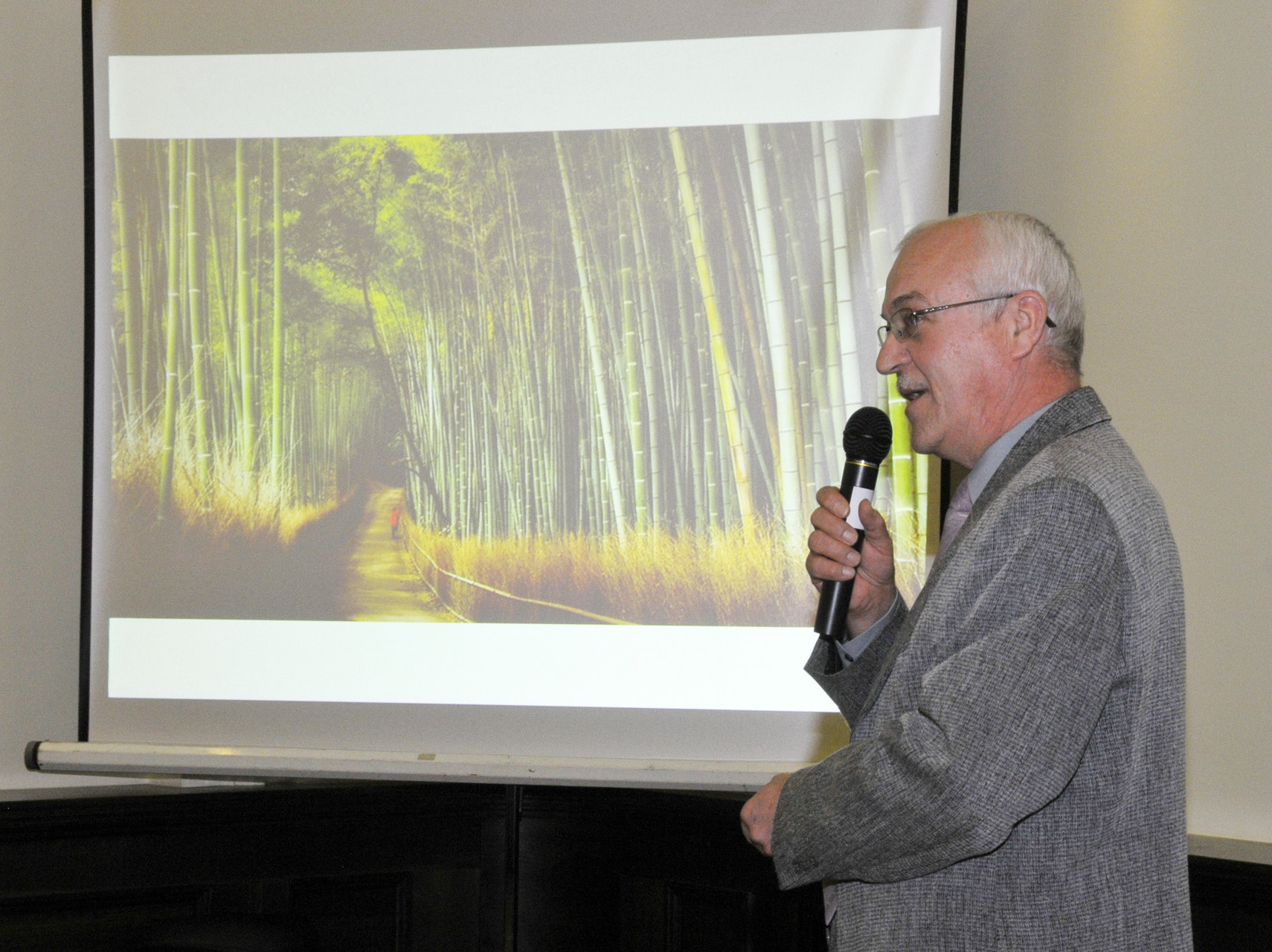 Dr. Bartóki László, a 2008-ban városunkban létrejött Japánkert Barátok Körének elnöke a művészi japán kertkultúrát és napjainkra gyakorolt hatását mutatta be a jelenlévőknek. A természet tiszteletéről és a meditatív gondolkodásáról híres Japánban igen magas szintre fejlődött a kertkultúra, amelynek legfőbb lényege az egység és harmónia. Jellemzői – a fákon és cserjéken kívül – a „föld csontja”, a kő; a tengert szimbolizáló vízfelület, az ezen átívelő, sokféle formájú fa-, vagy kőhíd; a pagoda és a kőlámpás. Vagy a külvilágot a kerti szentélytől elválasztó kapu, amely szándékosan alacsony, vagy küszöbben van ellátva, hogy a betérő mindenképpen főhajtással lépjen be a kertbe. A juharból, különböző puszpángokból, örökzöldekből, bambuszokból és kül-, vagy beltéri bonszájokból álló japán kertstílus ma már az egész világon ismert és kedvelt. Látványvilága napjainkban az ázsiai országokon kívül szinte minden nagyvárosban – New Yorkban, Washingtonban, Amsterdamban, Oslóban, Stockholmban és Budapesten – is felfedezhető.