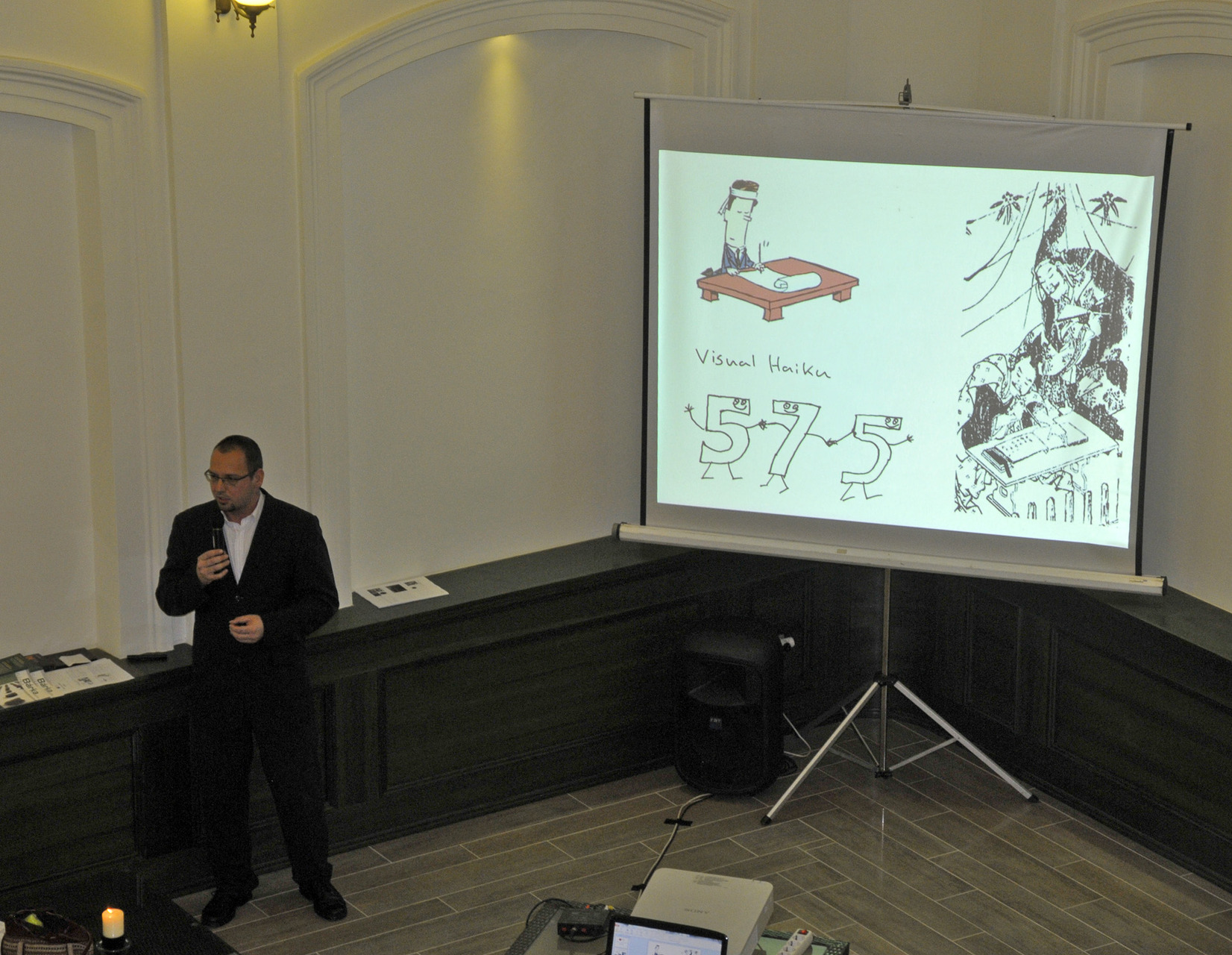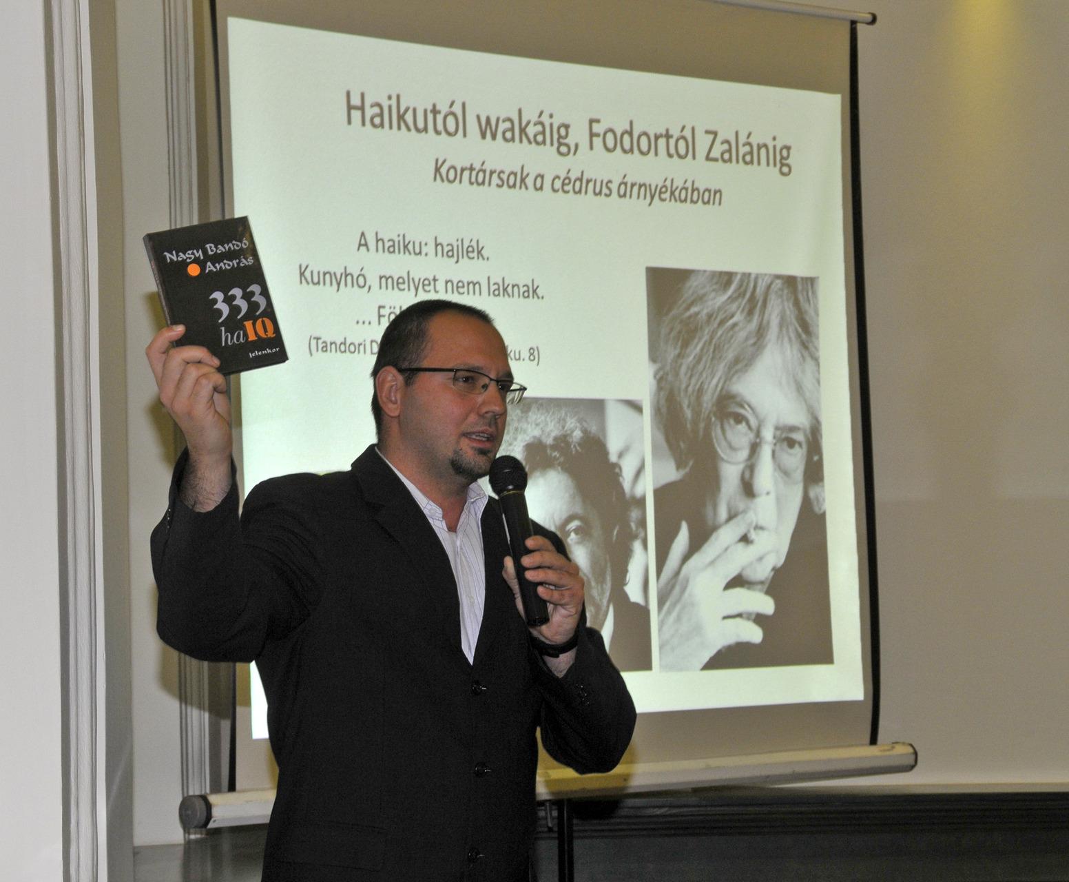 Az utolsó előadásban Fodor György középiskolai tanár, nyelvész, a MAPON titkára haiku versekkel, illetve a japán költészettel ismertette meg az érdeklődőket. A haiku egy VIII. században alakult japán műfaj, illetve versforma, melynek három sora 5-7-5 szótagból áll. Fodor György első haikujával jellemezve: „sűrű gondolat/ tömör rövid érdekes/csattanós véghang”. Előadásából nemcsak a haikuk szerkezetét, jellemzőit, neves japán képviselőit – Basho, Buson, Issa – ismerhettük meg, kiderült, hogy a haiku-költészetnek számos magyar és más nemzetiségű művelői is vannak. Többek között Kosztolányi Dezső, Faludy György, József Attila, Weöres Sándor, Zelk Zoltán, Kányádi Sándor háromsorosai után, megszólaltak a kortársak költeményei is: Zalán Tibor, Nagy Bandó András, Fodor Ákos és Terebess Gábor, aki több mint 30 ezer magyarra fordított haikuból álló gyűjteménnyel bír, melyben nem mellesleg Fodor György 218 haikujából is több megtalálható.