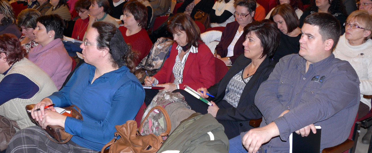 A megszokott érdeklődés mellett zajlott le ma a Szociális Igazgatók és Szakemberek Magyarországi Egyesülete (SZIME) Békés Megyei Egyesülete szociális munkanapja Gyulán. A zeneiskolába invitált szakemberek főként a Nemzeti Szociális és Rehabilitációs Hivatalból érkeztek azért, hogy délelőtt jogszabályi- és ellenőrzési bemutatókon vegyenek részt, az ebéd elköltése után pedig TÁMOP-programok által kínált lehetőségekről értesüljenek.