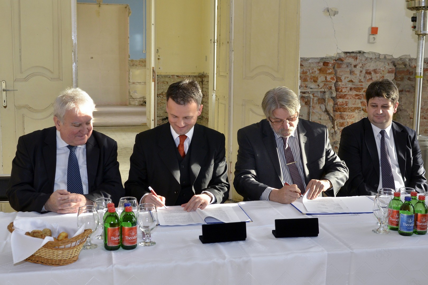 Megkezdődhet a Hétköznapok és ünnepek az alföldi kastélyokban – A gyulai Almásy-kastély évszázada című projekt, miután ma délután dr. Görgényi Ernő polgármester és Németh Miklós, a nyertes kivitelező cég ügyvezetője aláírta az építési szerződést. Egy hosszú út egyik legfontosabb állomásához ért Gyula városa: eredményesen zárult a közbeszerzési eljárás, melynek nyertese a Modinvest Kft. A kivitelezés február 10-én indul, s - a szerződés szerint - december 31-ére be kell fejezni a munkálatokat azért, hogy egy történelmileg hiteles, ugyanakkor élményközpontú kiállítás biztosítson turisztikai vonzerőt a városnak – hangzott el dr. Görgényi Ernő polgármesternek az aláírási ceremóniát felvezető beszédében.