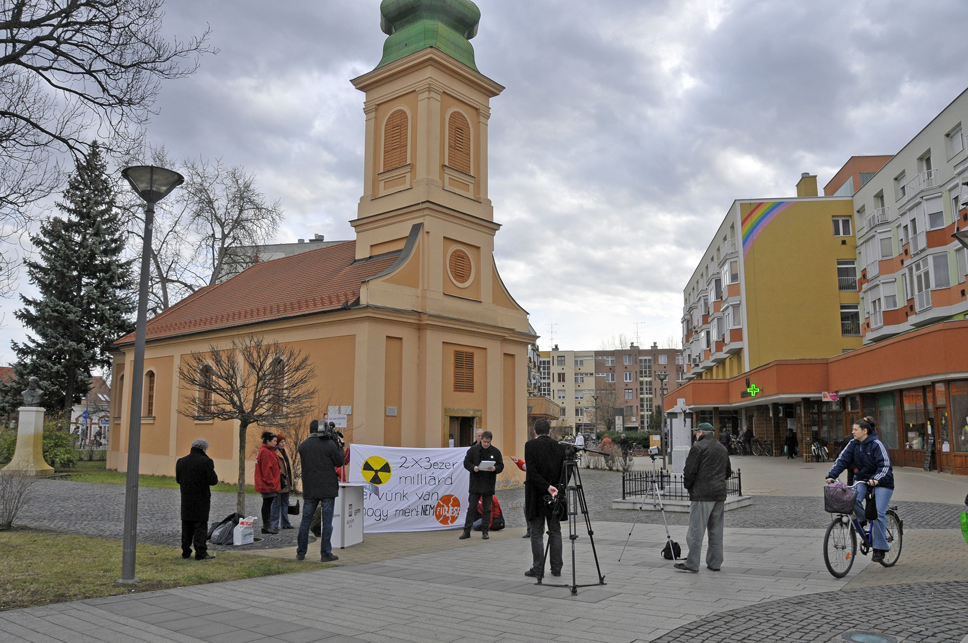 Miért sodorja adósságba rossz és botrányos döntéseivel a gyulai és a választókerületben élő családokat dr. Kovács József és Gajda Róbert fideszes országgyűlési képviselő? – tette fel kérdését Bod Tamás az ellenzéki Összefogás országgyűlési képviselőjelöltje koradélutáni sajtótájékoztatóján, melyet ezúttal is kis performansszal egészítettek ki az aktivisták a Szentháromság kápolna mellett.
