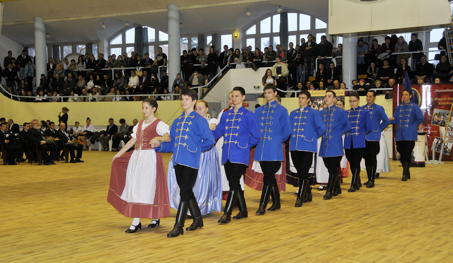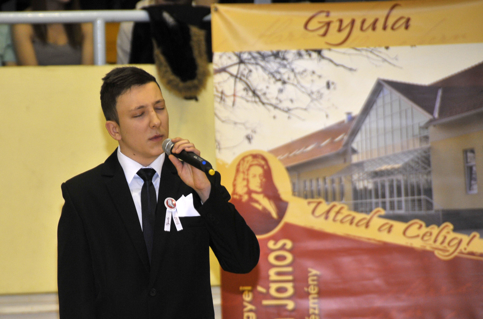 A szalagtűzést követően az iskola diákjai adtak ünnepi műsort. A palotást, a bálok nyitó társastáncát Gyalog László koreográfiája alapján a Harruckern Táncegyüttes adta elő, majd Vaszkán Dóra szavalata következett. A 12.A osztály Demjén Ferenc Felnőtt gyermekek című dalát adta elő. A ismert dal után a Harruckern Iskola színi tanházának növendékei modern táncos előadását láthatta a közönség, majd Varga Bianka és Farkas Sándor színészhallgatók a Rómeó és Júlia musicalből énekeltek el egy dalt. A békéscsabai színi tanház táncszakos növendékei Mamma mia című koreográfiáját láthatta a publikum, majd a műsor újabb dallal folytatódott: Husz Richárd végzős tanuló énekelt.