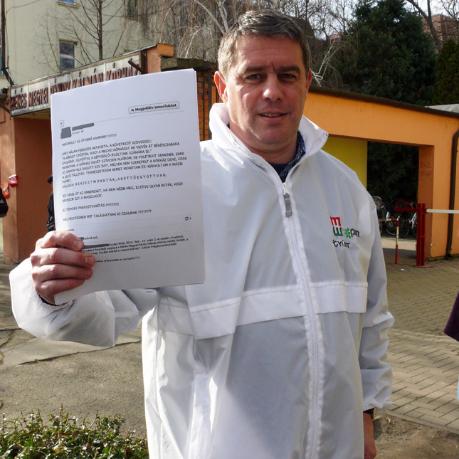 „Nálam járt egy Fideszes aktivista a következő szöveggel: „aláírást gyűjtök, hogy a megyei kórházat ne vigyék át Békéscsabára Gyuláról. Egyúttal a képviselő-jelöltünk számára is.” Mondtam, a kórház ügyét szívesen aláírom, de politikait senkinek. Erre az orrom alá dugott egy ívet, melyen nem szerepelt a kórház ügye, csak a jelöltállítás. Természetesen nemet mondtam és hiányoltam a másik papírt. Válasza: neki ezt mondták, a kettő együtt van. Így verik át az embereket, ha nem nézik meg, illetve olyan buták, hogy beveszik ezt a maszlagot. Ez tényleg parasztvakítás! Más helységben mit találhatnak ki csalinak?” – olvasható a csupa nagybetűvel írt bejegyzésben.