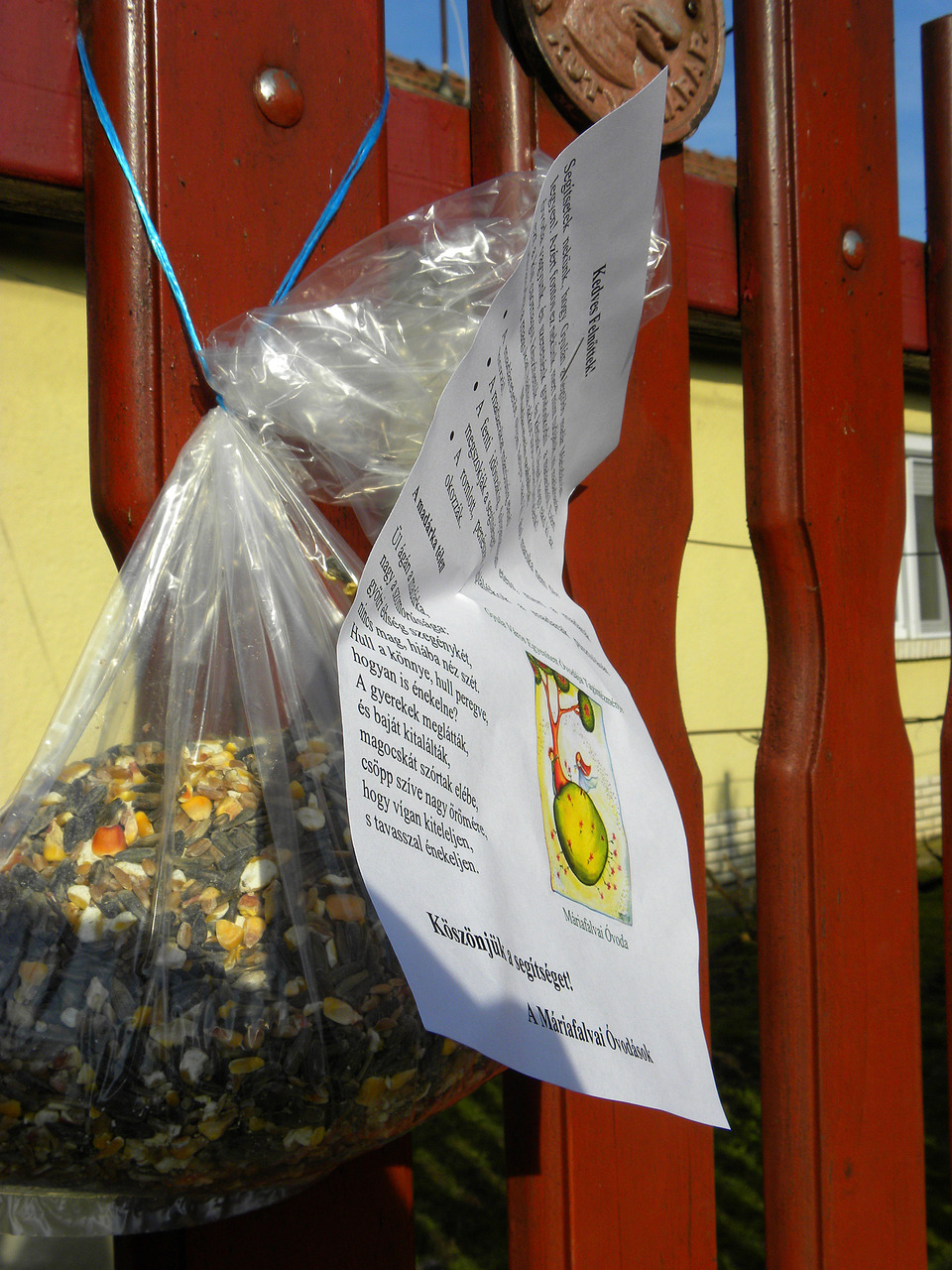 A szülőknek köszöngetően nagyon sok madáreleség gyűlt össze az óvodában, ezért az intézmény dolgozói úgy döntöttek, hogy az összes máriafalvai háztartást megajándékozzák a fölöslegből – tudtuk meg Jenei Marianna tagintézmény-vezetőtől.