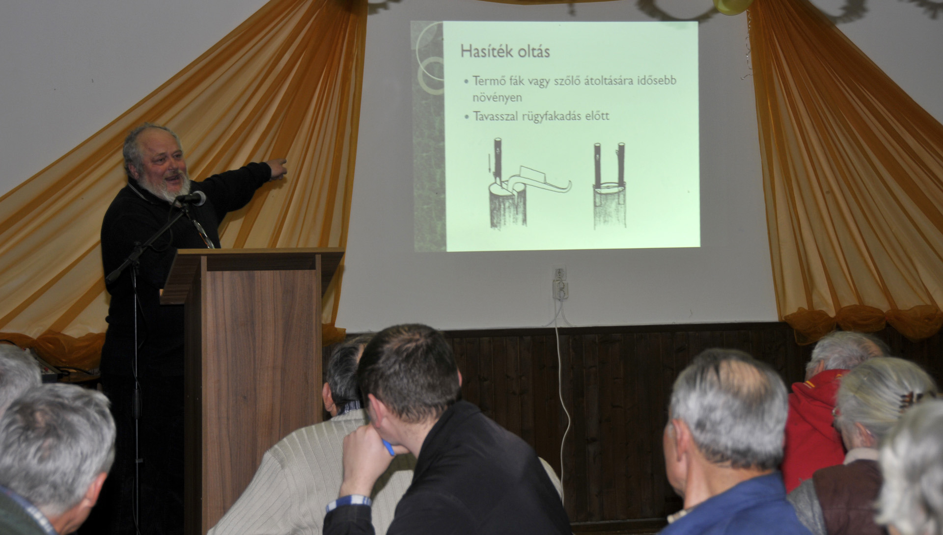 Pomázi Ferenc kertész előadásában az oltás és a szemzés elméletét sajátíthatták el az érdeklődők. Szó esett az oltások megfelelő időszakáról, a jó oltóalanyról, a különböző oltási technikákról és hatékonyságukról, valamint a gyümölcsnemesítés szerszámairól. Az előadást követően mindenki kipróbálhatta a hallottakat, sőt oltási alanyhoz is hozzájuthattak a szemfüles kertbarátok.
