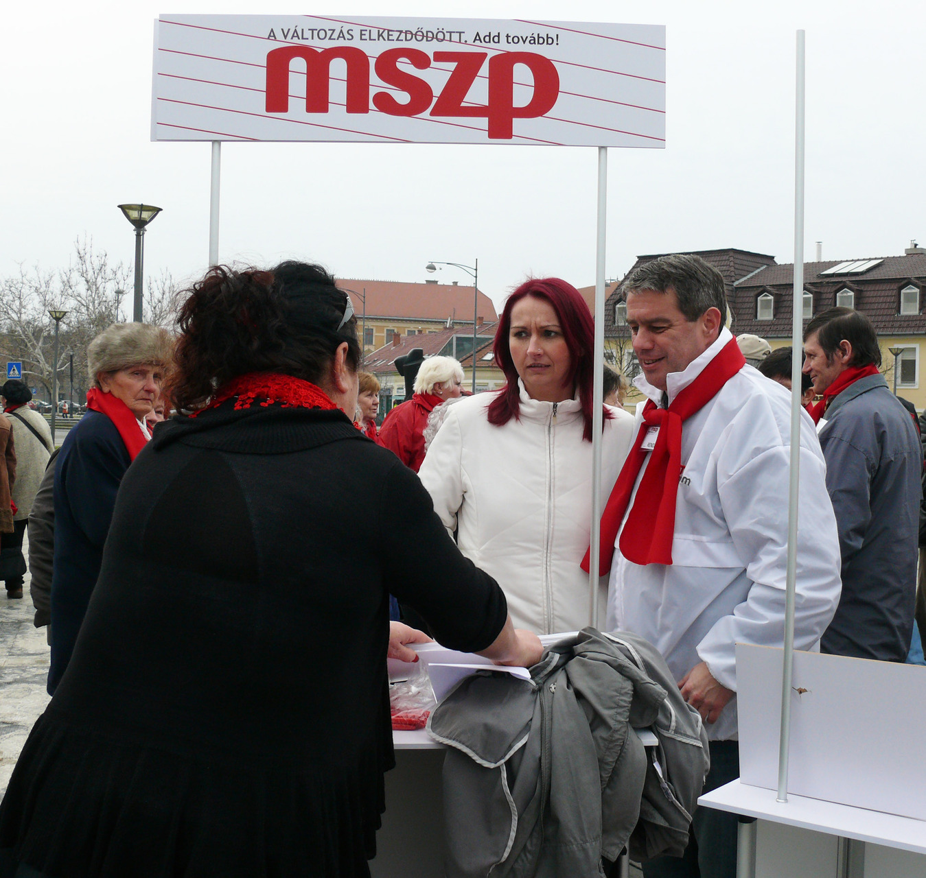 A mintegy százfős tábor a Kossuth téri találkozót követően, a városházát is érintő körsétát tett. A szökőkutakhoz visszatérve Gurmai Zita és Bod Tamás, az Összefogás helyi országgyűlési képviselőjelöltje - a mögéjük felsorakozó támogatók gyűrűjében – ismertette megmozdulásuk célját.