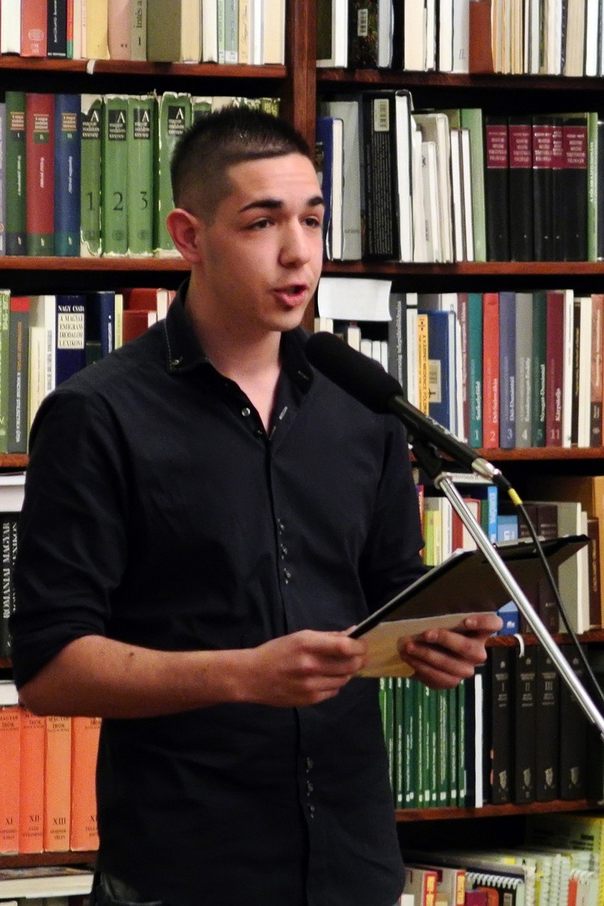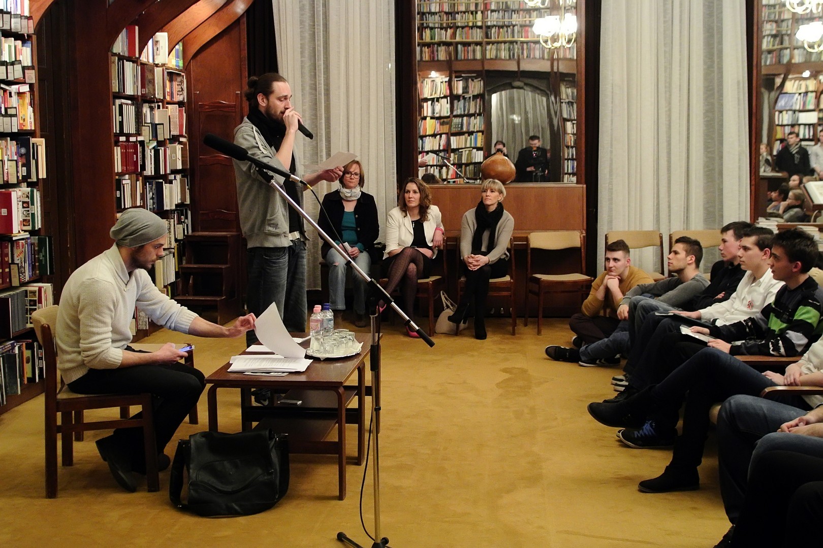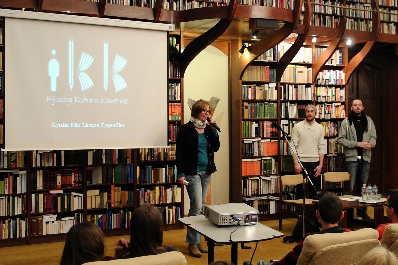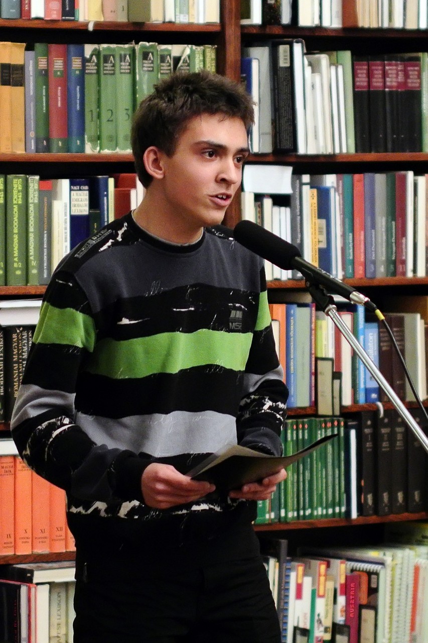 Talán fél év telt el azóta, hogy a bibliotéka Schriffert-Tóth Eszter könyvtáros ötlete nyomán – kedvcsinálóként – megszervezte az első gyulai slam(szerű)partit. Akkor Csider István Zoltán, Závada Péter, Hartay Csaba és Kiss László olvasta fel szövegeit, ezúttal pedig Pion István költő, újságíró és Simon Márton volt az este díszvendége. A Gyulai Kék Lámpa Egyesület és a könyvtár Ifjúsági Kultúra Kávéház elnevezésű programsorozatához kapcsolódó rendezvény egy rendhagyó kiállításmegnyitóval vette kezdetét. A Karácsonyi János Katolikus Gimnázium diákjai – Papp Zanett, Rokszin Anett és Kliszek Antal – által készített fotókat Simon Márton tavaly megjelent, Polaroidok című kötete ihlette. Számozott pillanatképek az életről – míg a fehér vásznon a fotók váltogatták egymást, a költő egy nyitóbeszédnek szánt szöveget olvasott fel. Nincs rossz megoldás – mondta elöljáróban, majd a textusban is ugyanoda, vagyis a viszonylagoshoz lyukadtunk ki: „ami nekem egy kavics, az másnak a kamaszkora vége”.