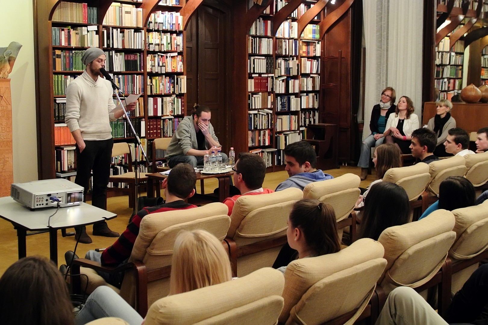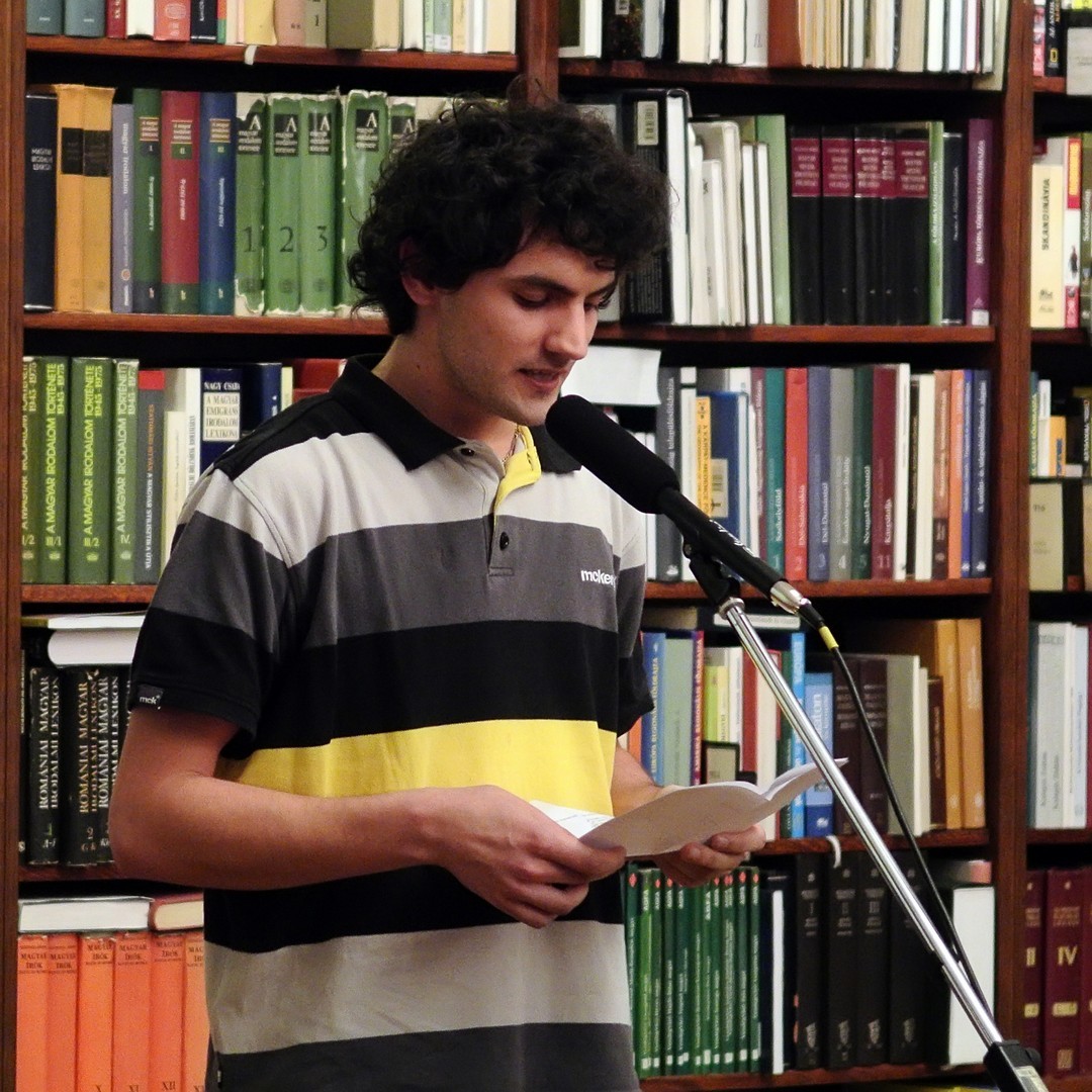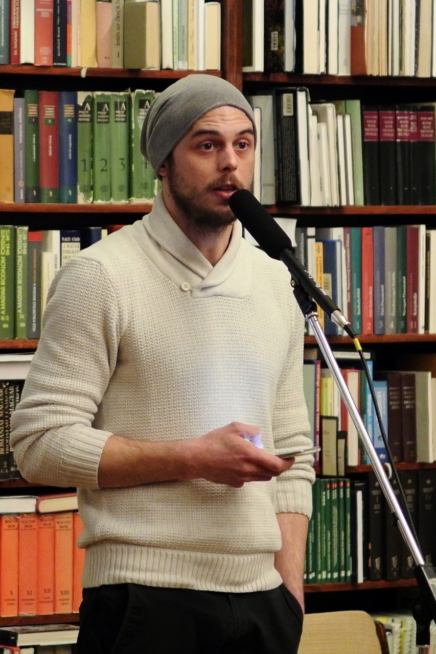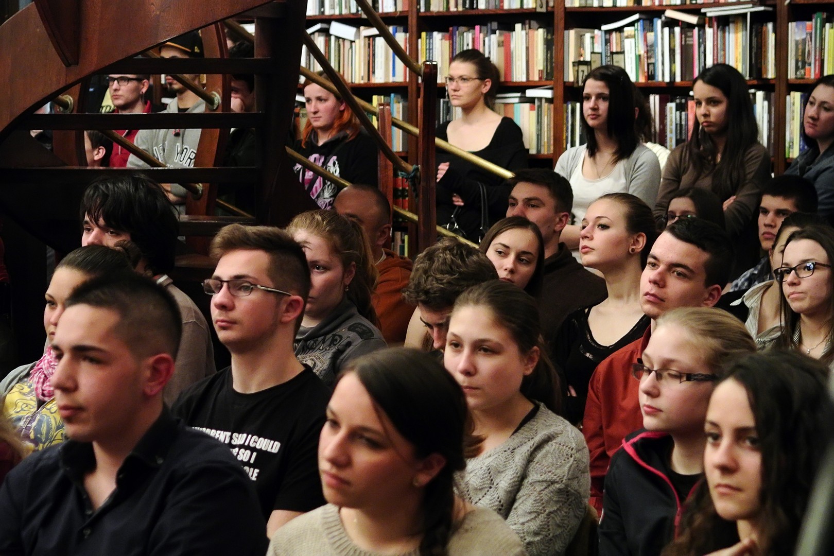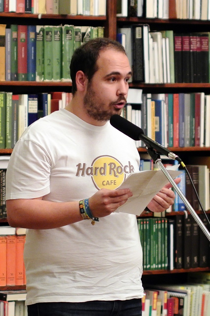 Talán fél év telt el azóta, hogy a bibliotéka Schriffert-Tóth Eszter könyvtáros ötlete nyomán – kedvcsinálóként – megszervezte az első gyulai slam(szerű)partit. Akkor Csider István Zoltán, Závada Péter, Hartay Csaba és Kiss László olvasta fel szövegeit, ezúttal pedig Pion István költő, újságíró és Simon Márton volt az este díszvendége. A Gyulai Kék Lámpa Egyesület és a könyvtár Ifjúsági Kultúra Kávéház elnevezésű programsorozatához kapcsolódó rendezvény egy rendhagyó kiállításmegnyitóval vette kezdetét. A Karácsonyi János Katolikus Gimnázium diákjai – Papp Zanett, Rokszin Anett és Kliszek Antal – által készített fotókat Simon Márton tavaly megjelent, Polaroidok című kötete ihlette. Számozott pillanatképek az életről – míg a fehér vásznon a fotók váltogatták egymást, a költő egy nyitóbeszédnek szánt szöveget olvasott fel. Nincs rossz megoldás – mondta elöljáróban, majd a textusban is ugyanoda, vagyis a viszonylagoshoz lyukadtunk ki: „ami nekem egy kavics, az másnak a kamaszkora vége”.