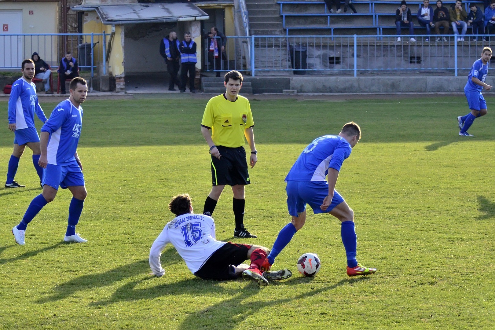 Fölényben játszottak termálosaink, és ez a fölény a 19. percben érett góllá Sipos – volt Előre-játékos – révén: 1-0. Később is mezőnyfölényben játszott a Popovics legénység, egészen a szünetig.