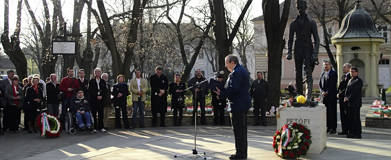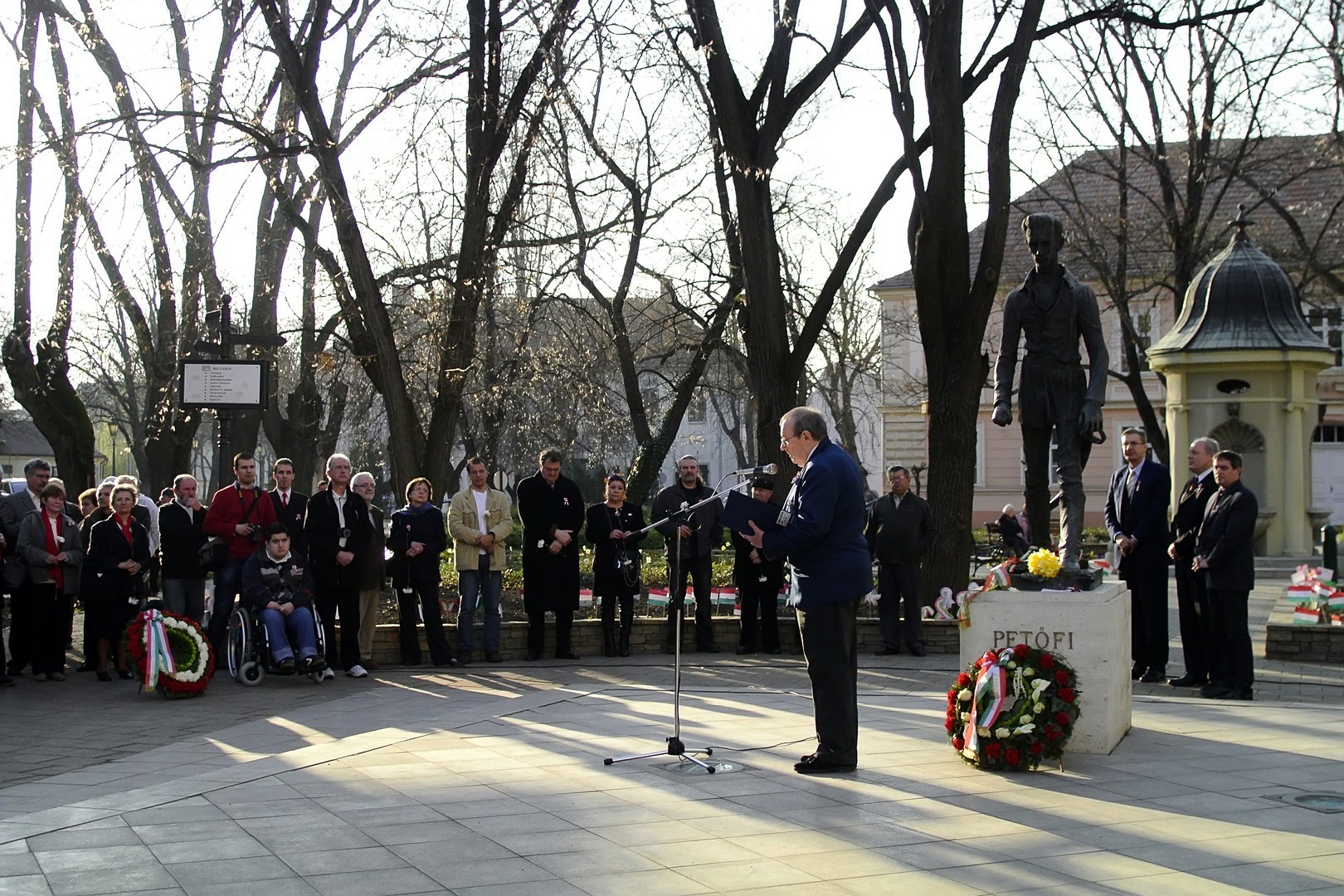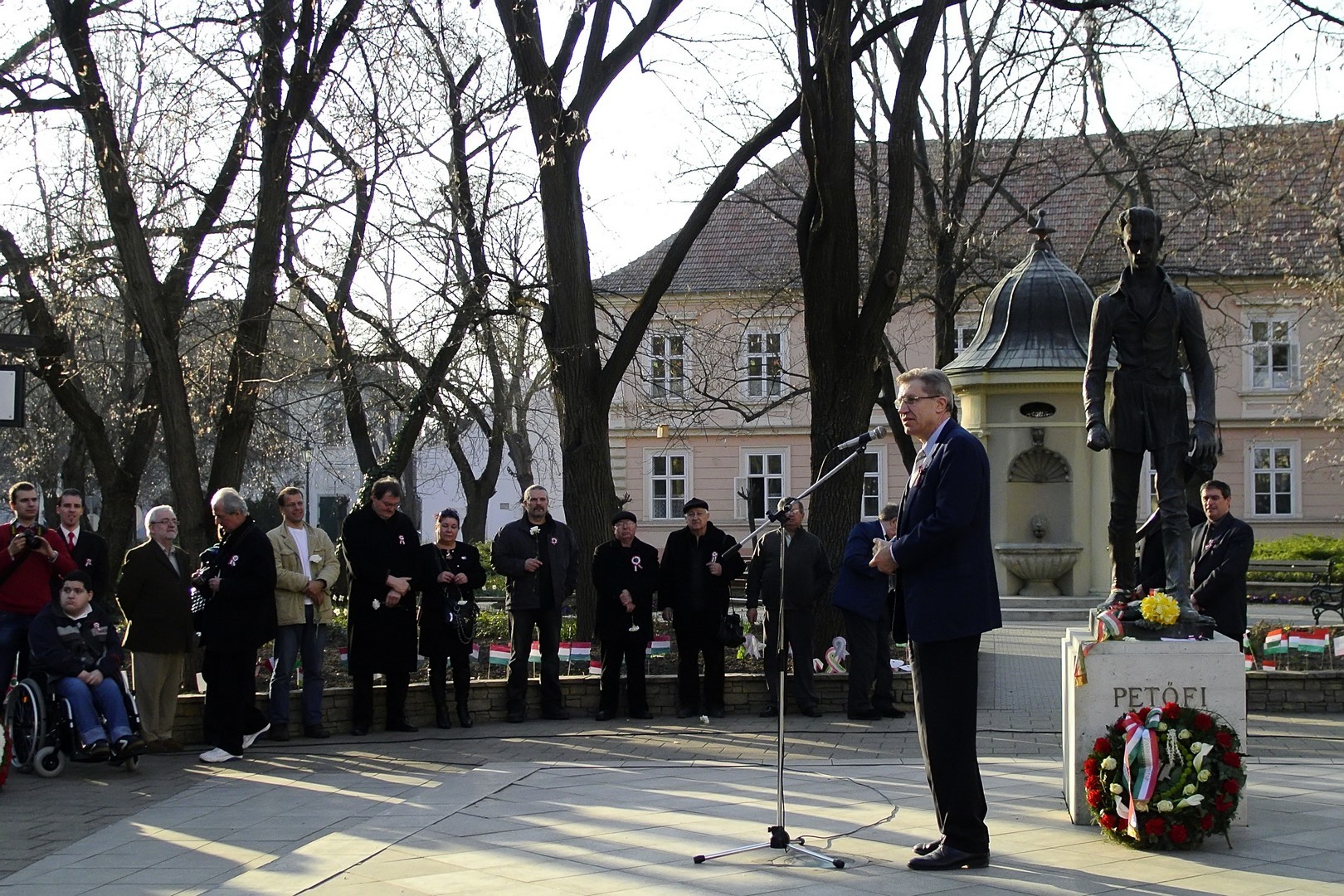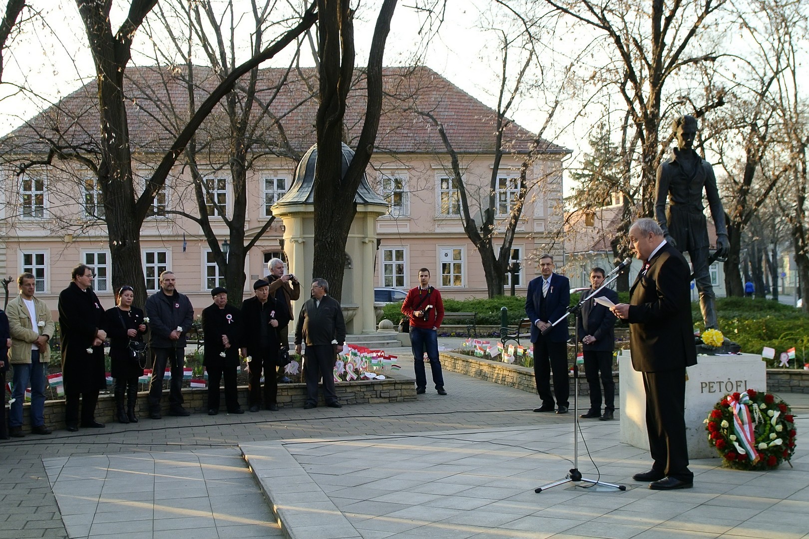 – Szinte bizonyos vagyok abban, hogy a holnapi hivatalos gyulai ünnepségen csak a vak megszokás és a süket hivatal fogja a koszorúit hozni. A hatalom mai urai akár Gyulán, akár másutt két szót sem értenek Petőfiből – vélelmezte a politikus.