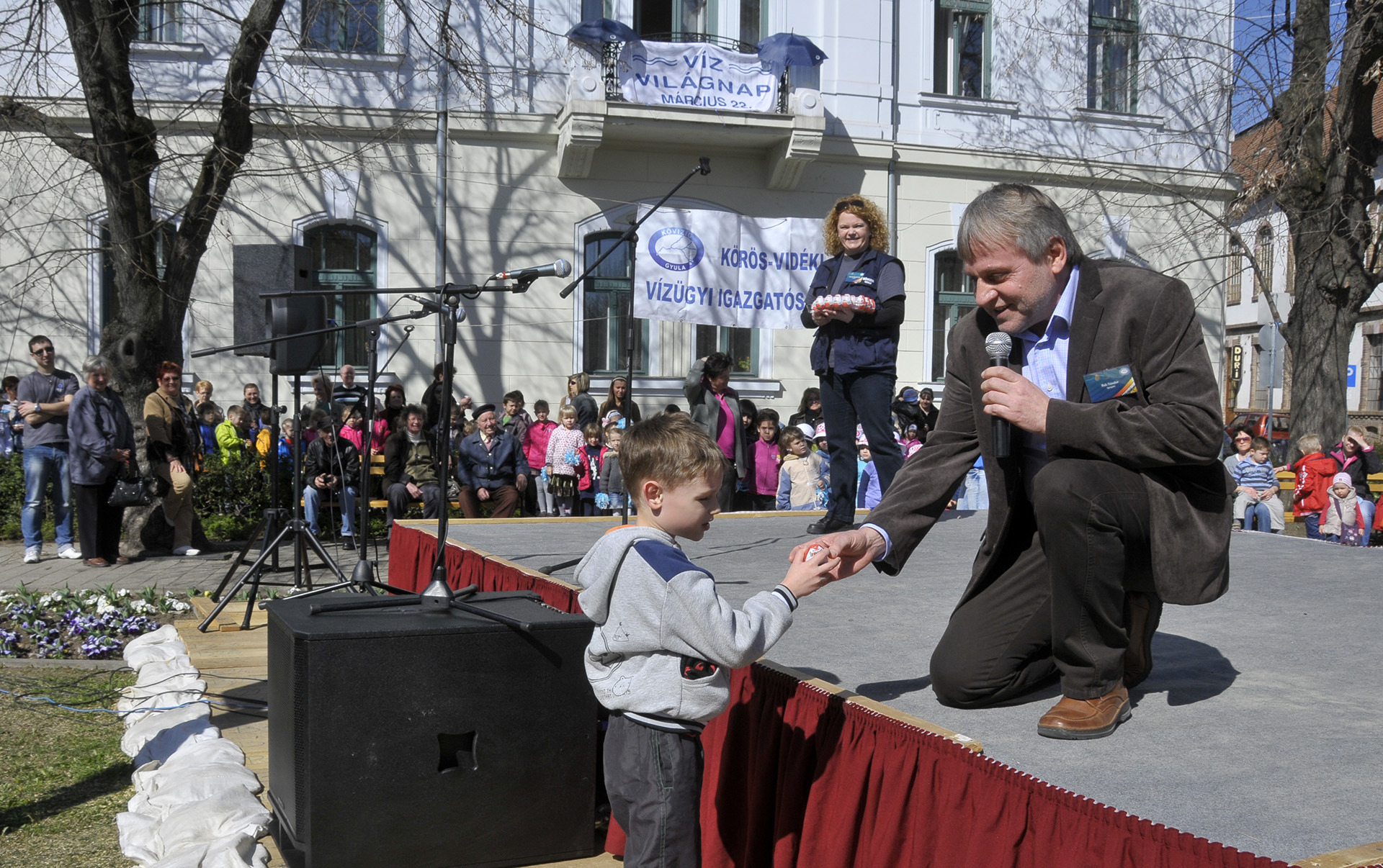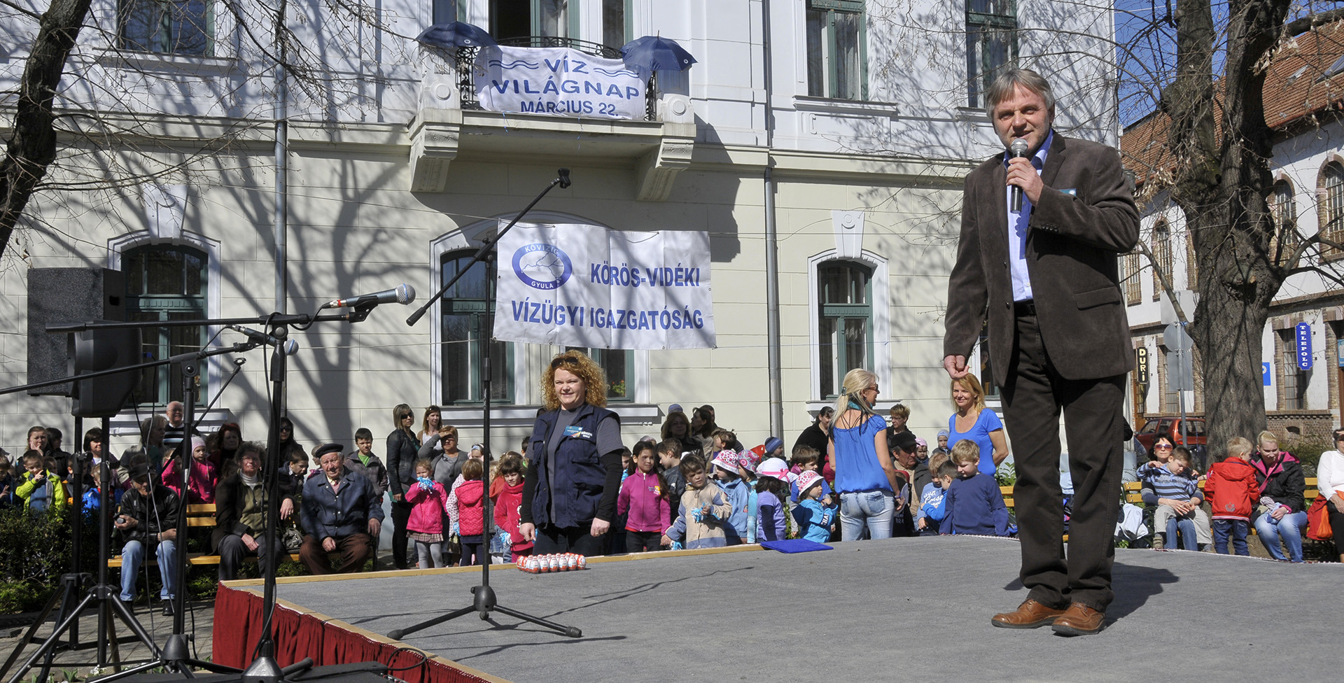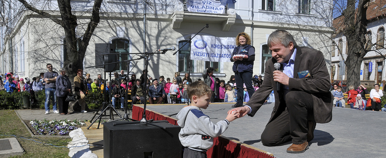 Bak Sándor, a Körös-vidéki Vízügyi Igazgatóság vezetője köszöntötte a több száz megjelent gyerkőcöt és a felnőtt érdeklődőket. Beszédében a víz napját az emberek névnapjához hasonlította, amely egy olyan nap az évben, amikor egy-egy szerettünket felköszöntjük, jelezve ezzel, hogy milyen fontos számunkra. Így kell tennünk a vízzel is, amely nélkül nem lenne élet a Földön. Az óvodások számára hamar kiderült az is, hogy mennyi mindenhez – iváshoz, locsoláshoz, főzéshez, tisztálkodáshoz, mosáshoz, stb. – elengedhetetlen a víz.