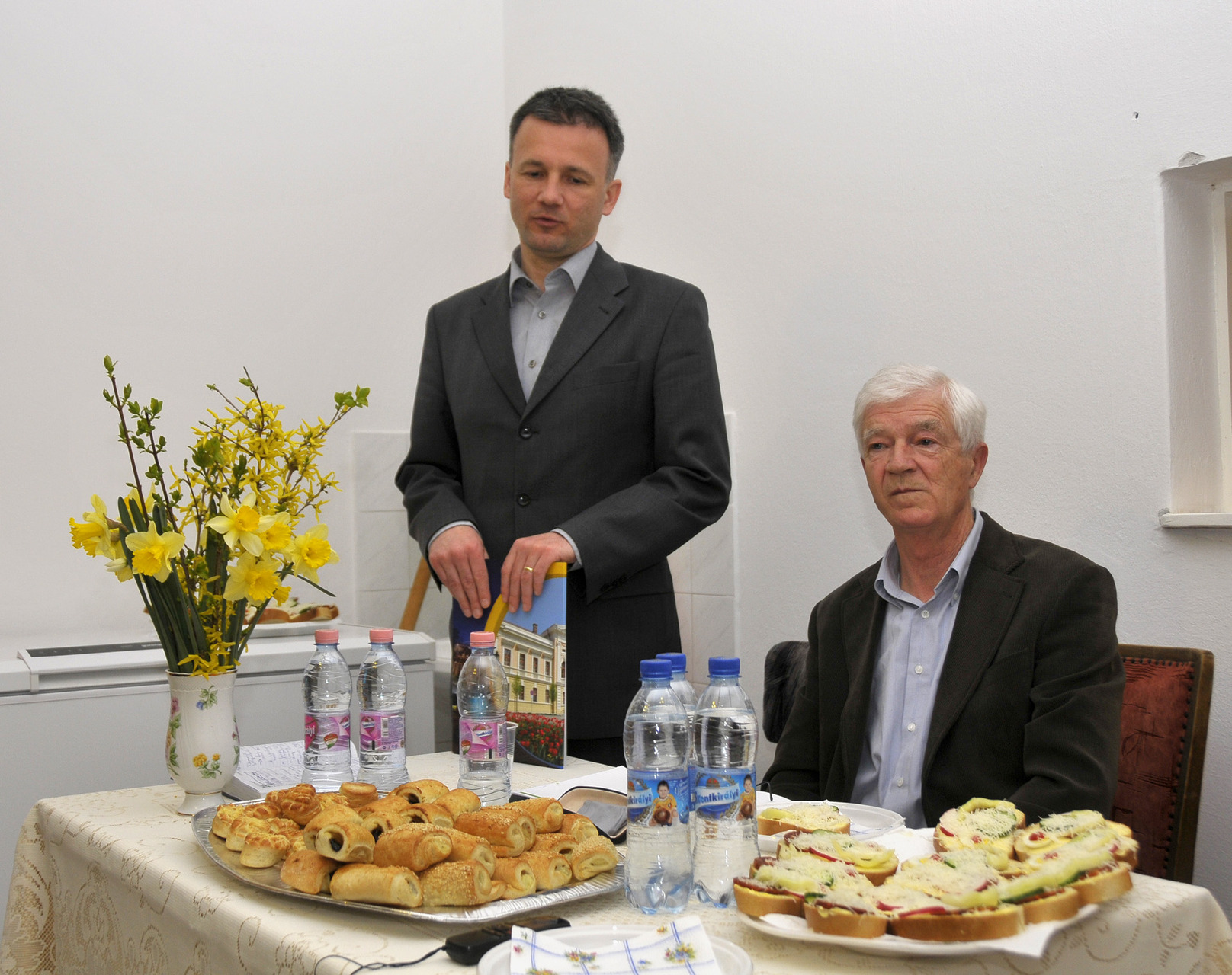 Dr. Görgényi Ernő dr. Ökrös István tisztességes és becsületes képviselői múltját példaértékűnek nevezte, hiszen húsz éve – függetlenül a politikától – minden választás alkalmával megkapta a bizalmat a körzet lakóitól. A városvezető beszámolójában elmondta, 2010-ben még 580 millió forint volt az önkormányzat működési hiánya, és a város 3 milliárd 400 millió forintos adósságot halmozott fel. A polgármester elmondta, az átszervezéseknek és takarékossági intézkedéseknek, valamint a kormány adósságátvállalásának köszönhetően sikerült idén már működési hitel nélkül gazdálkodnia a városnak. Dr. Görgényi Ernő a munkahelyteremtés, valamint a helyi vállalkozások támogatásának fontosságát hangsúlyozta, majd az elmúlt négy esztendő ehhez kapcsoló fejlesztéseit sorolta: többek között a megmentett gyulai húsipart, a Food Analytica Kft.-t, a Gyulai Fafém bővülését, az Árpád Patikát, a Gyulai Várfürdő új családi élményfürdőjét, a belváros megszépülését, vagy a nemrégen megnyílt Retro Tejivót, amelyik éppen a fórumnak helyet adó Seres-tanyáról szállítja a tejet.