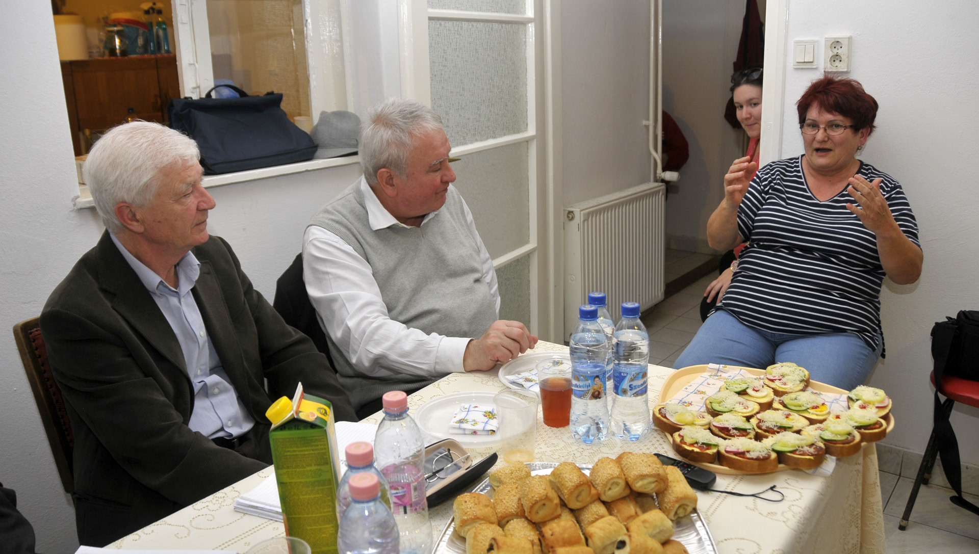 Kelemen Kristófné és Kovács Mónika is a járhatatlan bekötőutakra panaszkodott, és újra szóba jött az utak javítása érdekében a gréderezés szükségessége. Ebben a házigazda, Seres Ferenc fejtette ki véleményét, amelyben több dolgot is felvetett. Szerinte a külterületen élőknek az lenne a legjobb, ha kapnának egy grédert, ugyanis erőgépeik vannak, és maguk megcsinálhatnák az utakat. Felhívta arra is a figyelmet, hogy a gréderezést nem kifelé dúrva, hanem befelé, bakhátra képezve kell, hogy el tudjon folyni az eső-, illetve a belvíz. Seres Ferenc még hozzáfűzte, hogy az „Olajosok útját” össze kellene kötni a gáttal, amire a környéken lakók is hajlandók lennének, csak zúzalékra lenne szükségük. Dr. Görgényi Ernő elmondta, a város venni fog egy saját grédert, ezen kívül a vízelvezető árkok eldugulása is megoldódhat, mert hamarosan az összes csatorna tulajdonosa a vízügyi igazgatóság lesz, amely munkatársai meg fogják tenni a szükséges lépéseket. Földi István mindezzel kapcsolatban azt panaszolta, hogy sok problémát az okoz, hogy a dűlőket több helyen beszántották a gazdák.