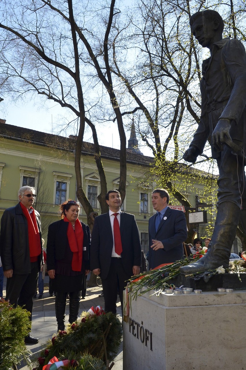 A szónoklatokat követően a politikusok és a gyűlés résztvevői a Petőfi szoborhoz vonultak, ahol a miniszterelnök-jelölt virág elhelyezésével tisztelgett a költőgéniusz emléke előtt.