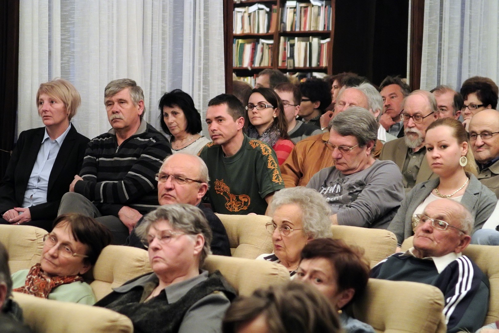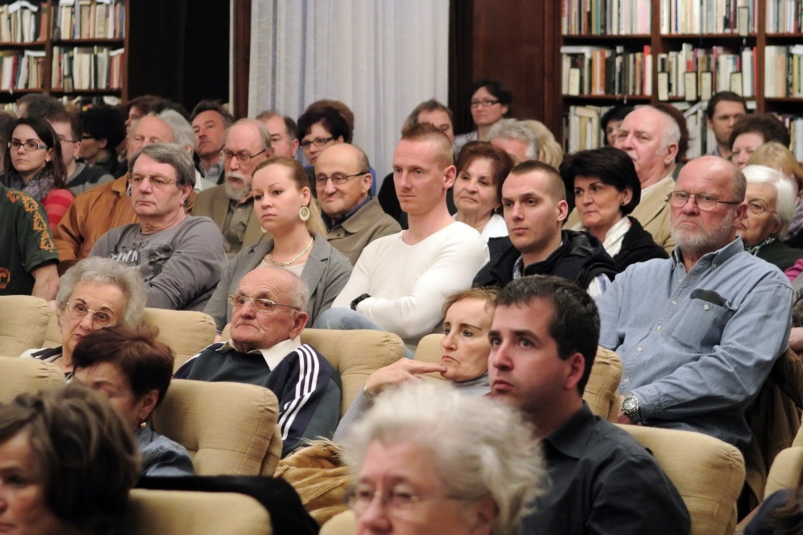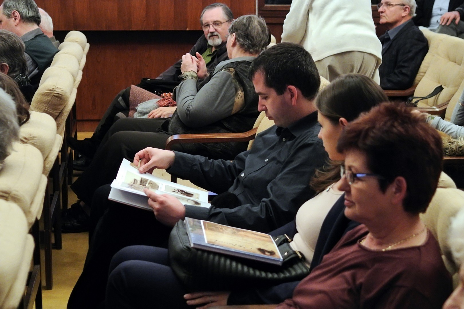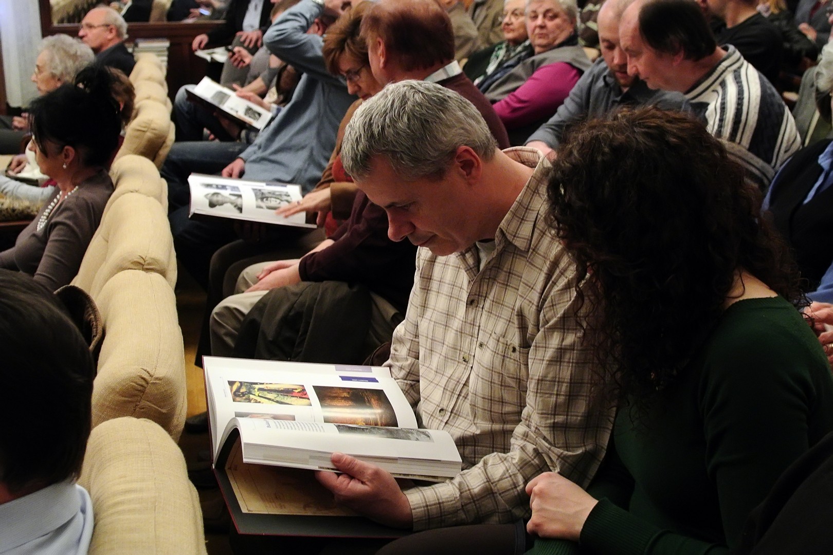 Villogtak a vakuk, színültig telt a könyvtár Simonyi-olvasóterme, ritkán látni ennyi fotóst egy helyen, na és ennyi érdeklődőt is, akik egy városi témájú kiadvány kapcsán gyűltek össze, hogy Dézsi János könyvtárigazgató kérdései során a műhelytitkokba nyerjenek bepillantást a készítők: Durkó Károly, Durkóné Illés Bernadett, Balla Tibor és dr. Szabó Ferenc által.