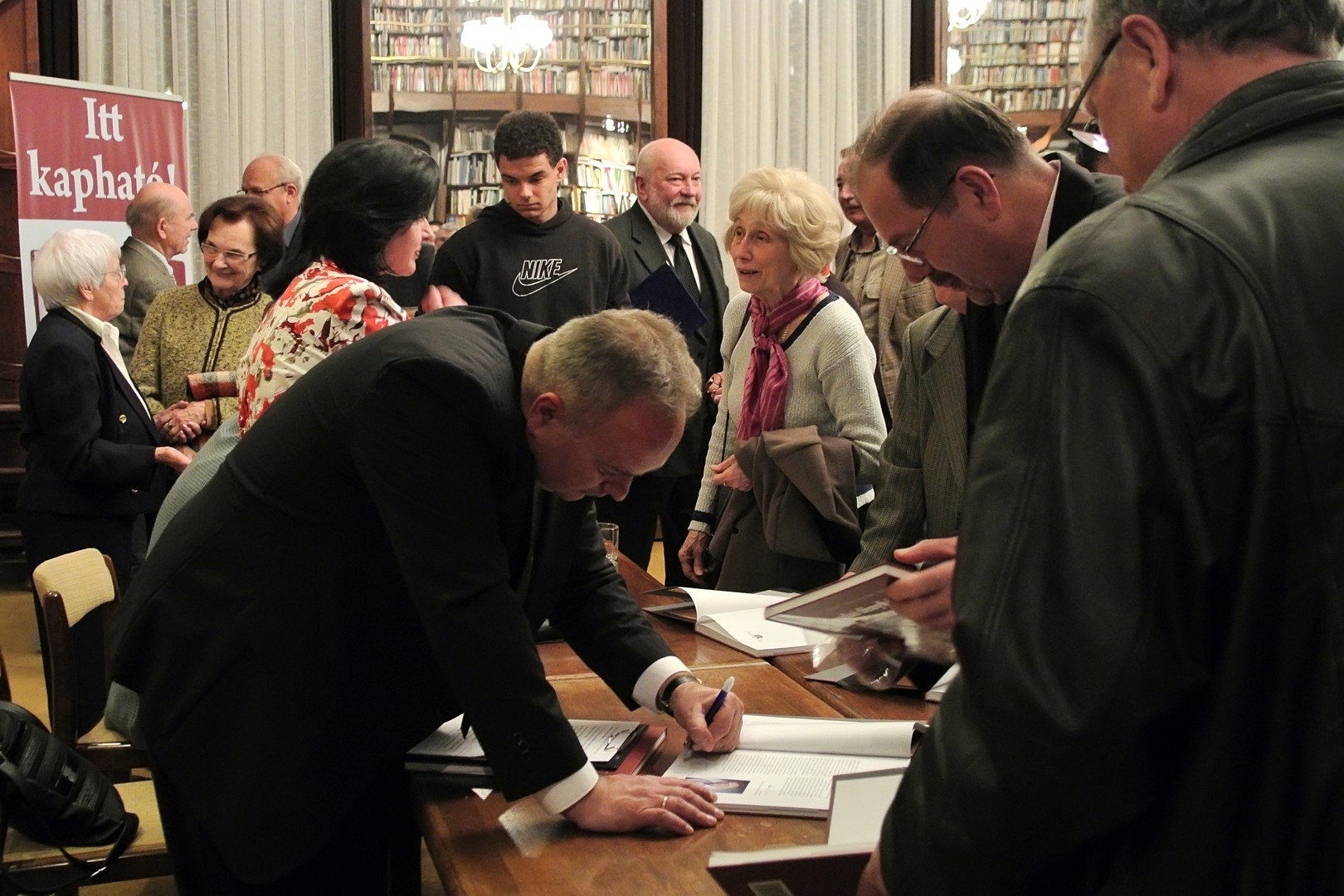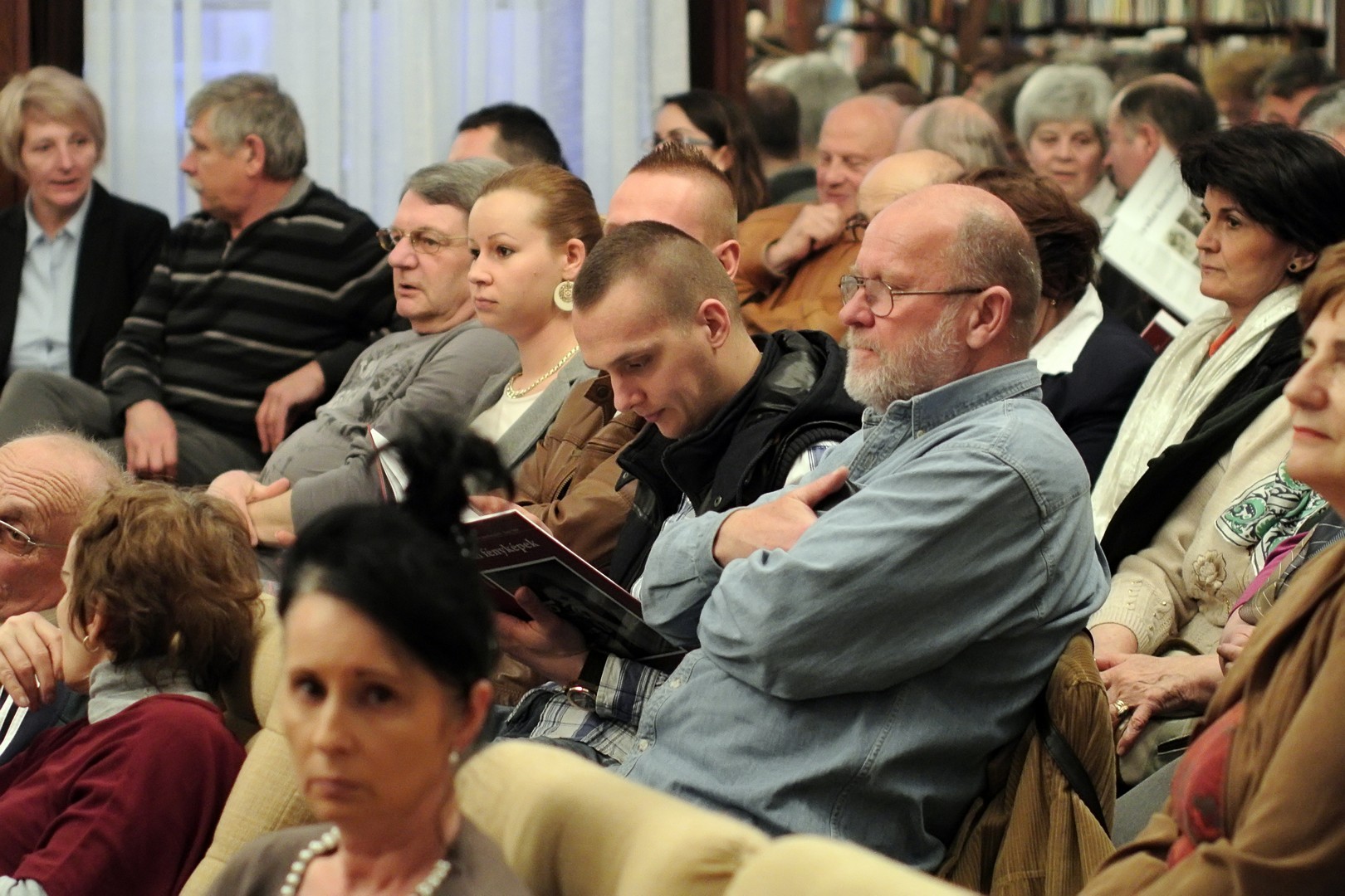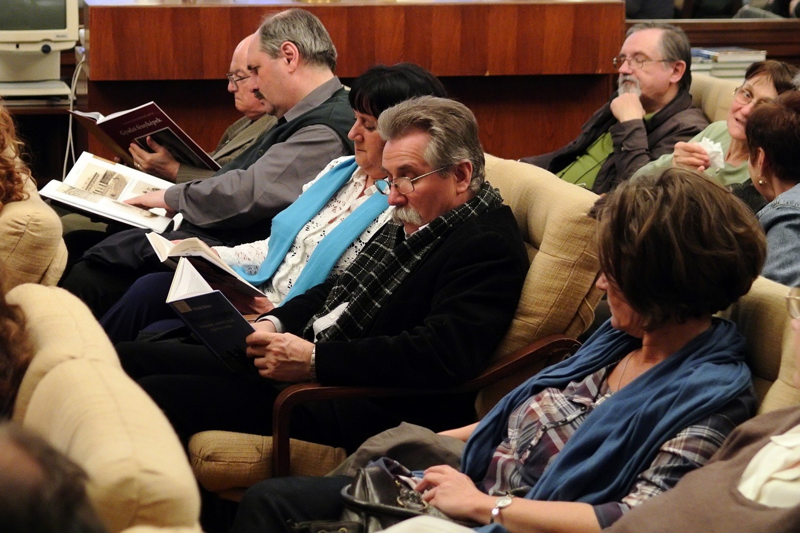 Villogtak a vakuk, színültig telt a könyvtár Simonyi-olvasóterme, ritkán látni ennyi fotóst egy helyen, na és ennyi érdeklődőt is, akik egy városi témájú kiadvány kapcsán gyűltek össze, hogy Dézsi János könyvtárigazgató kérdései során a műhelytitkokba nyerjenek bepillantást a készítők: Durkó Károly, Durkóné Illés Bernadett, Balla Tibor és dr. Szabó Ferenc által.