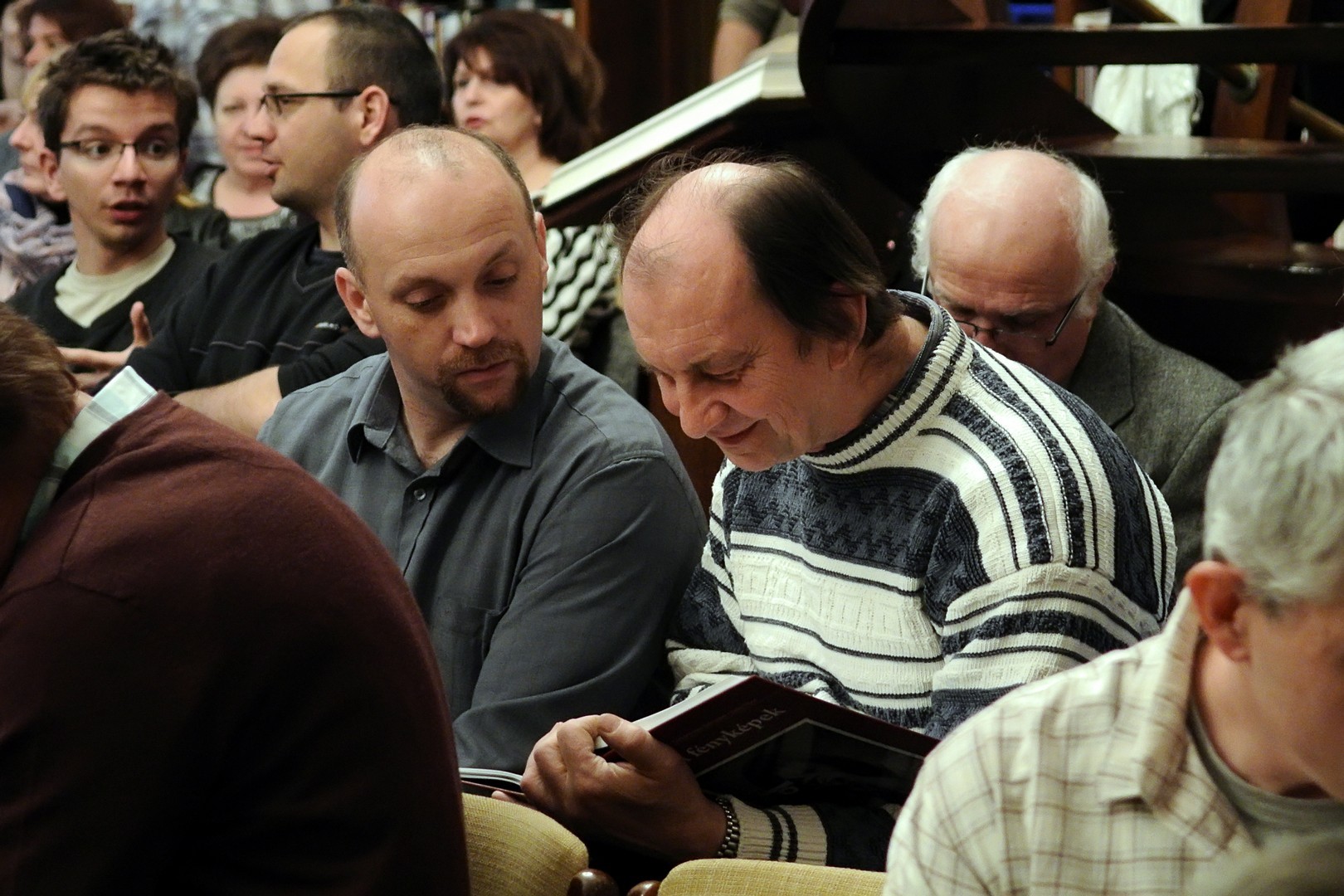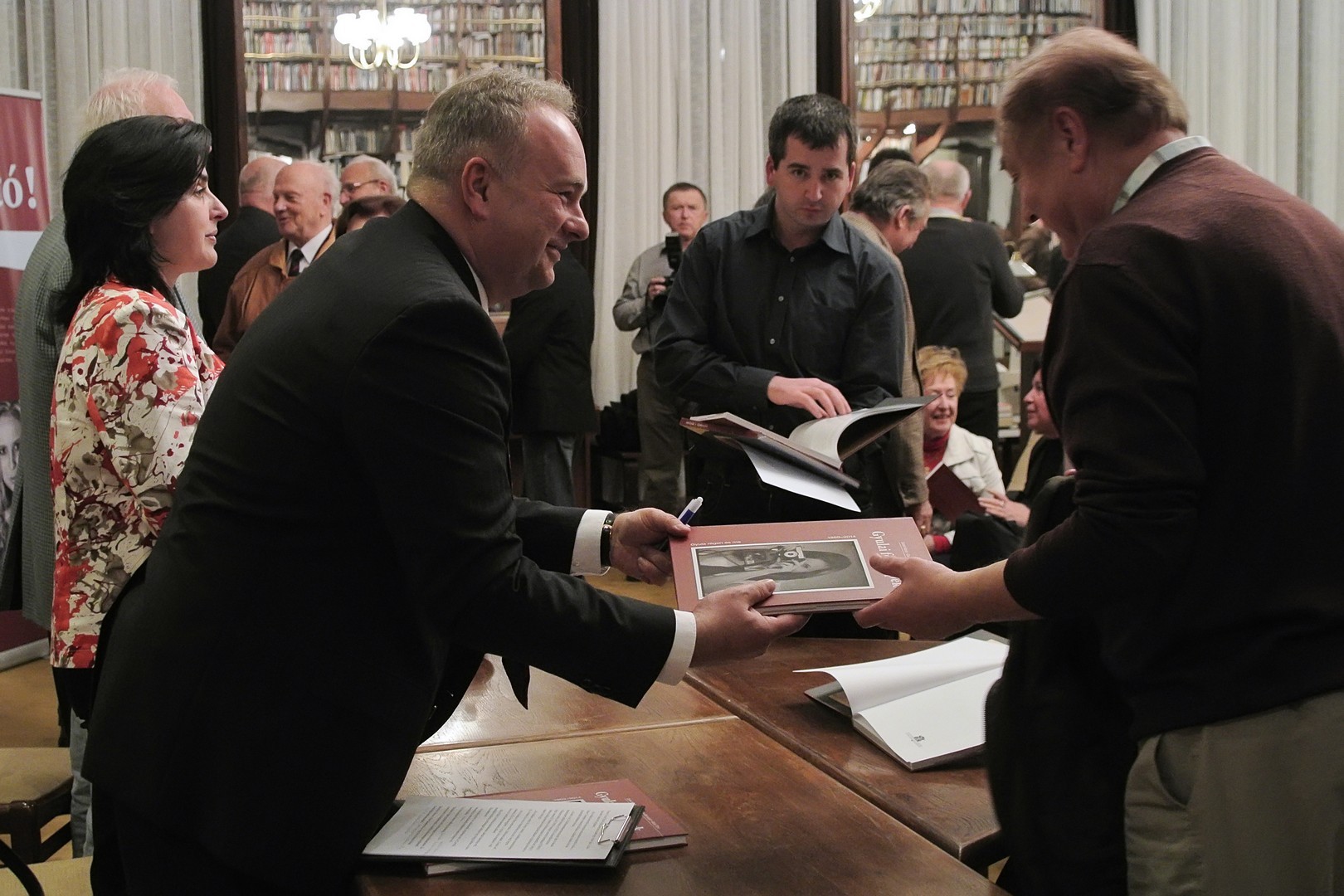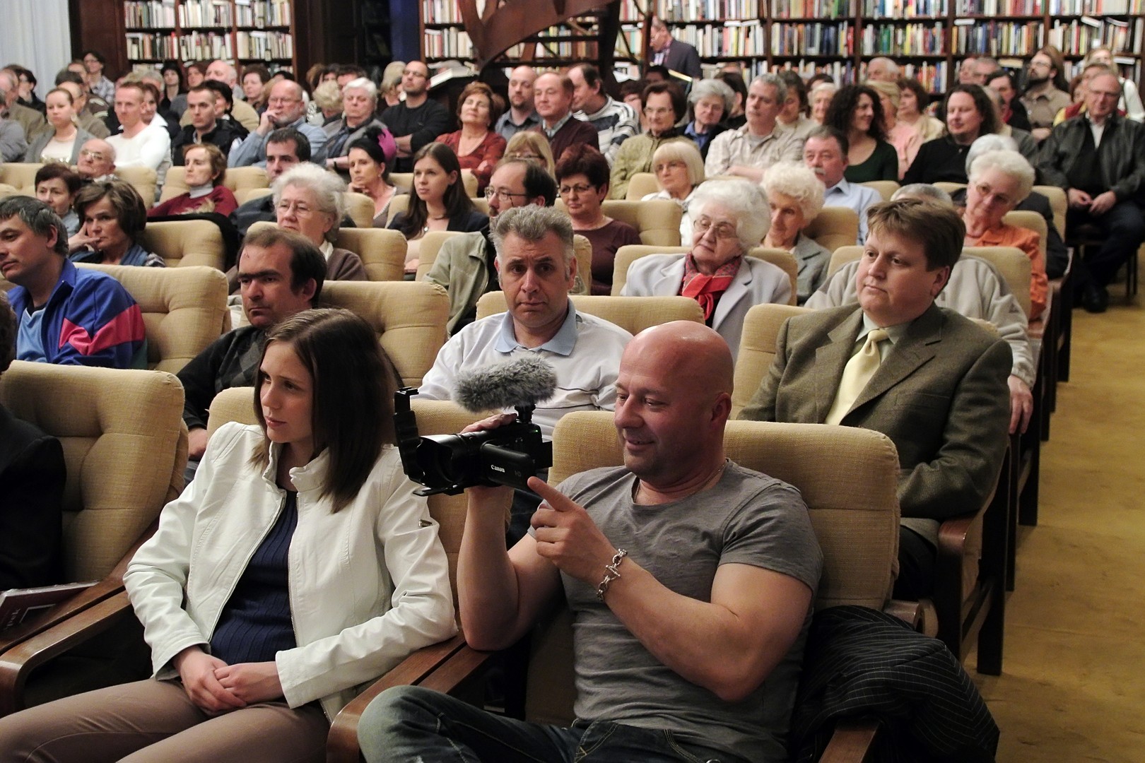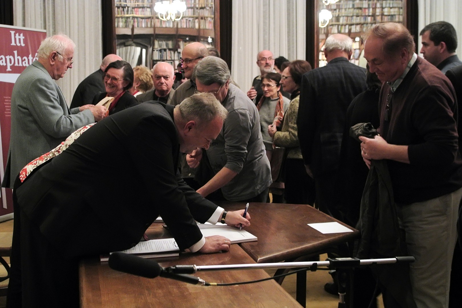 Villogtak a vakuk, színültig telt a könyvtár Simonyi-olvasóterme, ritkán látni ennyi fotóst egy helyen, na és ennyi érdeklődőt is, akik egy városi témájú kiadvány kapcsán gyűltek össze, hogy Dézsi János könyvtárigazgató kérdései során a műhelytitkokba nyerjenek bepillantást a készítők: Durkó Károly, Durkóné Illés Bernadett, Balla Tibor és dr. Szabó Ferenc által.