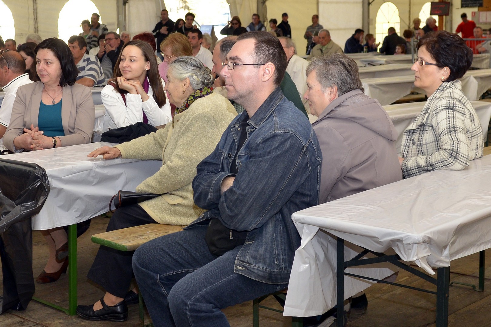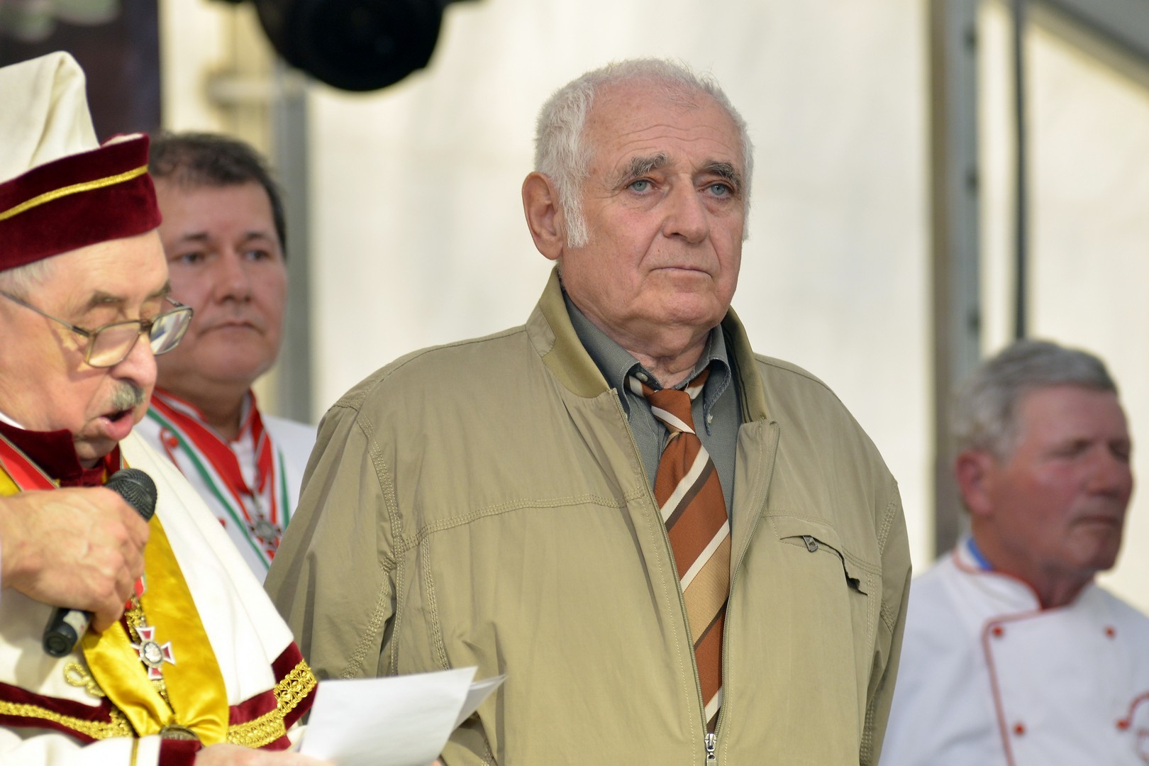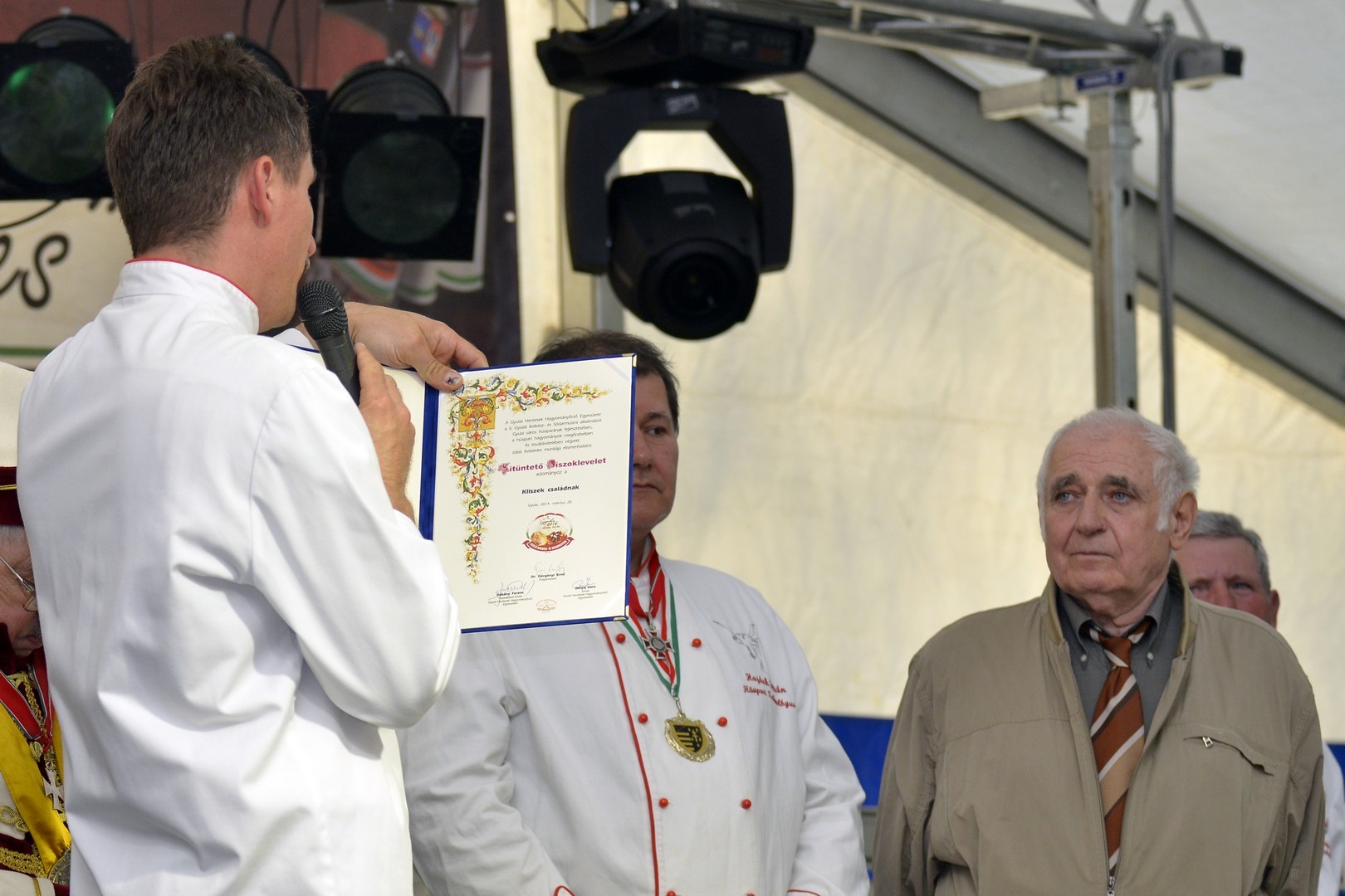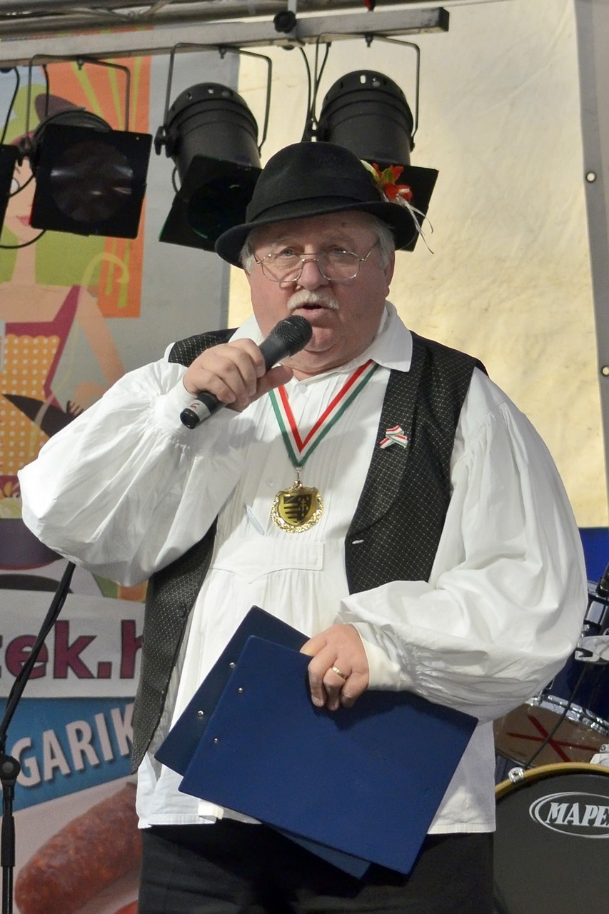 - Ezt tessék figyelembe venni és azt, hogy a jóisten is szerette a kolbászt. Azért adta magyarságunknak a piros-fehér-zöld zászlót, hogy tudjuk, hogy a kolbászt hogyan kell fűszerezni. Piros a paprika, fehér a só, zöld a gyim-gyom, a fokhagyma, meg a bors. Hányadik a paprika? A harmadik. Egy kiló húshoz három deka paprika, két deka só, egy deka a kömény, a fokhagyma meg a bors – árulta el Laci bácsi a titkot, majd Mikszáth Kálmán szavaival zárta szónoklatát: ha már minden érzés elszáll a rög iránt, varázsnak még mindig ott marad a magyar konyha. Dőljék, omoljék minden a nagy divatok mágiáján, az ősi ételetek ízét, hiteteket, magyarságotokat ne hagyjátok veszni. Isten áldd meg a magyart!