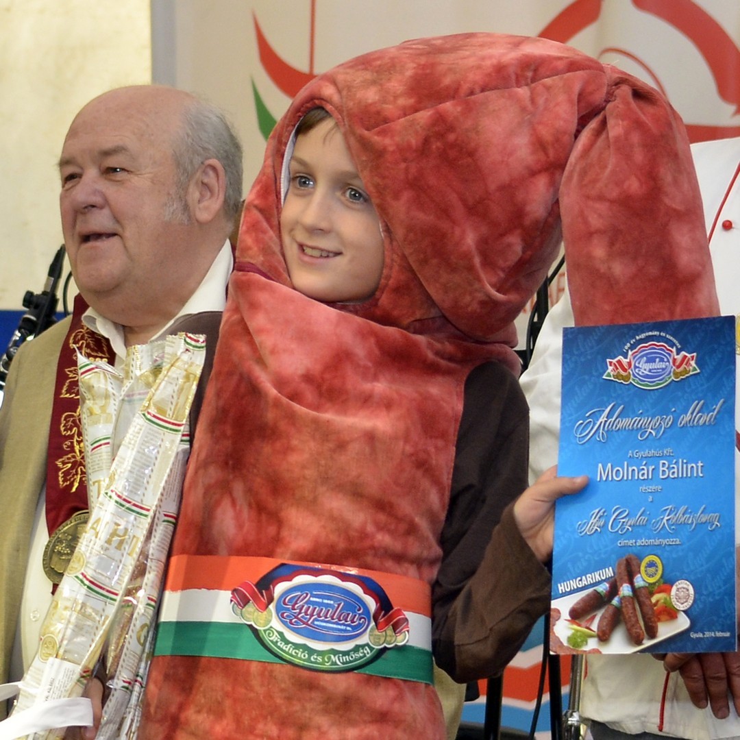 - Ezt az örökséget nekünk tovább kell vinnünk. Törekvésünket jól példázza, hogy az elmúlt évben a hungarikum bizottság a hungarikumok sorába emelte a gyulai kolbászt. Mi, gyulaiak ezért dolgozunk és elhivatottak vagyunk, hogy utódainknak is átadjuk a szakmai kultúrát – hangsúlyozta Daka Zsolt, aki a rendezvényen ifjú kolbászlovaggá avatta azt a kilencéves budapesti kisfiút, Bálintot, aki február második felében gyulai kolbásznak öltözött a farsangon és ezzel megnyerte a farsangi fesztivált. A cég vezetője Bálintnak útravalóul kolbászcsomagot ajándékozott.