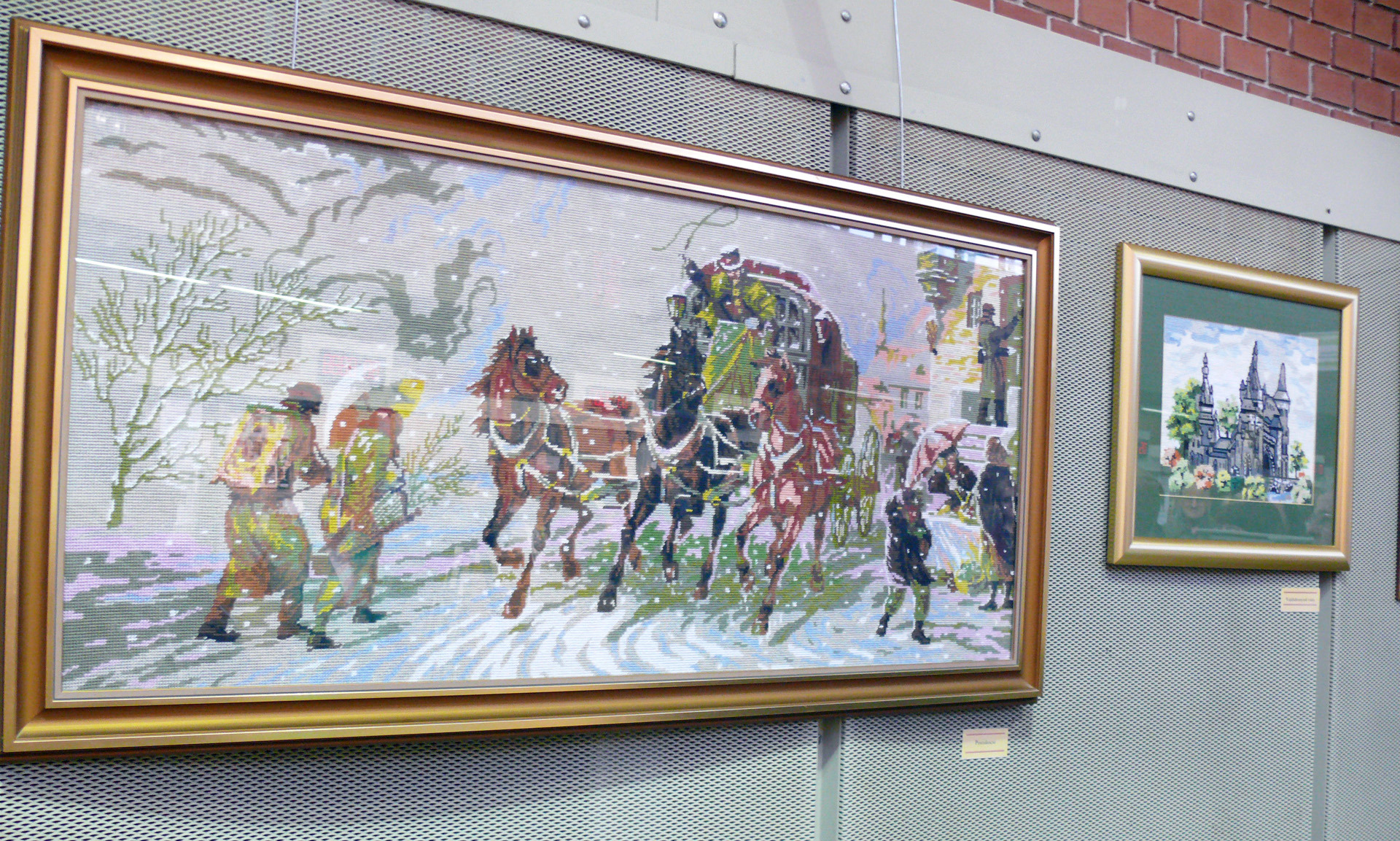 Az egyik legimpozánsabb alkotás, a Kalapos hölgy 150 színből, két télen át készült. Edit és Gabriella édesanyjuktól örökölte a kézimunka szeretetét. S bár tevékenységük egyáltalán nem tartozik a legolcsóbb hobbik közé, a hideg évszak korán sötétedő napjain tovább folytatják tevékenységüket a saját és a művészi kézimunkát értékelők legnagyobb örömére.