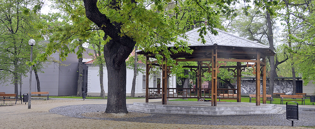 – Az új Zenepavilon terveit Gyimesi Márton készítette az egykori építményről készült régi képeslapok és egyéb fellelhető anyagok alapján. A nyolcszögletű, 8 méteres laptávú és 3,6 méter magas, műpalatető héjazatú fenyő épület ugyanazon a helyen épült, ahol annak idején állt. Nyilvánvalóan az alapanyagok aktualizálva lettek a korszerű rögzítő és szerkezeti anyagok szintjére, ilyen például a rozsdamentes tartószerkezet is, de minden más tekintetben az új épület megegyezik a régivel. Stílusban igazodik a burkolat is, bazalt kis kockakőből készült, amely az akkori építéseknek egy közkedvelt anyaga volt, és az akkori mintára egy vörösréz csúcsdíszt is kapott a pavilon. Környékén pázsit, rózsaágyás és padok találhatók – mondta el a Gyulai Hírlapnak Megyeri Sándor, Gyula Város Önkormányzata Mérnöki Osztályának vezetője.