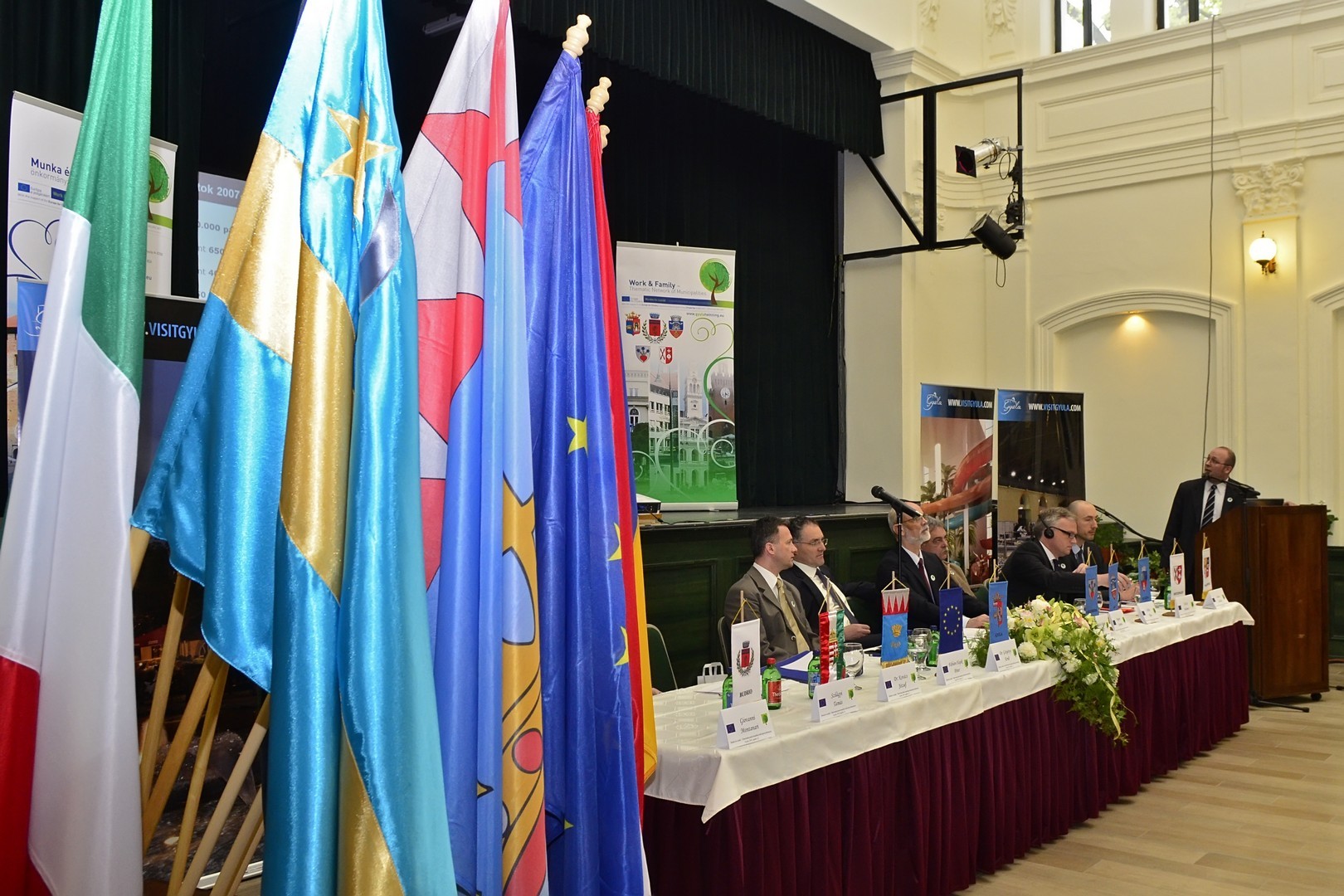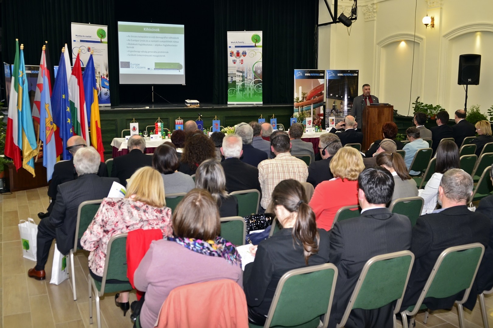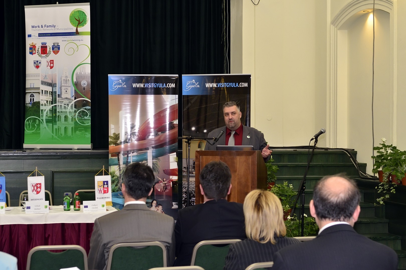Munka és család – önkormányzatok tematikus hálózata címmel rendezett konferenciát Gyula Város Önkormányzata. A rendezvényen Gyula testvérvárosainak képviselői – Ráduly Róbert Kálmán Csíkszereda polgármestere, Bognár Levente Arad város alpolgármestere, Csikós Tibor Kovászna város alpolgármestere, Ulrich Bahmer ditzingeni polgármester, Lukasz Ciesak, a wagrowieci delegáció vezetője és Giovanni Montanari budrioi testvérvárosi tanácsnok - is tiszteletüket tették.