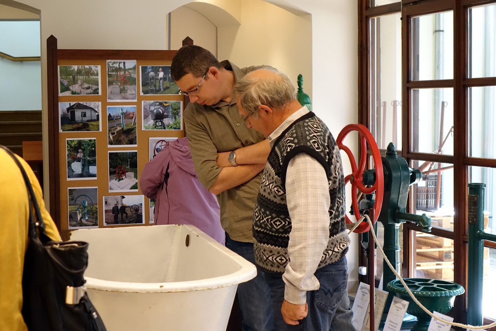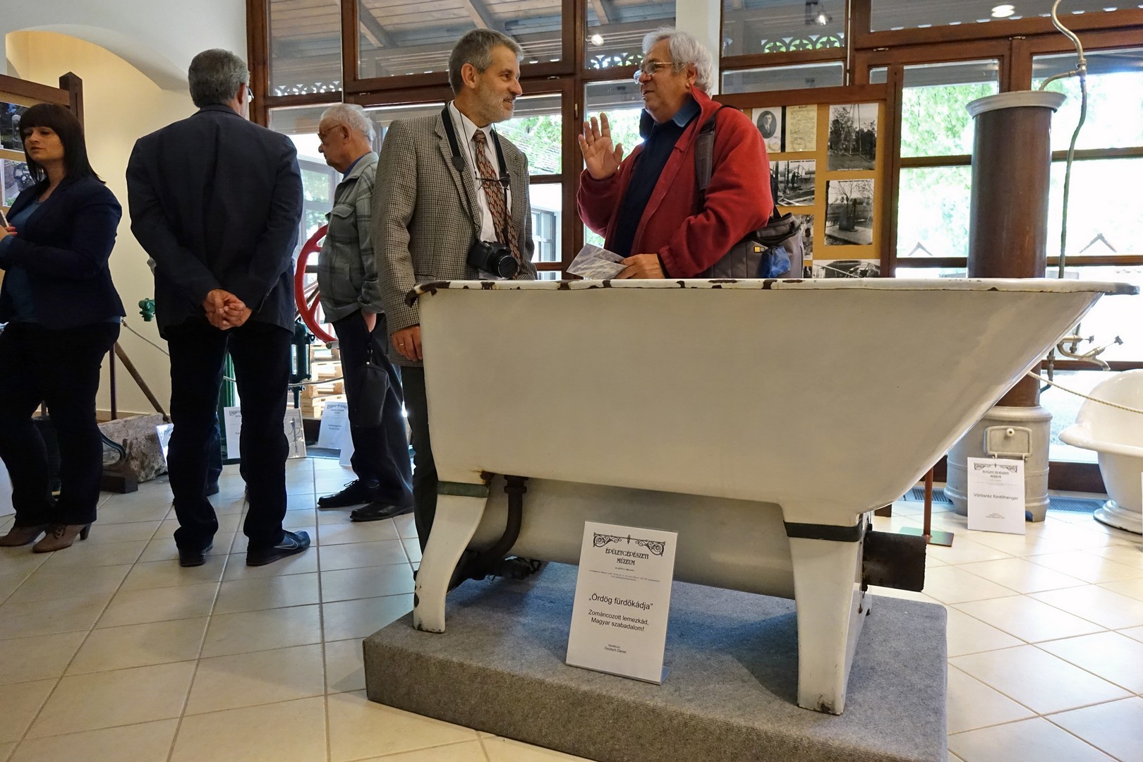 Mintegy 10 évvel ezelőtt kezdődött az a gyűjtőmunka, amelynek eredménye a Tájvízházban megtekinthető: zománcozott lemezkád, gáz működtetésű tűzjelző kolomp, Lampart ülőkád, vörösréz fürdőhenger, éjjeli edények, horganylemez kád, csaptelepes ülőkád és a már említett az „ördög fürdőkádja”. A tárlat egyik legértékesebb darabjának tudható tárgyat az 1930-as években Deutsch József készítette, s bár a gazdasági világválság miatt sorozatgyártásra nem kapott engedélyt, a szabadalmat elérte. A kád jellegzetessége, hogy alulról fával és szénnel fűthető, tehát inkább hűteni kellett a fürdővizet, mint pótolni meleggel – mutatta be a tárgyat Deutsch Dávid, a mester dédunokája.
